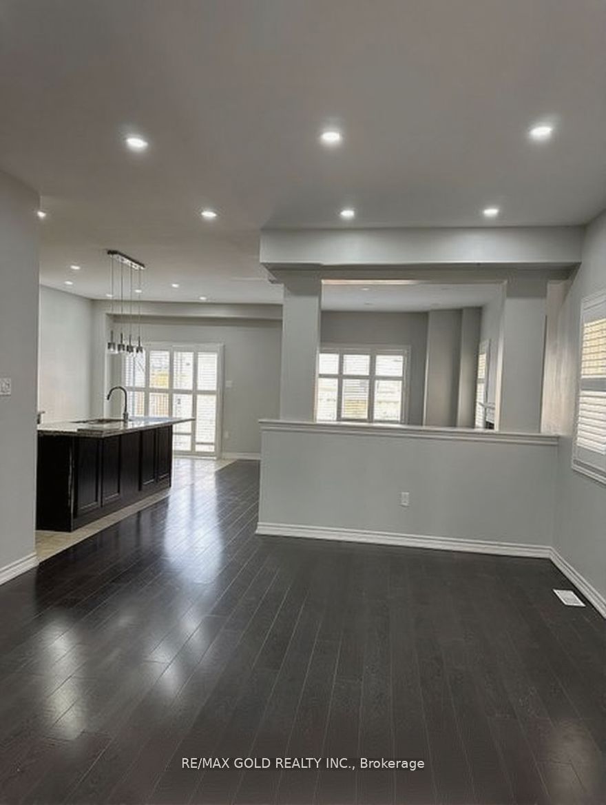 Gorgeous, fully detached house. In one of the prime locations & family orientated neighborhood. Main floor offers foyer, living, dining, breakfast, separate family room and modern kitchen with back-splash & central island. Lot of windows with california shutters, plenty of light, pot lights. Nine feet ceiling, hardwood flooring & staircase. 2nd floor offers 4 spacious bedrooms and 3 full washrooms. Master bedroom with 5 pc ensuite and nine feet ceiling. Bedroom's with windows n full of sun light ,lots of storage, two parking's. Very close to go station. Close to all amenities, mnts to bus stops, schools. This is your ideal family home! Do not miss this one. Basement is not included. Plus utilities 100%