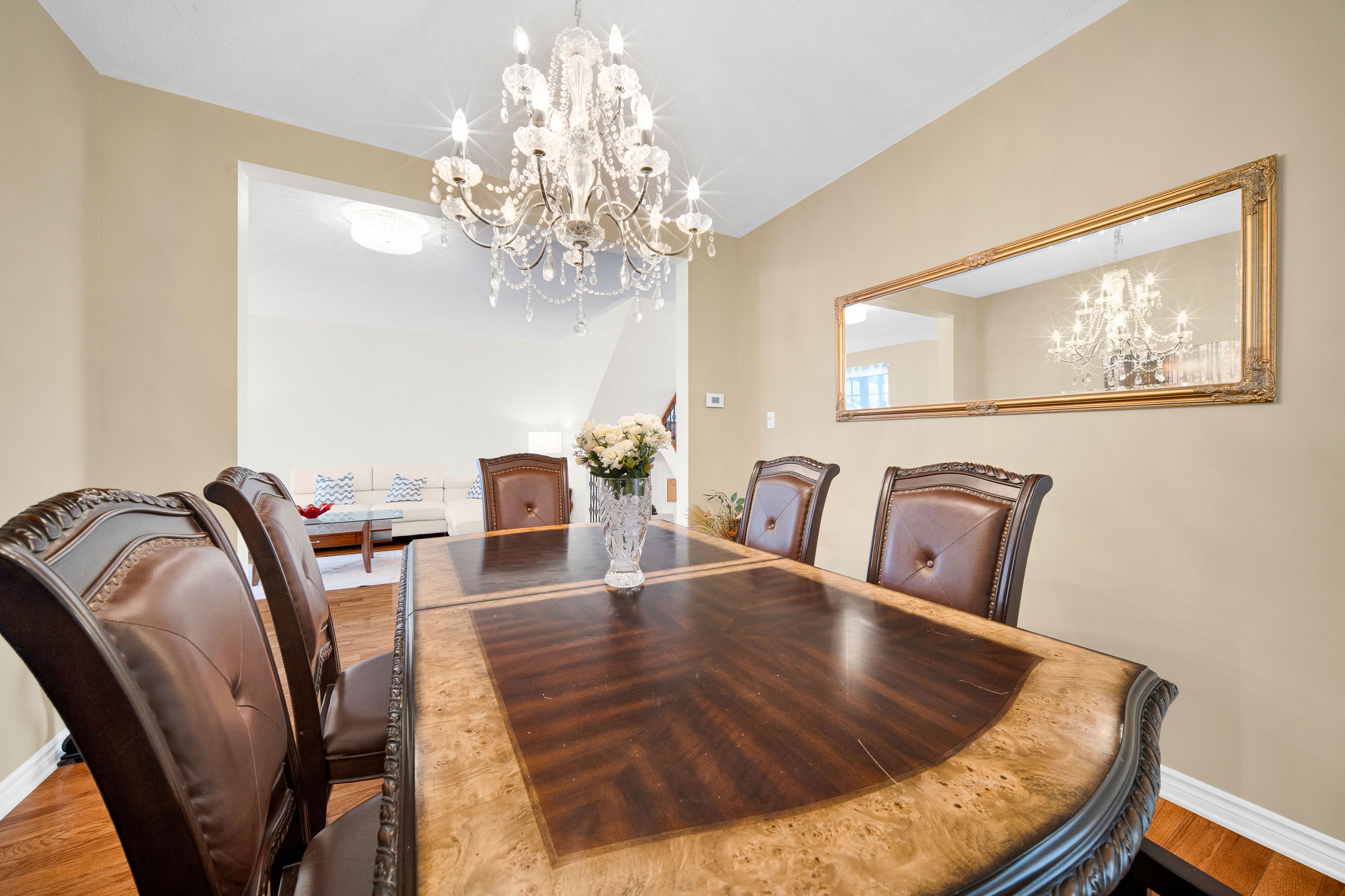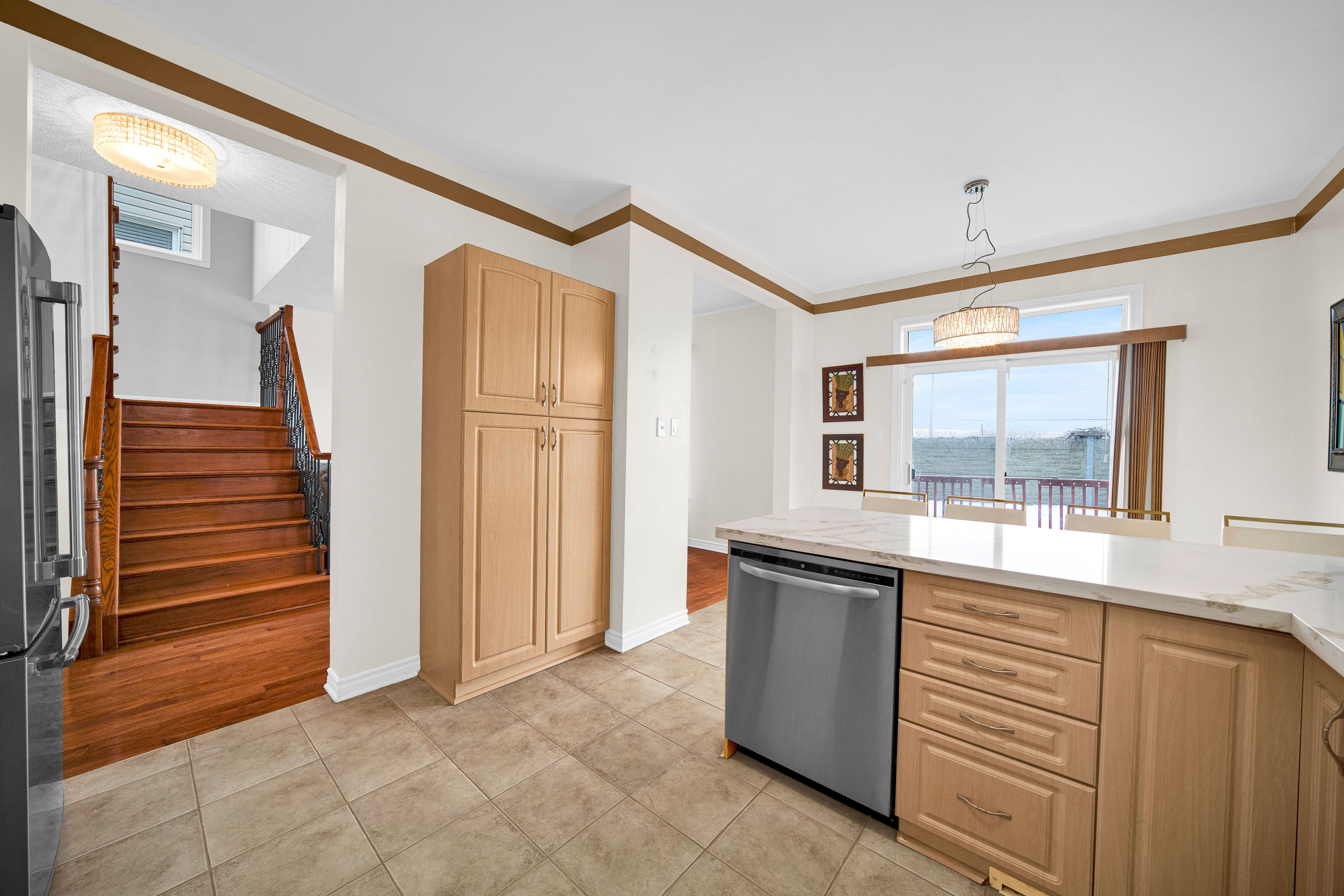 • Modern kitchen with quartz countertops and updated appliances, ideal for gatherings.