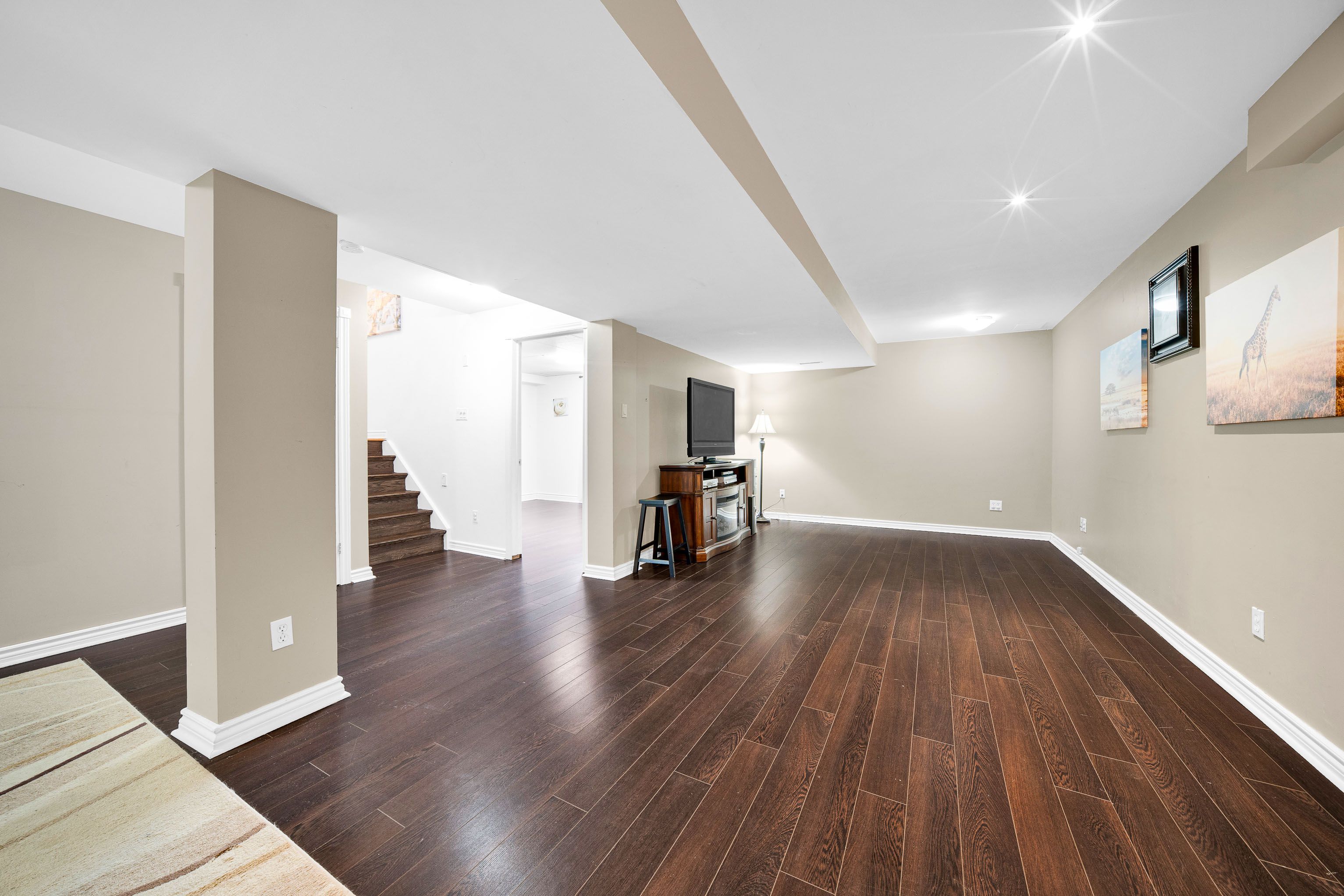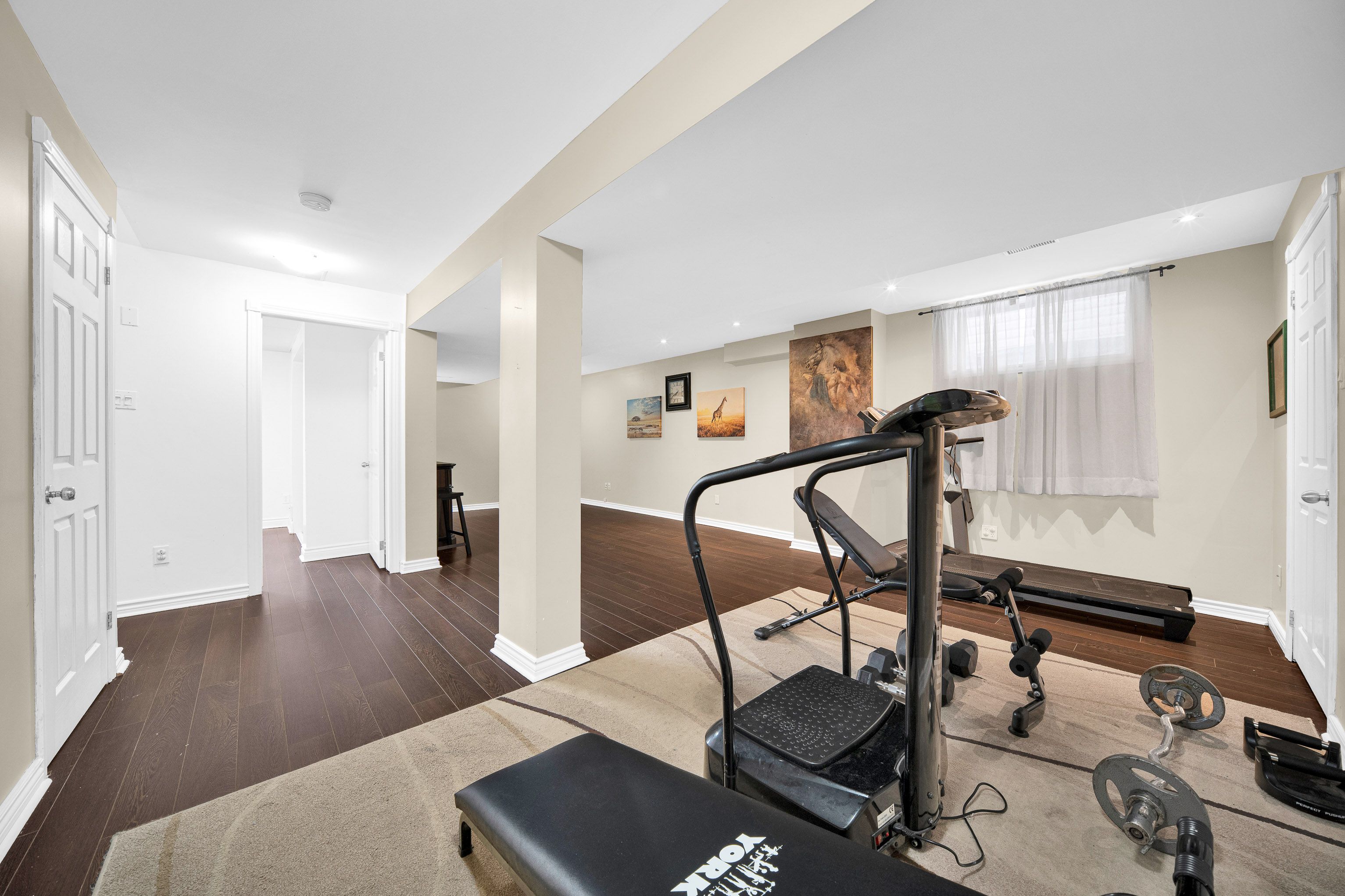 • Fully finished basement with a recreation room, extra bedroom, and storage.