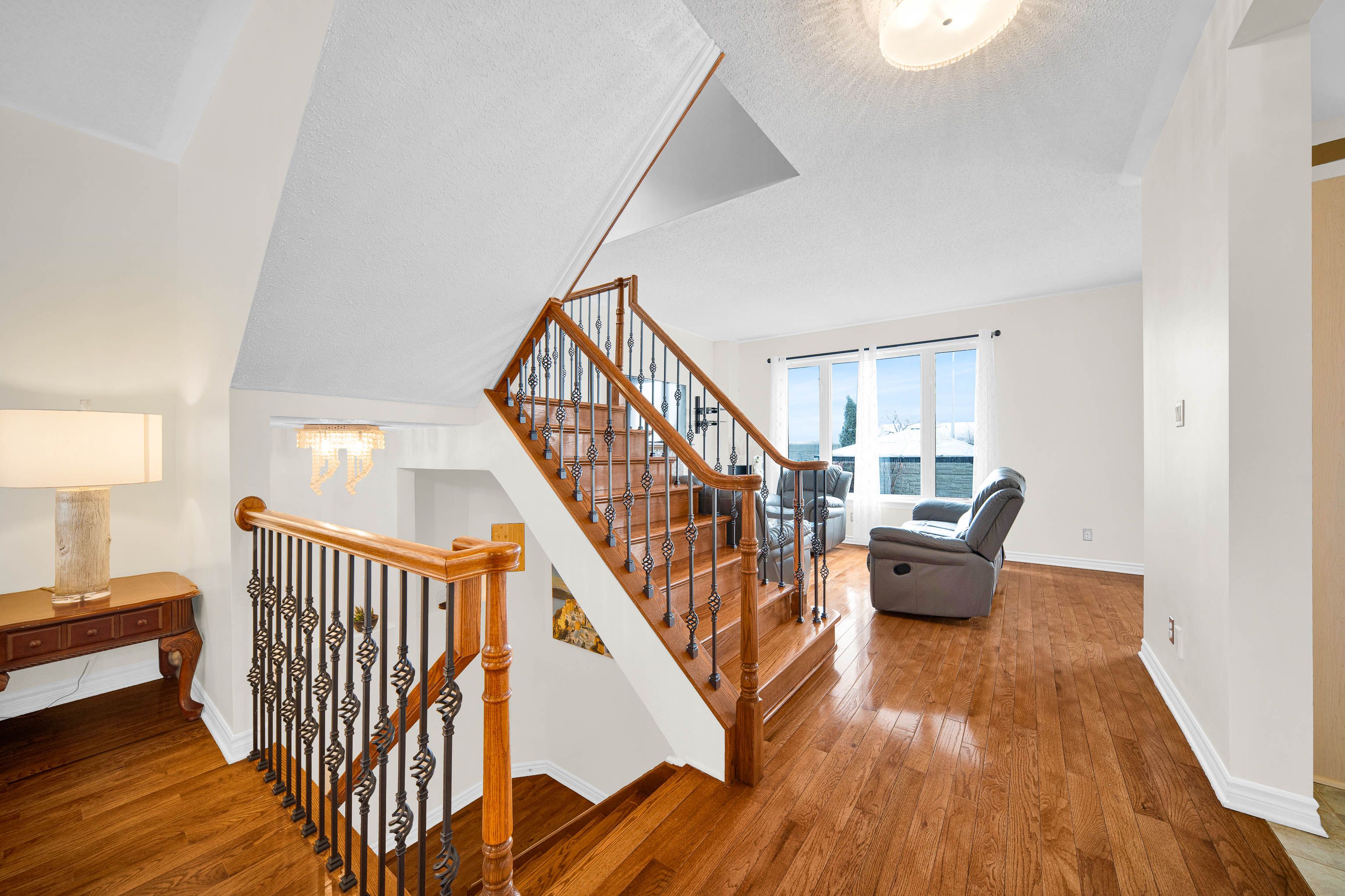 Welcome to this beautifully updated family home located in the highly sought-after springridge community of orleans. Offering generous living space, modern upgrades, and a versatile layout, this home is perfect for growing families or those who love to entertain. Step inside to a welcoming foyer featuring large ceramic tiles updated just two years ago. The home showcases newer hardwood flooring throughout the entire second floor and staircase, complemented by stylish black steel railings, creating a modern and elegant look. This home is completely carpet-free. The kitchen was refreshed in 2025 with new cabinet doors and quartz countertops, providing a bright and functional space for cooking and gatherings. Many light fixtures and chandeliers throughout the home have also been updated, adding a contemporary touch. The stove and refrigerator were replaced three years ago. Upstairs features four spacious bedrooms, including a comfortable primary retreat with a private 4-piece ensuite, along with a 3-piece main bathroom for family or guests. The fully finished basement offers incredible additional living space, complete with a large recreation room, a full bathroom, and an extra bedroom ideal for guests, extended family, or a home office. There is also plenty of storage space to keep everything organized. Major mechanical updates include a furnace and hot water tank replaced three years ago. Located in the family-friendly springridge neighbourhood, close to parks, schools, walking trails, and everyday amenities, this home offers the perfect blend of space, comfort, and modern updates.