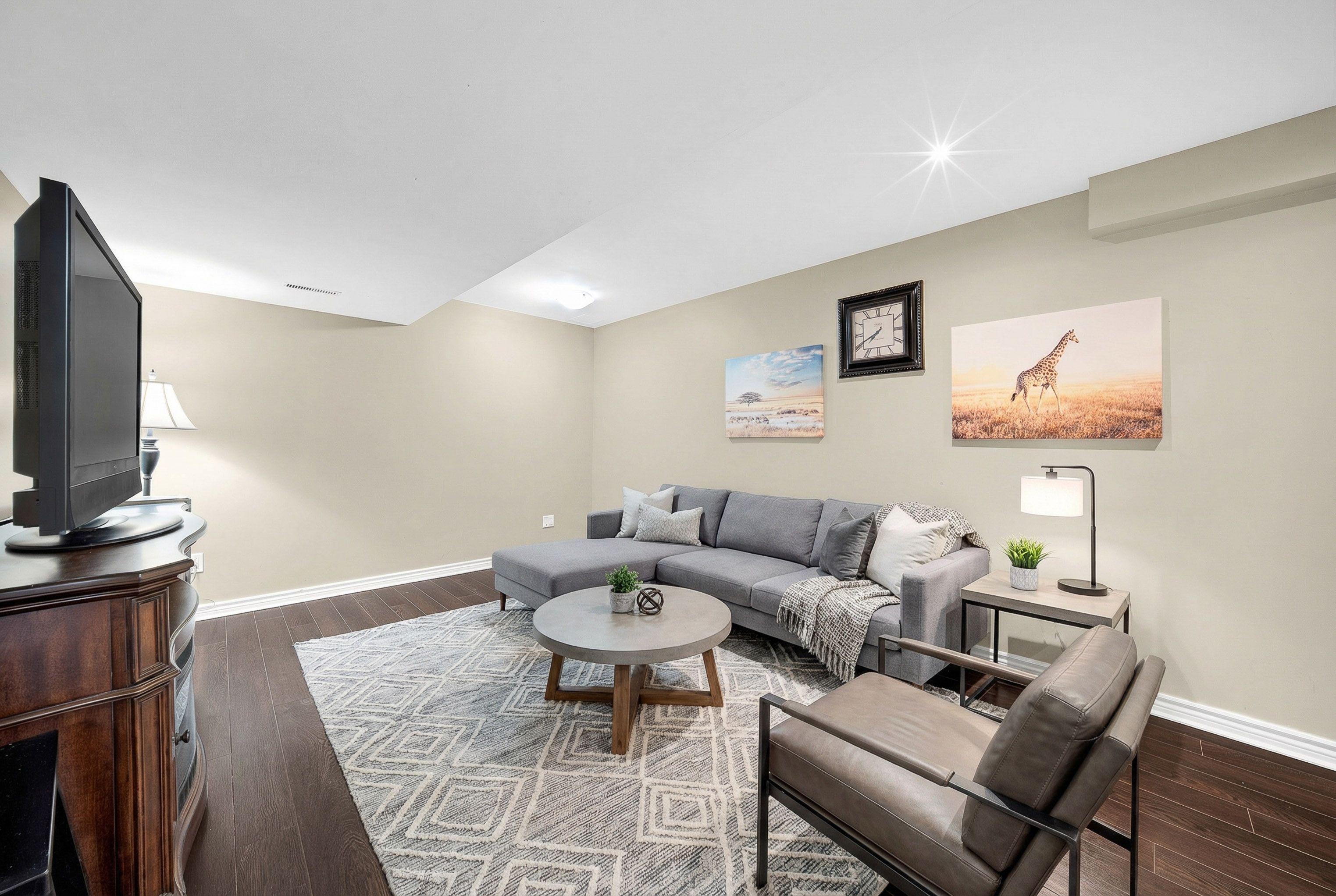 • Fully finished basement with recreation room, bathroom, and extra bedroom.