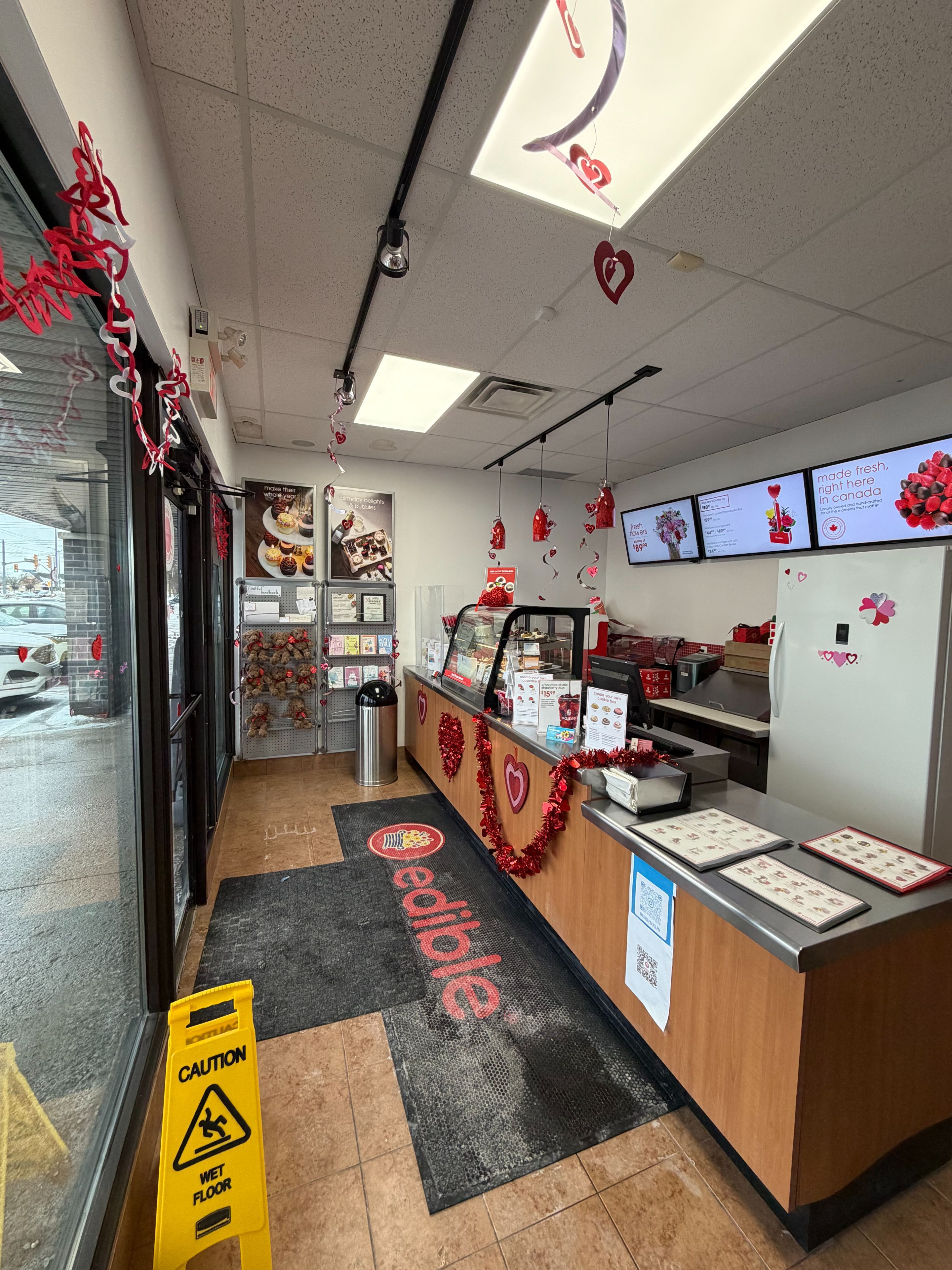 Excellent business opportunity!!!!! Very well known edible franchise located in a guelph region serving chocolate covered and fresh fruits gifts and treats. Conveniently located near university of guelph and situated in front of a stone road mall. Near by tim horton's ,dominos , wendy's ,major groceries, dentists and major banks. This store is serving over the past 18 years and the current owners have built loyal clientele throughout guelph and cambridge region over the past 7+ years with lots of repeated orders. Highly profitable business. Very low food cost. Excellent lease 5944 (including tmi and hst). Current lease until december 2028 with the option to renew 5+5 years. Very busy plaza , excellent franchise support and training. Please do not go direct or speak to the staff. Easy operations, no competition , updated equipment ,experienced staff ,semi-absentee owner operation.