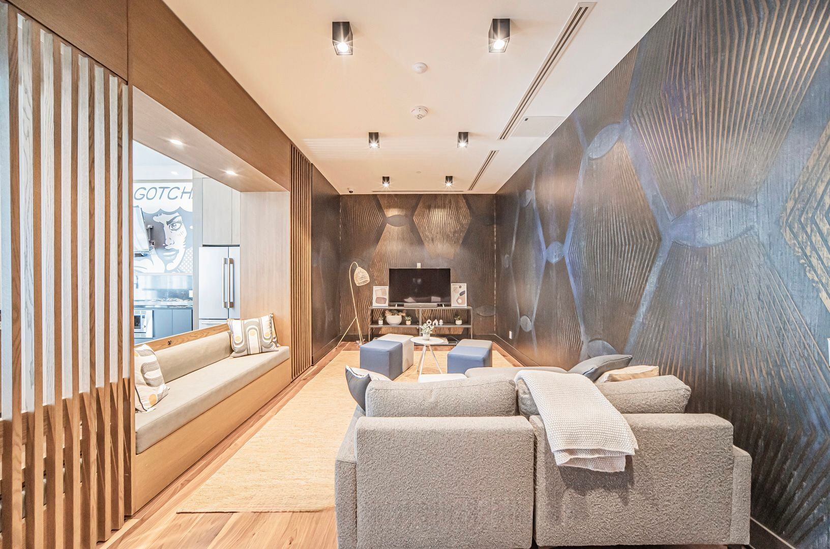 • Building amenities include gym, party room, theatre, and outdoor terrace.