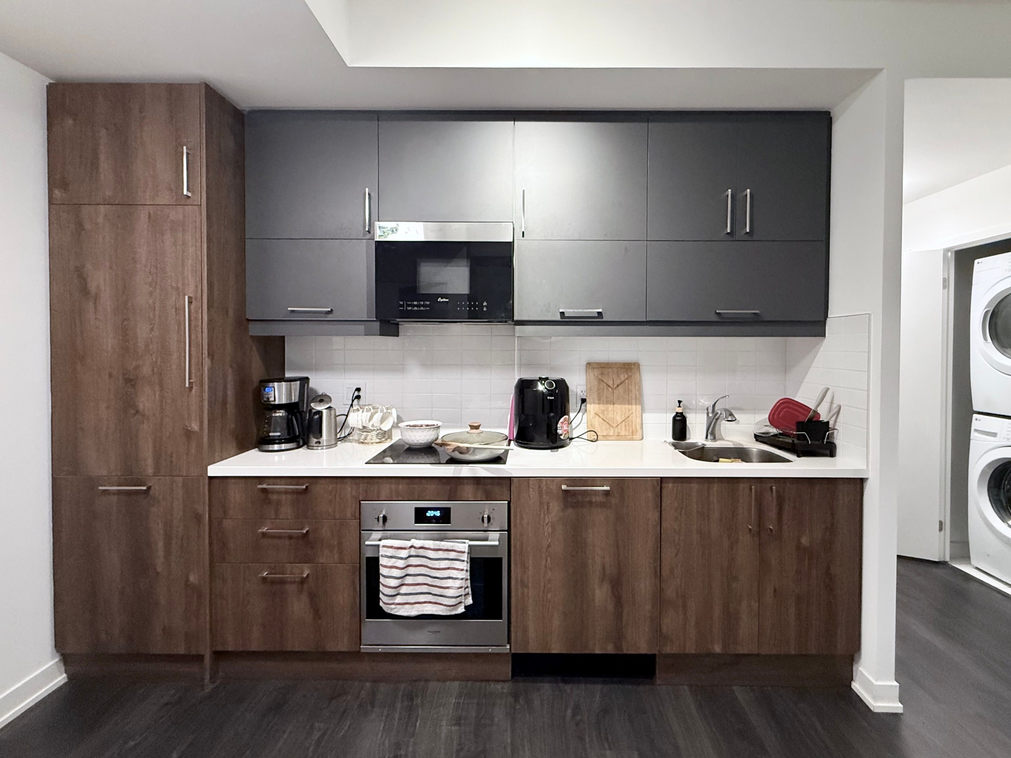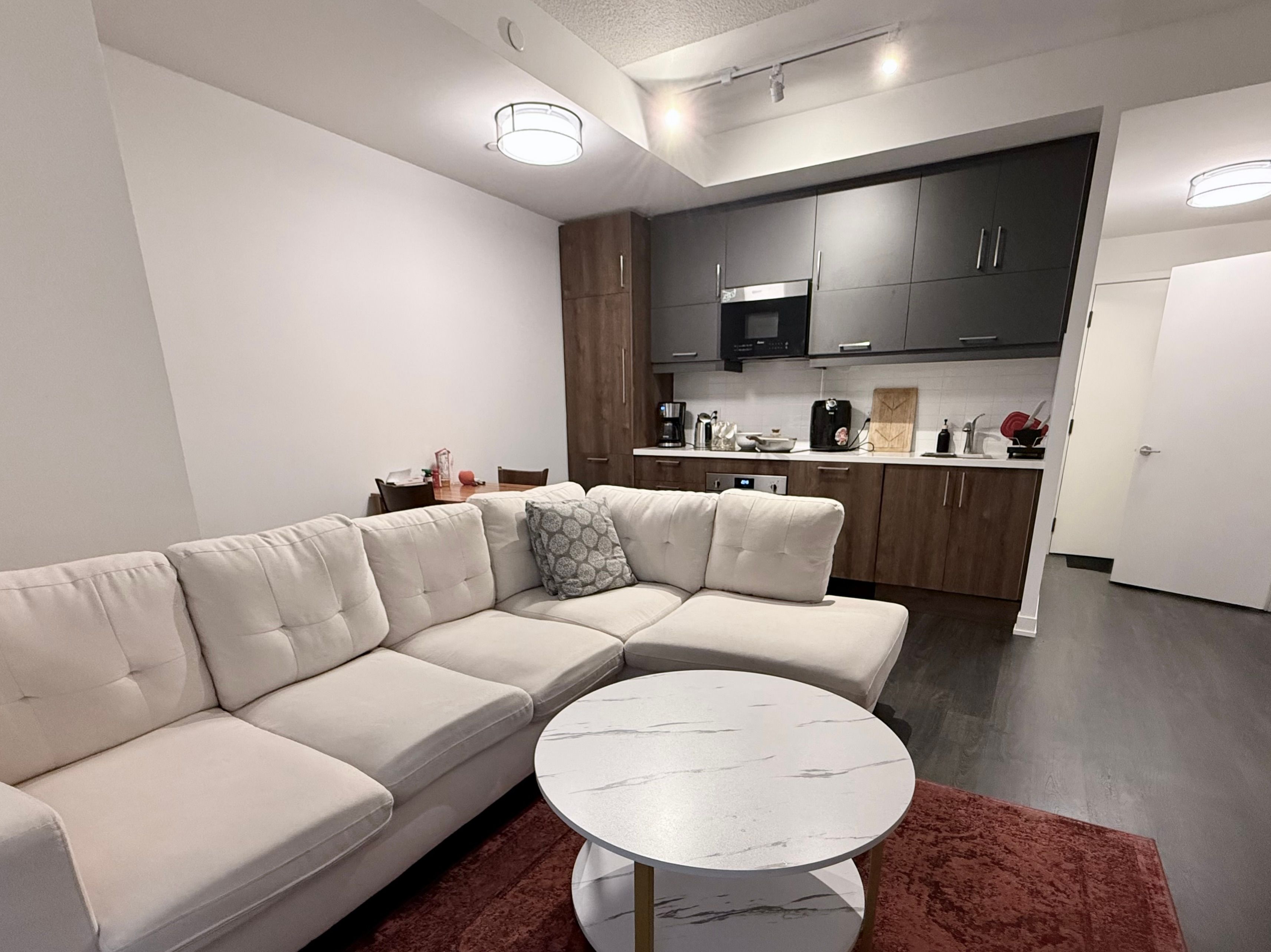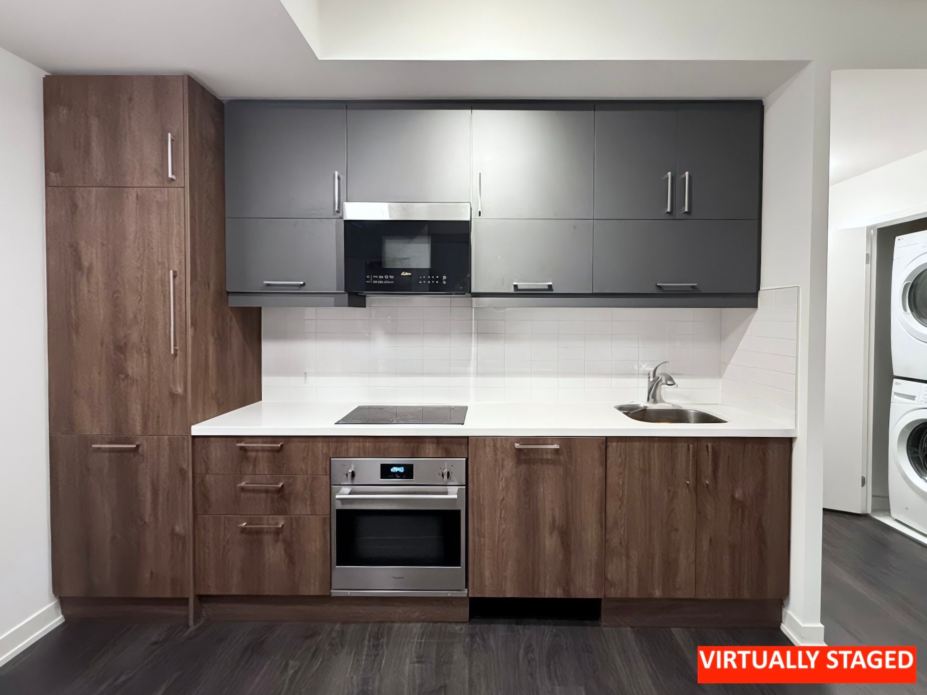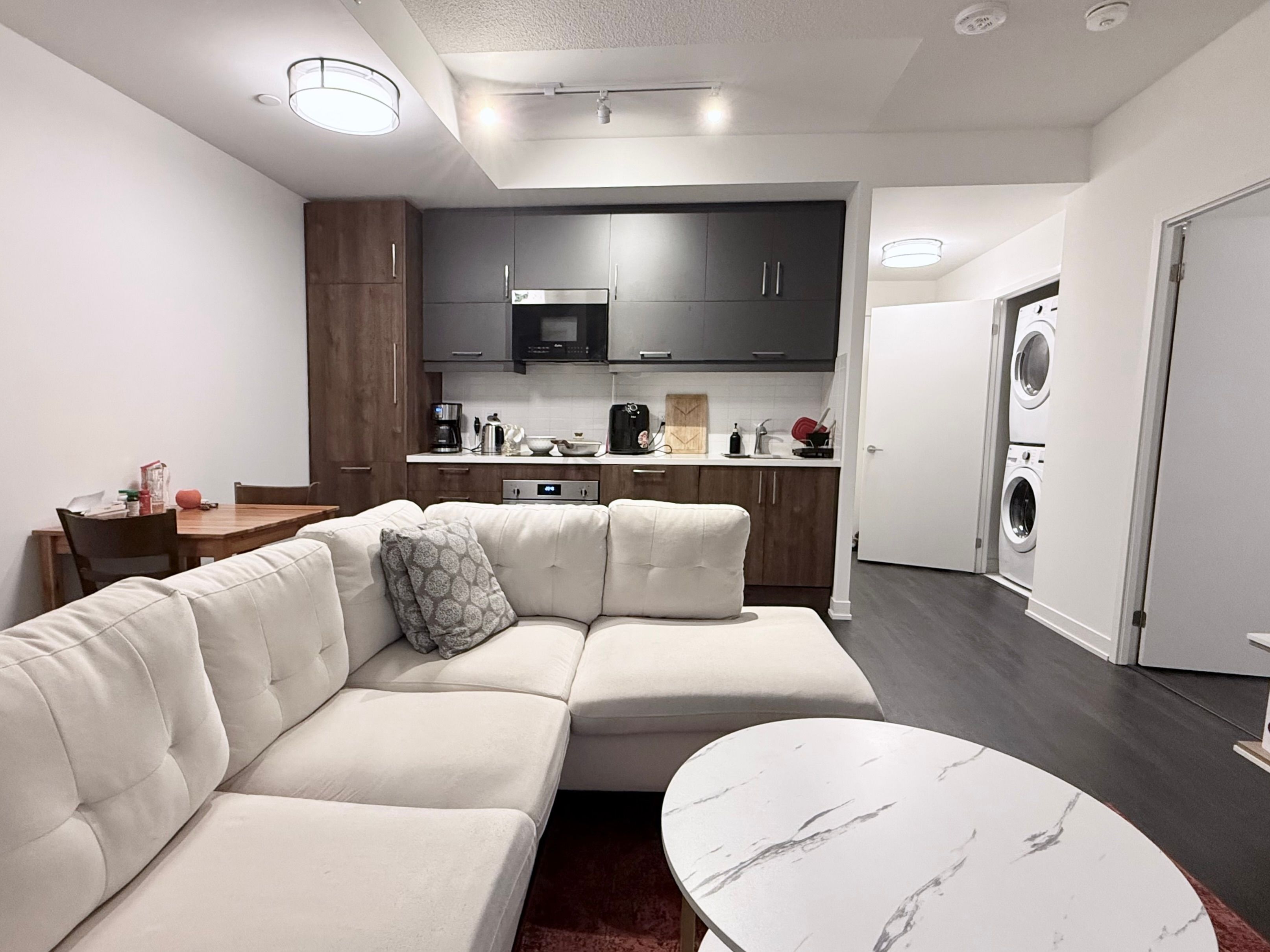 Welcome to your new home in the heart of downtown markham! Discover this new, 2-bedroom, 2-bathroom condo offering over 700 sq. Ft. Of modern living space. The open-concept layout features a multi-functional kitchen with quartz countertops, ceramic backsplash, and integrated built-in appliances accented by warm wood finishes. Enjoy your expansive balcony, perfect for morning coffee or evening entertaining. This premium suite combines comfort, style, and functionality in every detail. Ideally located in downtown markham, you're steps from boutique shops, restaurants, movie theatres, and the york university campus, with easy access to highways (404 & 407) and public transit for a quick commute to toronto. The building offers an impressive range of amenities including a state-of-the-art gym, yoga studio, partyroom, theatre, outdoor terrace, basketball court, games room, guest suites, concierge services, and visitor parking. Don't miss your chance to experience luxury urban living in one of markham's most vibrant communities!