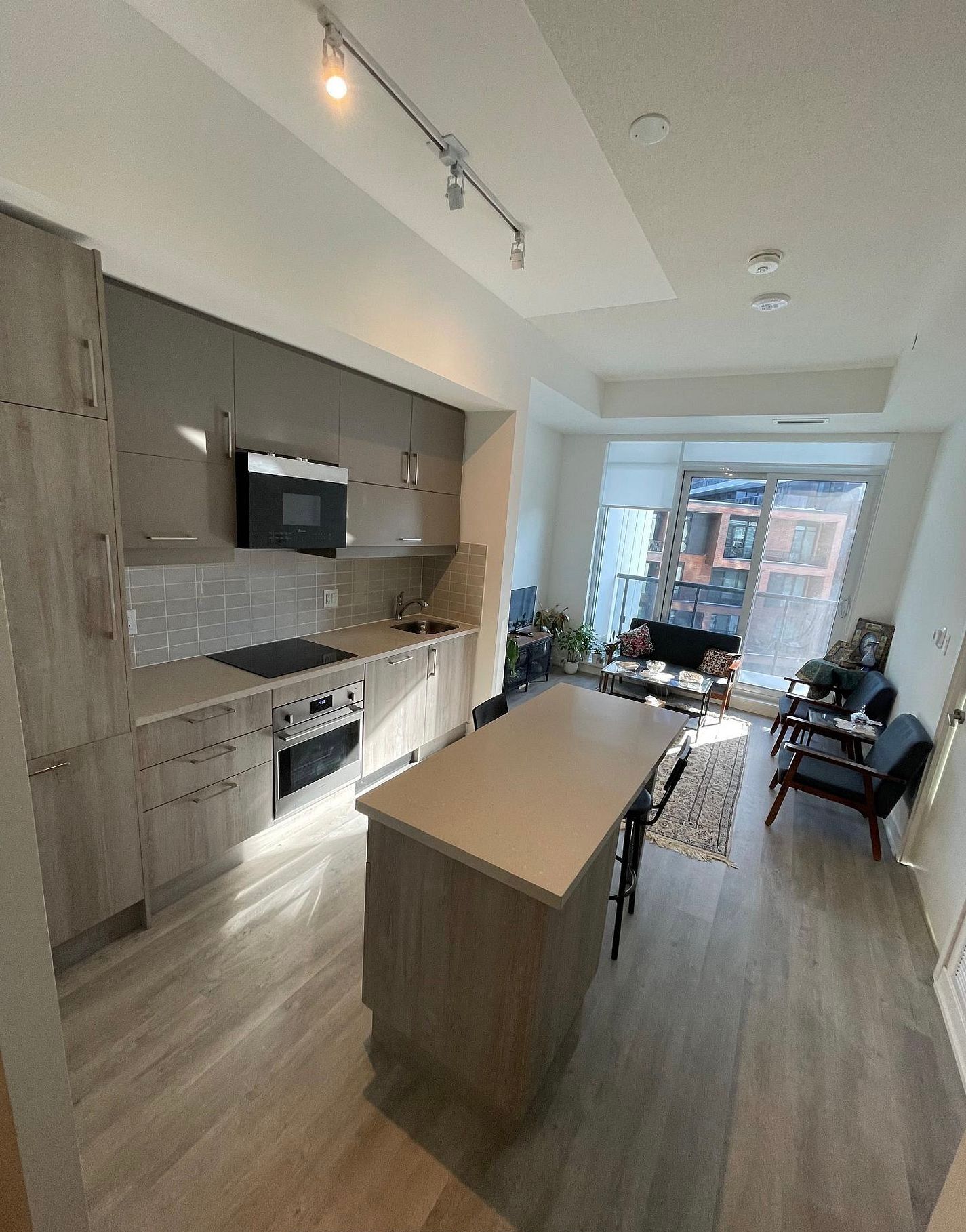 Welcome to building b 292, suite 1002 - modern living beautiful, nearly new 2-ycar-old condo unit located in one of the most sought-after areas of downtown markham! Step into this stylish 1-bedroom + den, 1-bathroom condo offering 549 sq. Ft. Of thoughtfully designed contemporary living space, enhanced by soaring 10 ft ceilings that create an open, airy, and luxurious atmosphere. The open-concept layout features a sleek, multifunctional kitchen with integrated built-in appliances and warm wood accents, delivering a perfect blend of comfort and sophistication. The spacious balcony extends your living area-ideal for morning coffee, weekend lounging, or evening entertaining. Every detail of this premium suite is crafted for modern urban life, combining style, functionality, and convenience at every turn. You're just steps from boutique shopping, trendy restaurants, 1450/2000cineplex vip, and york university's markham campus. Commuting is effortless with close access to highways 404 & 407, viva transit, and go transit, making travel throughout the gta a breeze. Enjoy an exceptional range of building amenities including a state-of-the-art gym, yoga studio, party room, theatre, outdoor terrace, basketball court, games room, guest suites, concierge service, and ample visitor parking don't miss your opportunity to experience upscale urban living in one of markham's most vibrant and convenient neighbourhoods! Clean status certificate available
