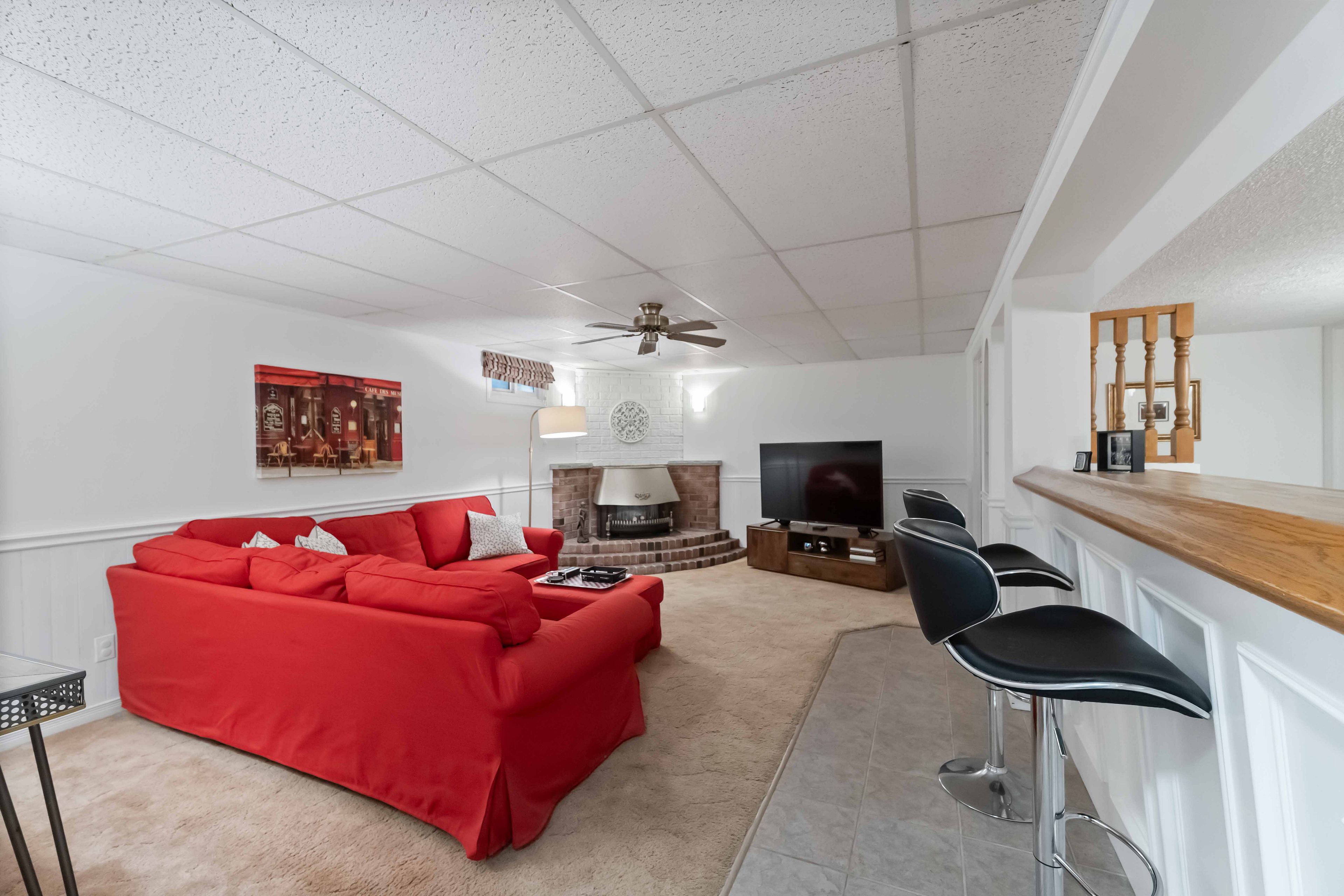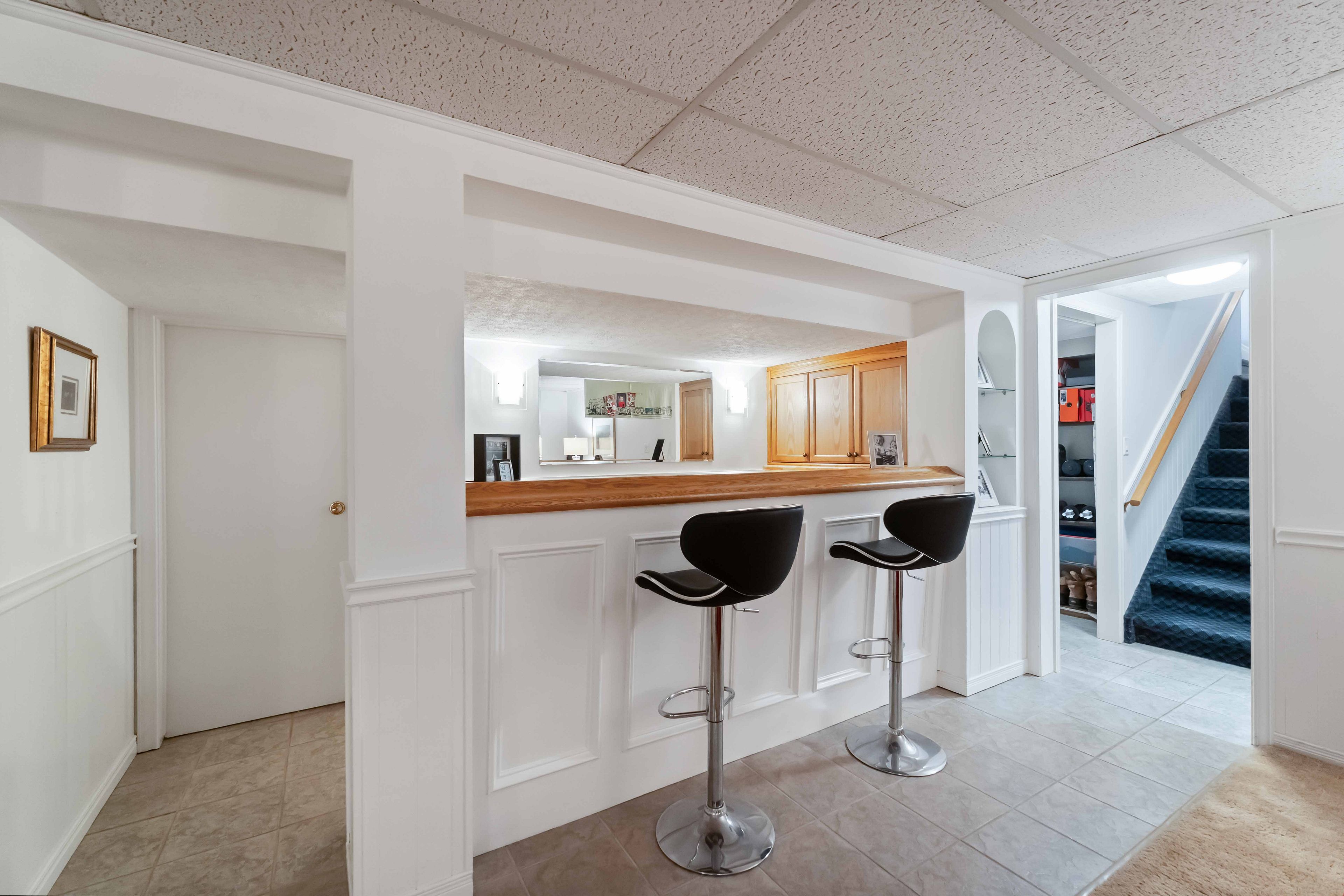 • Spacious lower level includes a recreation room and custom bar area.