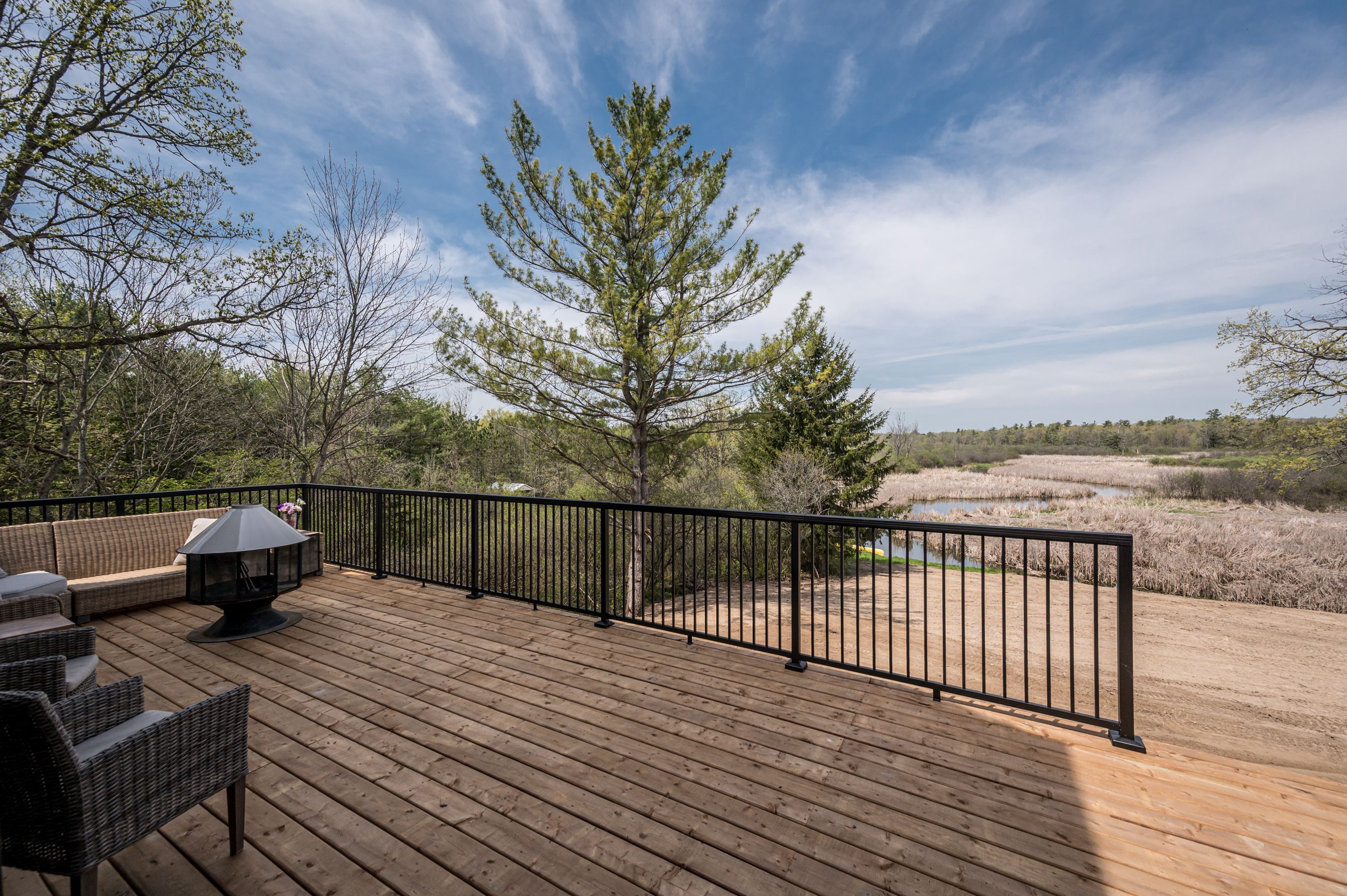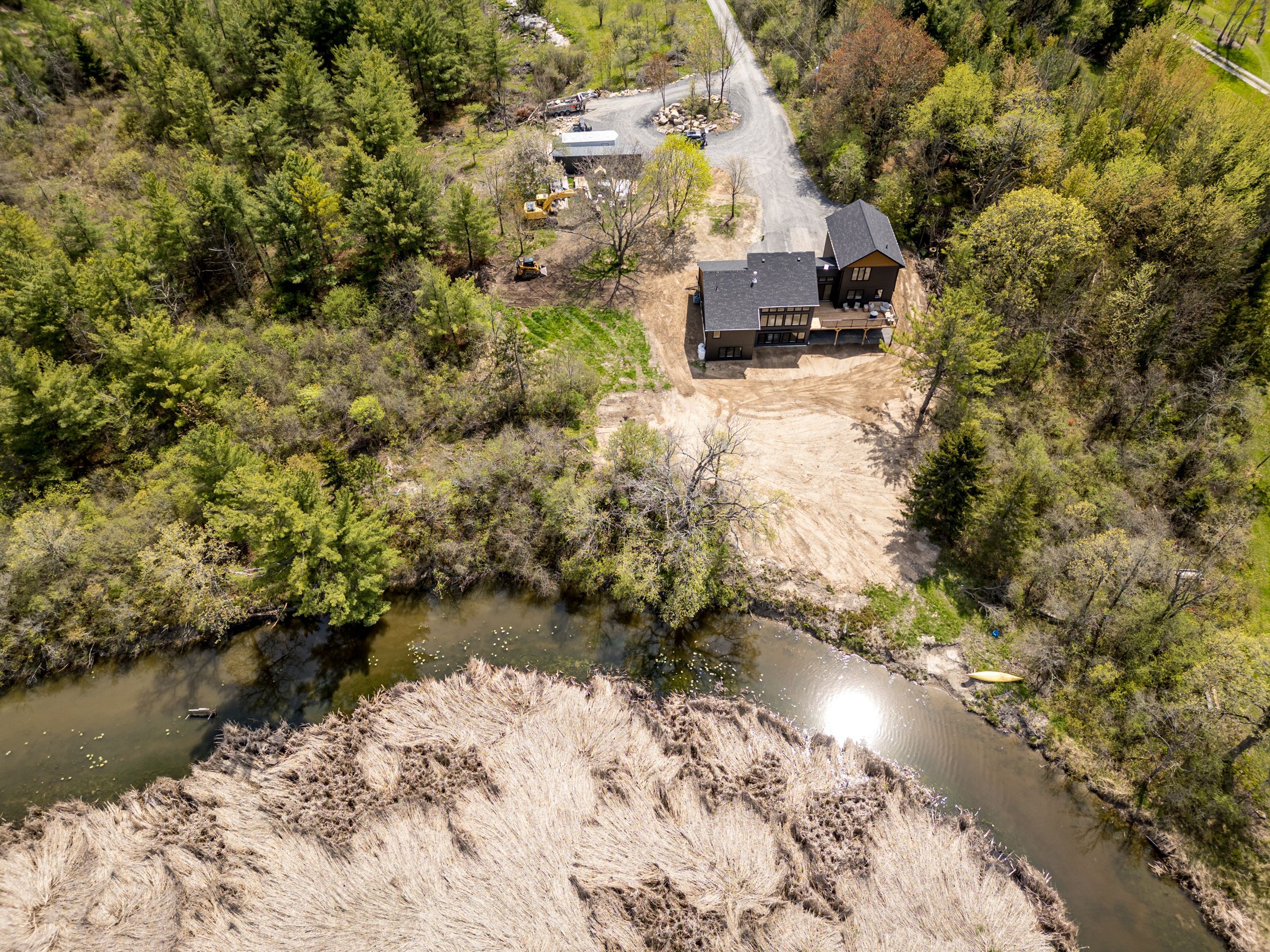 Discover this extraordinary 4-bedroom, 3-bathroom residence, beautifully renovated and set on over 30 acres of breathtaking land along grass creek. A brand new septic system installed in 2025 adds peace of mind to this already exceptional property. Step inside to soaring vaulted ceilings and an open concept layout filled with natural light. The stunning living room welcomes you with a cozy propane fireplace and rustic posts that seamlessly transition into a grand dining area-spacious enough to host gatherings of 10 or more, creating the perfect setting for lively conversations and unforgettable moments. The remarkable kitchen is a true culinary haven, featuring two toned cabinetry, gleaming white countertops, built in appliances, and an impressive pantry complete with double wall ovens and a wine fridge. This thoughtfully designed space inspires creativity and effortless entertaining. The main floor continues with a convenient laundry room, two generous bedrooms with vaulted ceilings, and a luxurious 4 piece bathroom showcasing a glass shower and deep soaker tub for ultimate relaxation. The second floor is dedicated entirely to the primary suite-a private retreat offering a bright bedroom, a spacious walk in closet, and an exquisite 4 piece ensuite with double sinks and a rejuvenating glass shower. The lower level reveals an inviting family room with a fireplace and a wall of windows framing enchanting views of the creek. Two additional spacious bedrooms, a 3 piece bathroom, and a dedicated gym space complete this versatile level, supporting a lifestyle of comfort and wellness. Step outside to an expansive deck overlooking the serene waterfront-perfect for entertaining, unwinding, or simply soaking in the beauty of nature. With grass creek park just minutes away and downtown kingston only a 10 minute drive, convenience and tranquility come together seamlessly. This property is a rare treasure-luxury, privacy, and natural beauty all in one extraordinary package.