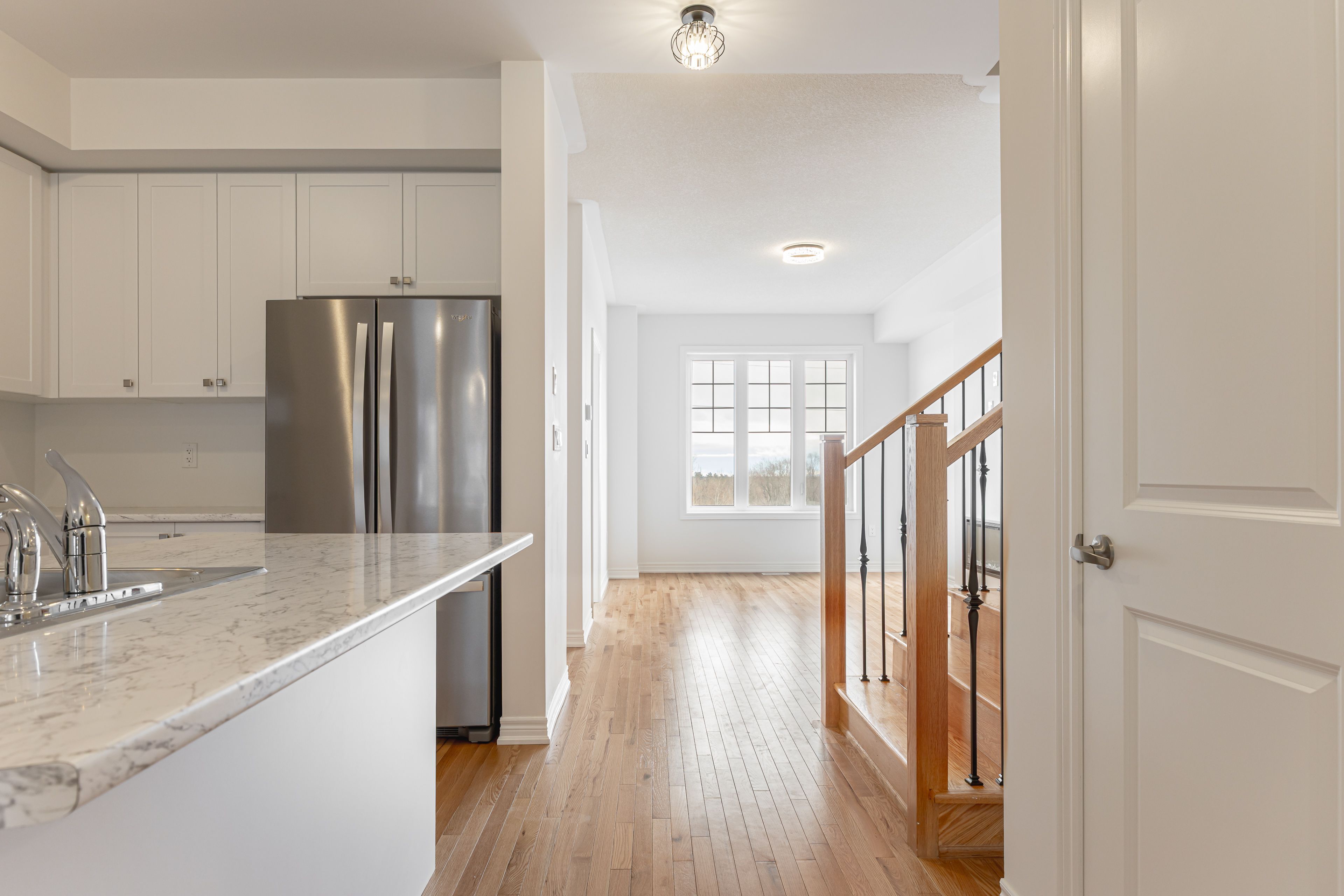 Welcome to this brand new, never lived-in freehold townhome with no potl fees, offering modern design and a functional layout. Thoughtfully built for today's lifestyle, this beautifully crafted home features 4 spacious bedrooms plus main floor office, providing flexibility for families, work-from-home professionals, or multigenerational living. The main living area showcases 9-ft ceilings, expansive windows, and an open-concept layout that fills the home with natural light and creates a bright, inviting atmosphere. The modern kitchen is the heart of the home, featuring sleek built-in appliances that blend seamlessly with the cabinetry and the contemporary finishes. It flows effortlessly into the living and dining areas, making it perfect for entertaining guests or everyday family living. Designed with convenience in mind, the home includes second-floor laundry and an ev charging-ready garage, that support practical modern living. Upstairs, the primary bedroom, complete with a beautifully designed ensuite featuring a full glass shower and ceiling-mounted rain shower for a spa-like experience. The additional bedrooms are generously sized and offer comfortable space for the entire family. A standout feature is the walkout basement with full-size windows and direct access to the main road, offering excellent potential for future income opportunities or additional living space. The home backs onto an open outdoor setting with no rear neighbours, creating a sense of privacy and a peaceful atmosphere. Located in a family-friendly neighbourhood, the home is close to top-rated schools, parks, shopping centres, and public transit. Commuters will appreciate the excellent connectivity with taunton road just 1 minute away, highway 407 only 5 minutes away, and highway 401 within a 10-minute drive. This home also includes the 7-year tarion builder warranty, providing added peace of mind. A rare opportunity to own a brand new home in one of pickering's desirable communities.
