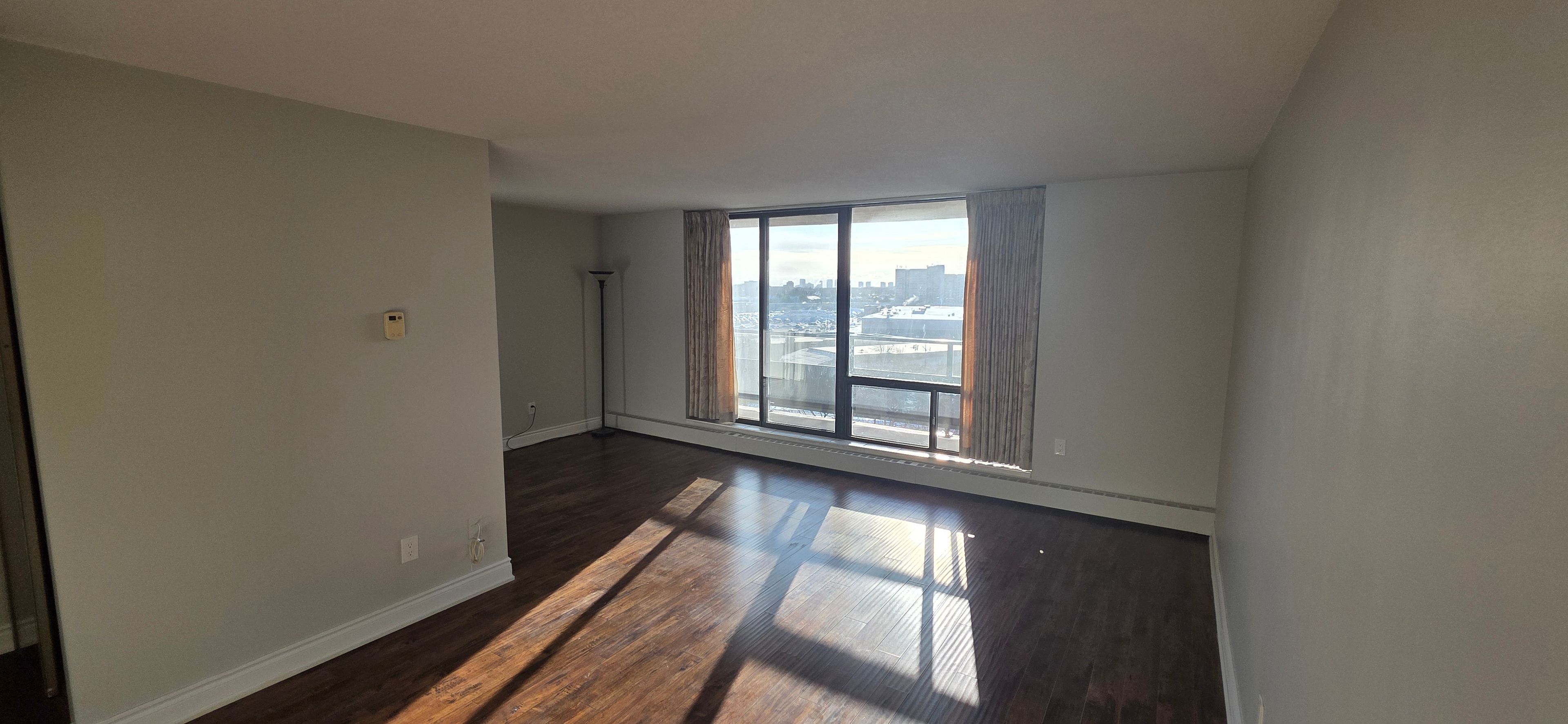 • Stunning views from floor-to-ceiling windows in a spacious living room.