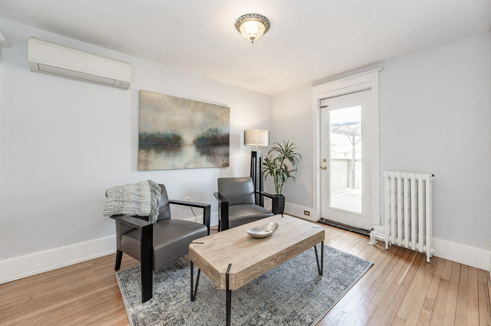 Exceptional opportunity to lease a modern, versatile office space in the heart of downtown waterdown village. Offering approximately 1,200 sq ft of flexible workspace, this three-room office with a large common area is ideal for professional services, creative firms, medical/wellness practitioners, boutique agencies, and growing businesses seeking high visibility and strong local foot traffic. Perfectly situated along dundas st e, this space provides walkable access to restaurants, coffee shops, boutiques, salons, parks, trails, and everyday amenities, while being minutes from major highways, transit, and ample parking. The private ground-level entrance opens into a bright foyer leading to a spacious open work area with natural hardwood flooring and a functional layout suitable for staff, clients, and meetings. The updated kitchen features stainless steel appliances and quartz counters, providing convenience for employees and hospitality. Three generously sized private offices offer excellent natural light and flexibility for individual workspaces, consultation rooms, or treatment rooms. A well-finished four-piece bathroom serves staff and clients comfortably. A walkout leads to a private outdoor deck, ideal for breaks or informal discussions. The upper level adds a massive additional workspace that can function as a boardroom, executive office, creative studio, or team collaboration area. This space combines modern finishes with unique character and offers a professional presence rarely found in a commercial lease. Position your business in the vibrant core of waterdown village and enjoy a dynamic, walkable location surrounded by strong local amenities and community energy.