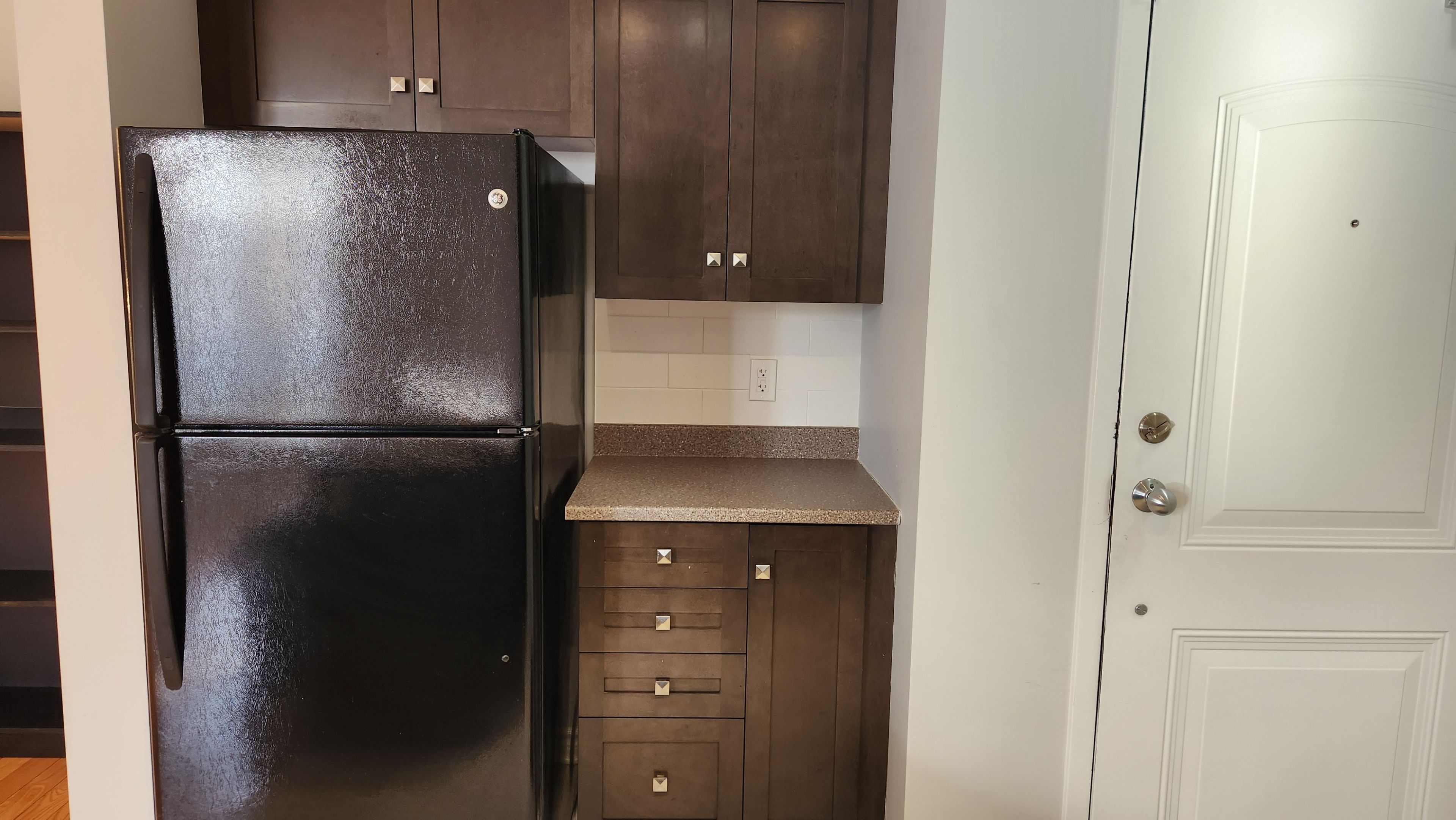 • Contemporary kitchen equipped with essential appliances and in-unit laundry.