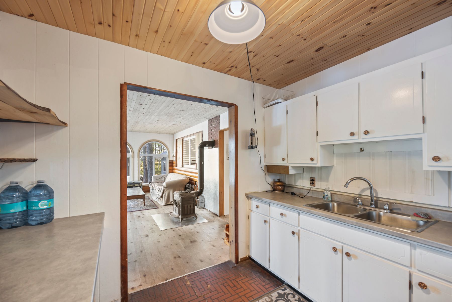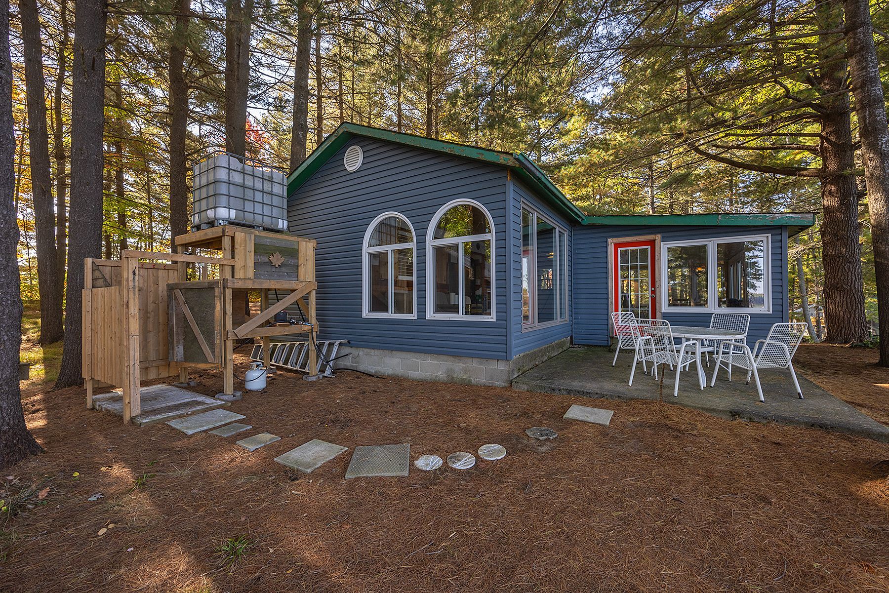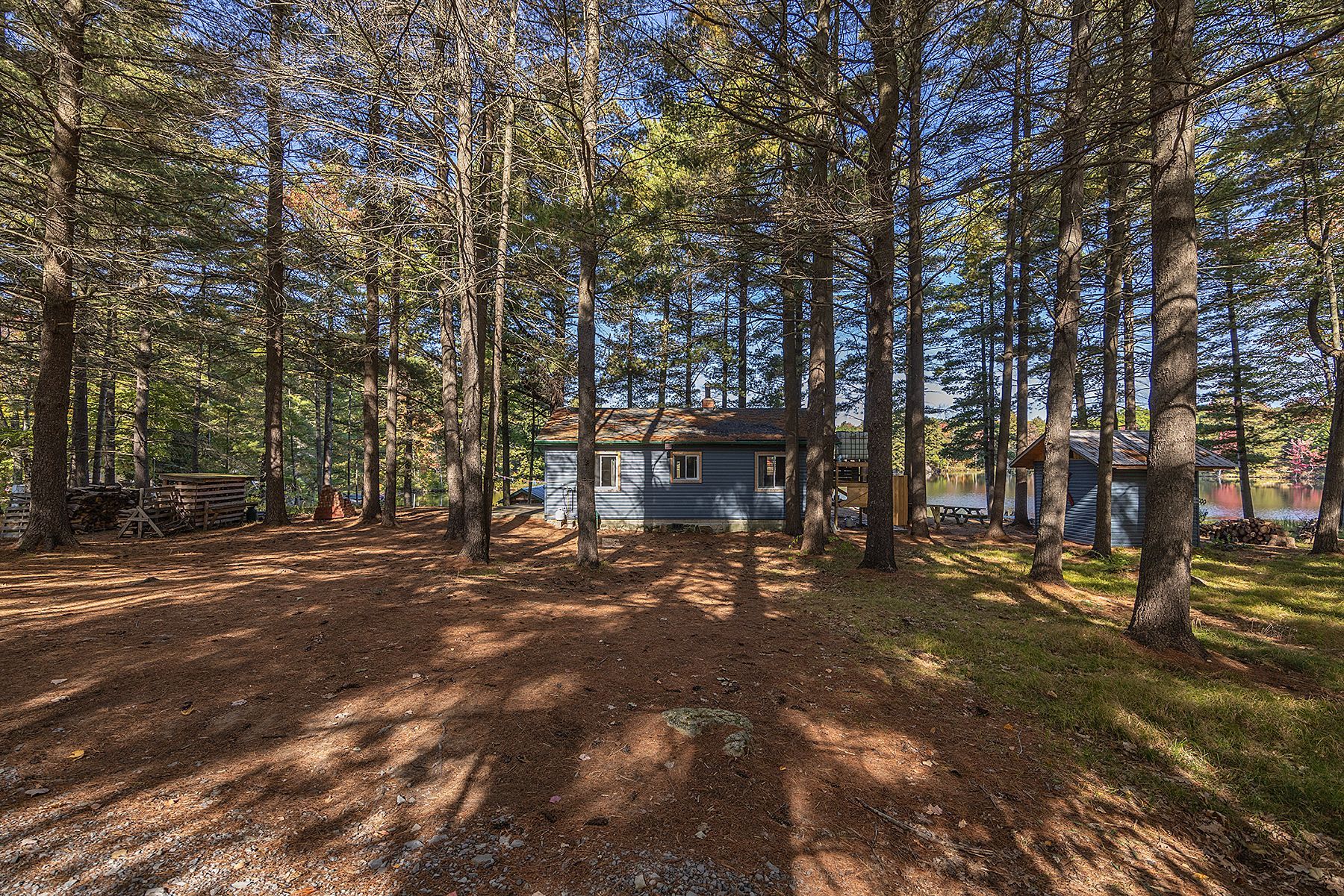 Serenity awaits at this charming off-the-grid (with solar powered battery system) cottage, nestled along the tranquil shores of stunning miner lake. Escape the demands of modern life and embrace a peaceful, sustainable retreat that offers 300 feet of pristine waterfront and breathtaking natural beauty. Tucked away amidst towering pines, this secluded getaway presents a rare opportunity to reconnect with nature. The main cottage exudes cozy rustic charm, featuring two inviting bedrooms and large windows that perfectly frame the serene lake views. A separate bunkie provides additional space for guests or family, offering a third bedroom with its own delightful ambiance. For an extra touch of relaxation, enjoy refreshing outdoor showers and immerse yourself in the sounds of nature. The recently renovated boathouse is fully functional and ready for lakeside adventures, while evenings around the campfire are sure to create memories that last a lifetime. With limited public access to miner lake, you'll enjoy peaceful solitude, abundant wildlife, and prime fishing: walleye, bass, and pike are plentiful. Whether you seek a serene personal escape, a family vacation retreat, or a unique investment, this miner lake property promises a lifetime of cherished moments. Don't miss this chance to make it your own oasis.
