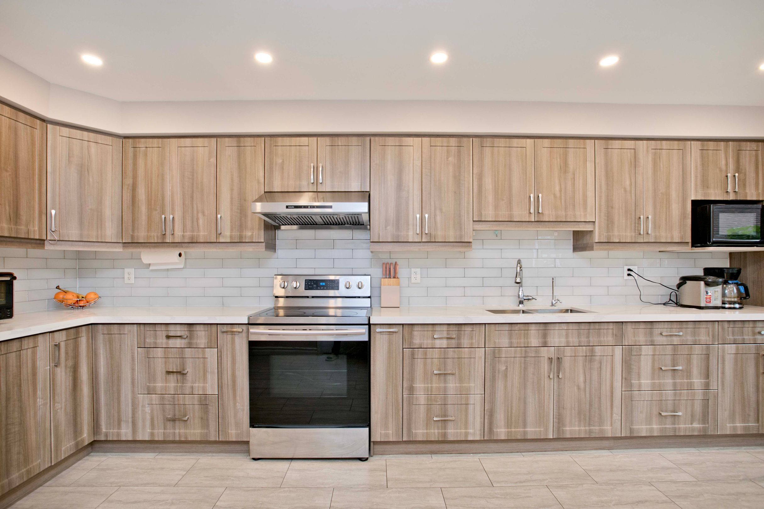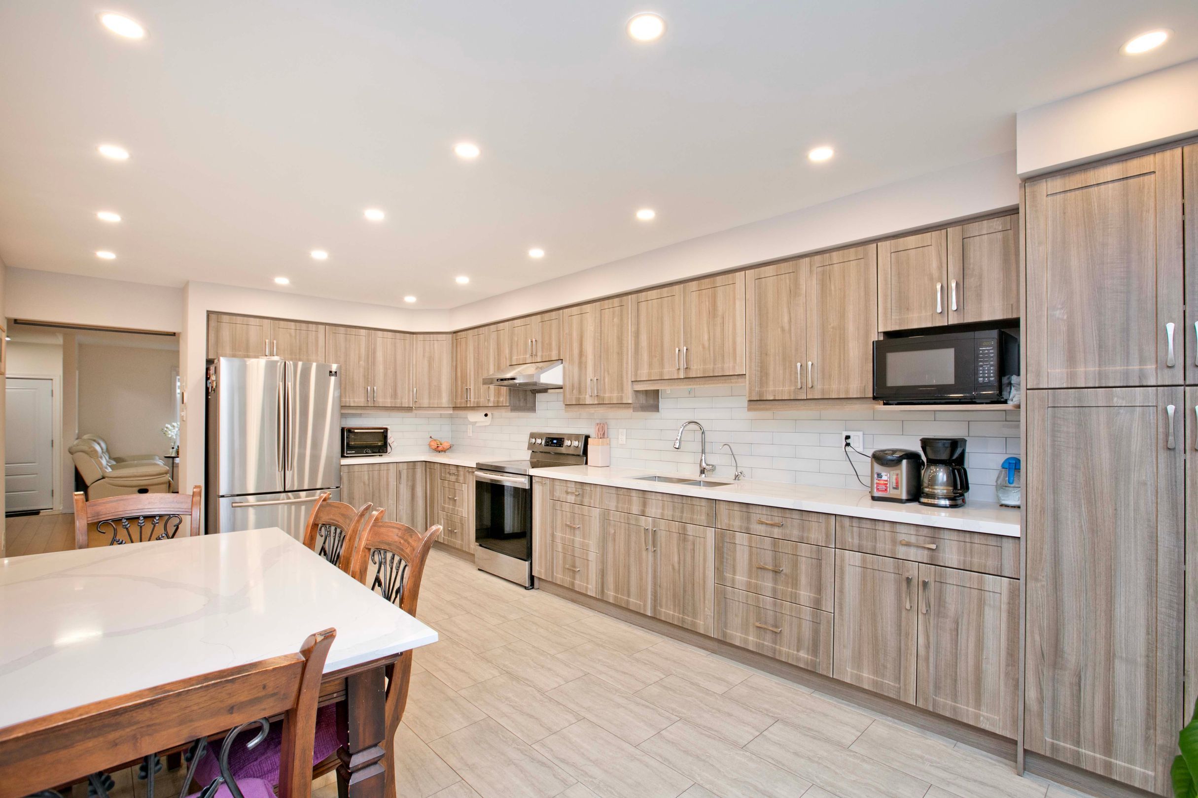 • Open concept kitchen with upgraded appliances and extended cabinets.