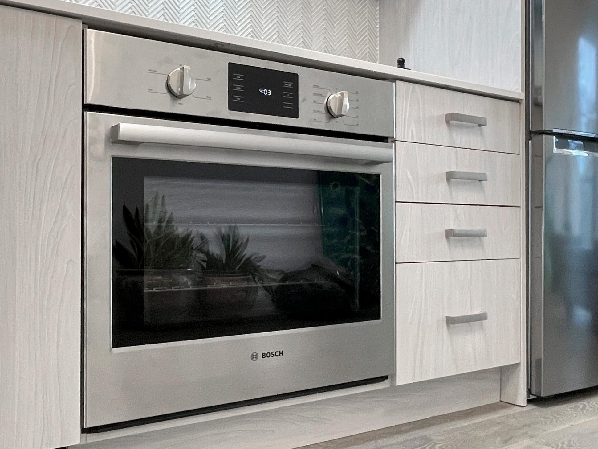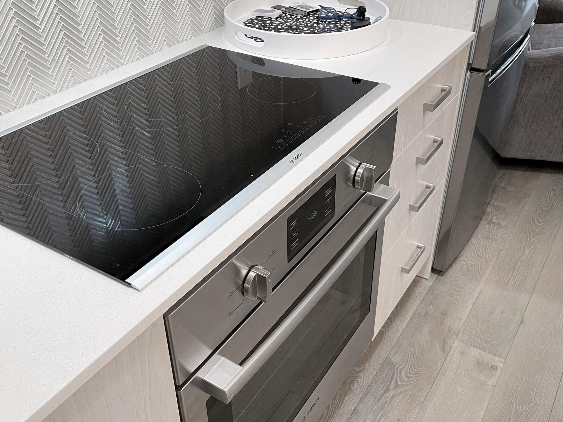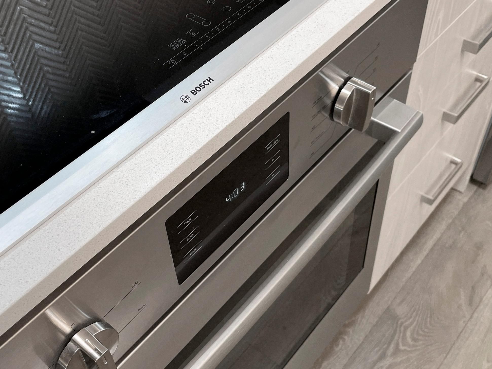 • Gourmet kitchen featuring high-end Bosch appliances and quartz countertops.