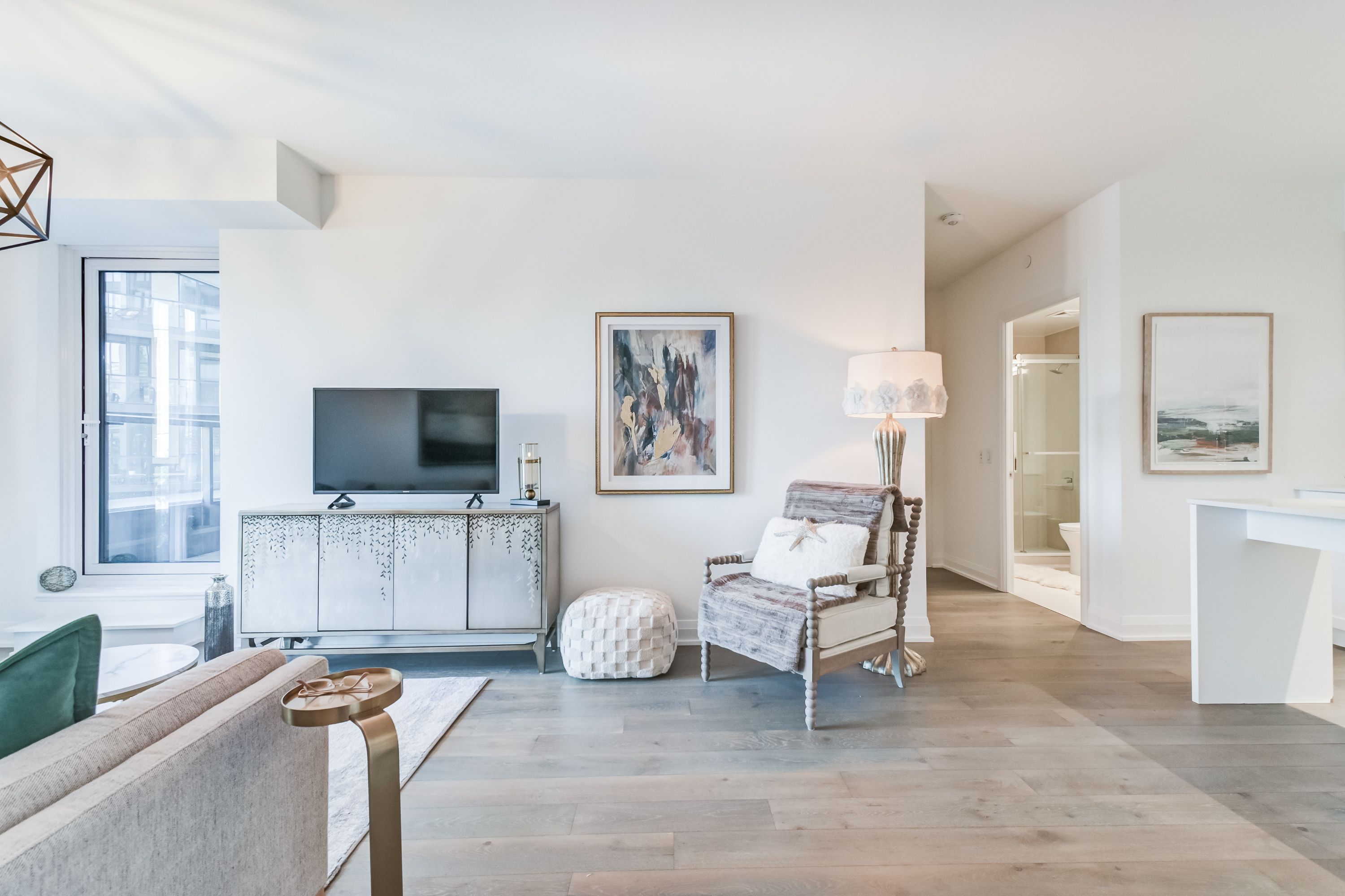 Step into this beautifully designed 2-bedroom, 2-bathroom condo offering a functional split layout and timeless finishes. The primary suite features a 3-piece ensuite and a walk-in closet, second bedroom with double wide closet and easy access to the full second bath. Impeccably maintained with 9-foot ceilings, wide-plank engineered wood flooring, smooth ceilings, and a bright east-facing view over the courtyard. The modern kitchen boasts caesarstone counters, a backsplash, centre island, and stainless steel appliances. Designed by the award-winning quadrangle architects, the building offers exceptional amenities. State-of-the-art, 3,420 sq ft fitness studio was conceived, planned and equipped by matt nichol, a world-renowned strength and conditioning coach. Enjoy the outdoors from the expansive rooftop terrace with breathtaking views of the neighbouring green space. With a firepit, gazebo, trellis, and lounge-style seating, it's the perfect place to host a party. Additional amenities include social and lifestyle spaces curated by patton design studio - a dining room with a caterer's kitchen, party room, a games area with billiards and foosball, pet wash station, and guest suites. Welcome to 293 the kingsway, an address of distinction.