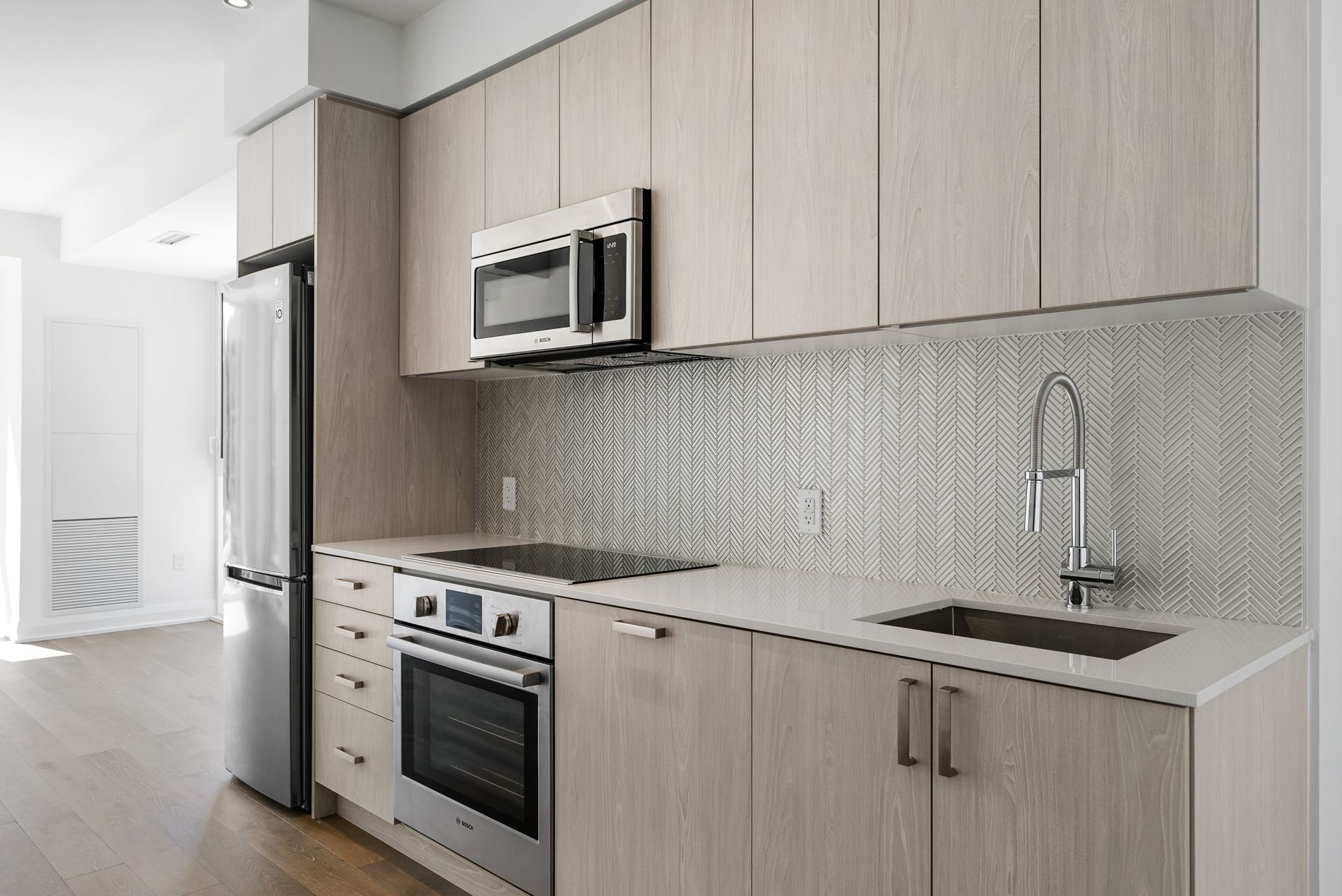 • Spacious 715 square feet suite with an open concept layout.