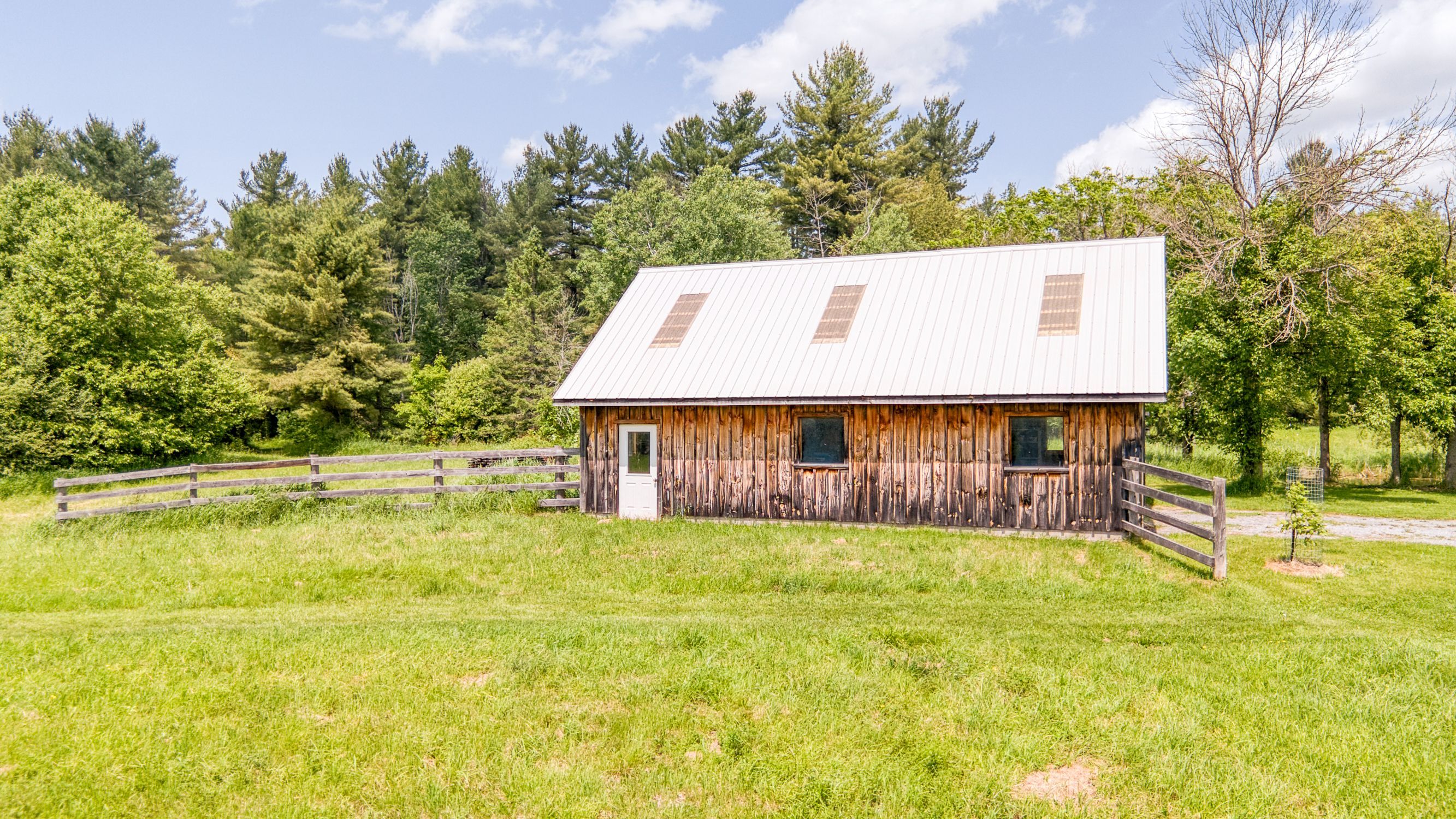 • Set on 94 acres with a mix of open fields and forest.