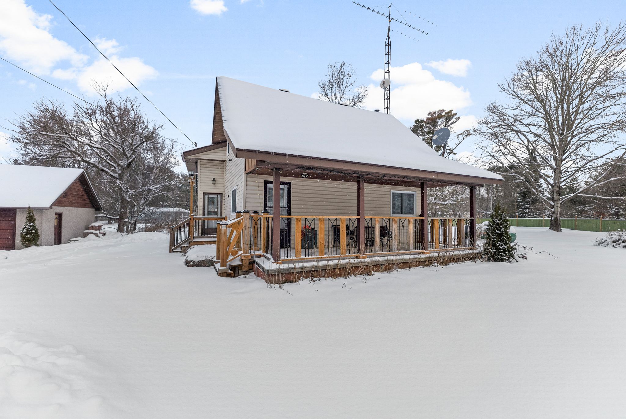Enjoy the charm of cottage living in this inviting 4-bedroom, 1. 5-bath home nestled among the peaceful pines of bancroft. Surrounded by nature and set on a partially fenced lot for added privacy, this property offers the perfect setting as a year-round home, weekend getaway, or a strong opportunity for airbnb income in a sought-after recreational area. Inside, the renovated kitchen, carpet-free layout, and pot lighting throughout create a bright and comfortable space that blends modern updates with relaxed cottage charm. The finished basement provides additional living space, ideal for family use or accommodating guests, while the new walkout leads to a spacious two-level deck with a gazebo perfect for entertaining or unwinding after a day by the water. Spend your mornings on the welcoming front porch, your afternoons enjoying the expansive backyard, and your evenings by the lake. With a private dock just steps away, swimming, boating, and peaceful waterfront moments become part of everyday life. The detached two-car garage with attic storage offers plenty of space for recreational gear and seasonal items. Conveniently located just off highway 28 and only minutes to local shops, restaurants, and year-round activities, this home offers the perfect balance of cottage tranquility and everyday convenience.
