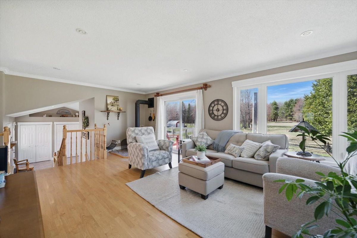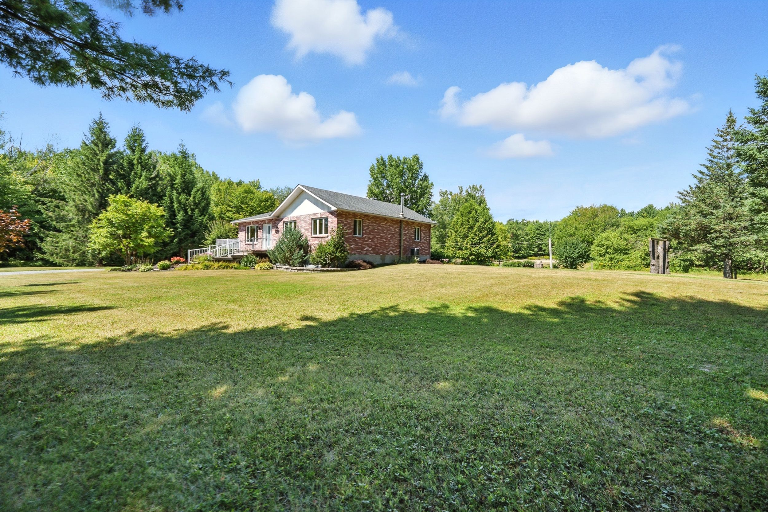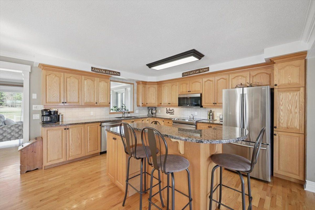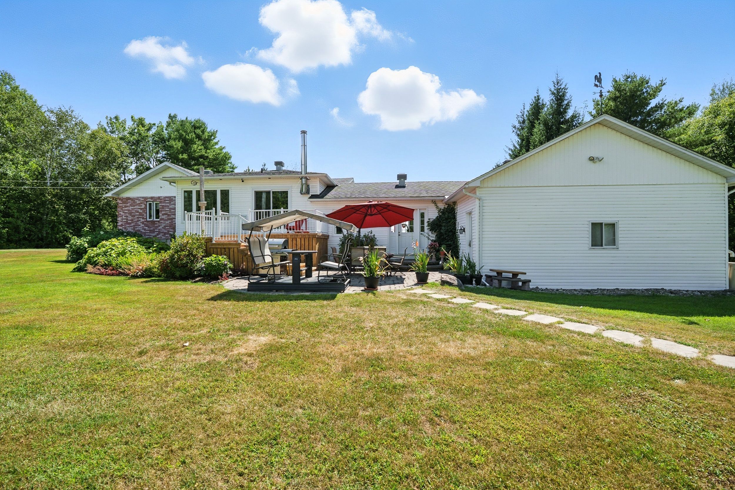 This immaculate brick bungalow offers 3+2 bedrooms and 3+1 bathrooms, along with an oversized double attached garage featuring 60-amp service, full insulation, and convenient inside entry. The open-concept main level is bright and filled with natural light, showcasing new custom bathrooms with travertine and tile, granite countertops, upgraded trim, and hardwood and ceramic flooring throughout. The spacious primary bedroom includes a private ensuite. Additional features include central a/c, central vacuum and a wood-burning stove. The fully finished lower level provides generous living space and abundant storage, including cold storage and a cedar closet. The home is equipped with fibre optic internet, uv water softener system, two wells, generlink hookup, new decks, and a marine battery backup for the sump pump. A brand new septic system is being installed in 2026 with permits, conforming to a five-bedroom home, offering long-term peace of mind. Equestrian facilities include a hemlock and steel constructed stable with insulated walls and poured concrete floors, 60-amp service, four box stalls with cushioned mats, heated tack room with running water, and feed room. Pastures are fully fenced with electro-braid fencing and eight horse-safe behlen ranch gates, plus two yard hydrants for on-demand water. The property also features an oversized sand ring with compacted sand and clay base, run-in shelter with lights and outlets, sacrifice paddock, and three separate pastures. Additional outbuildings include a detached steel utility garage and a sugar shack/machine shed with 30-amp service, automatic garage door opener, steel roof, wood stove, and maple syrup evaporator. A rare opportunity offering privacy, functionality, and exceptional equestrian infrastructure. Book your private showing today.