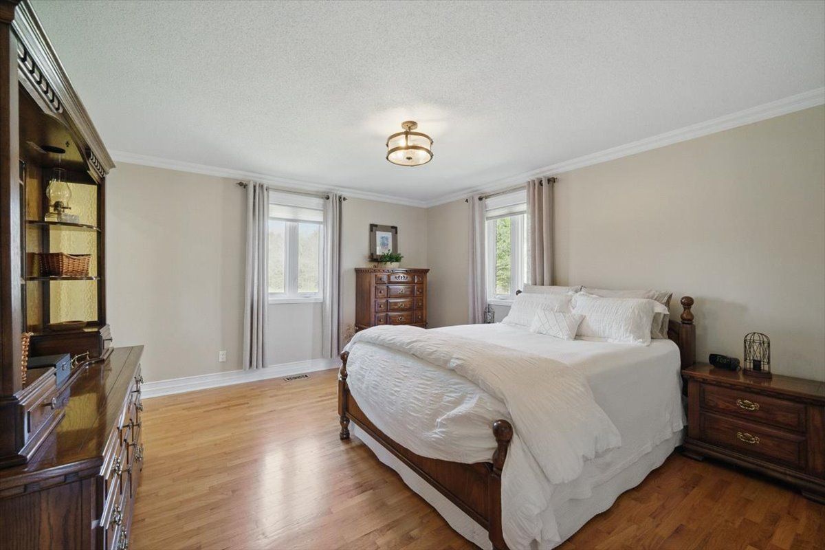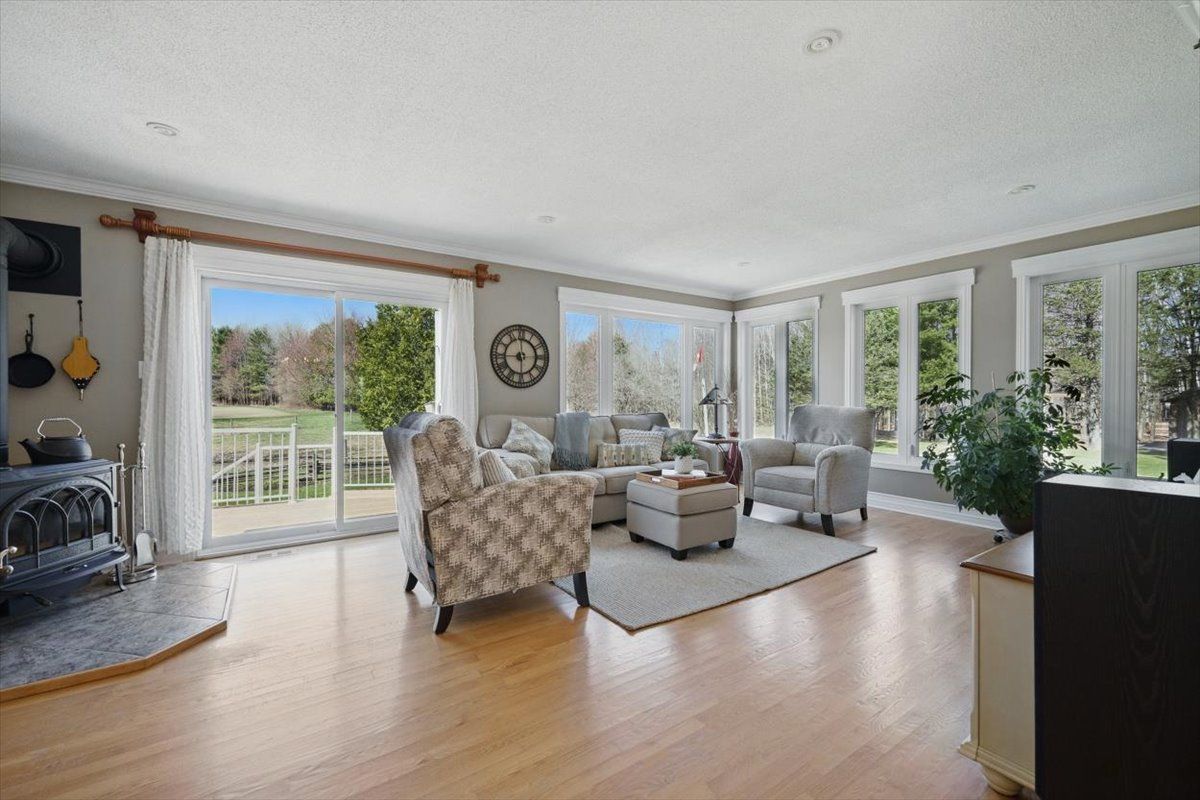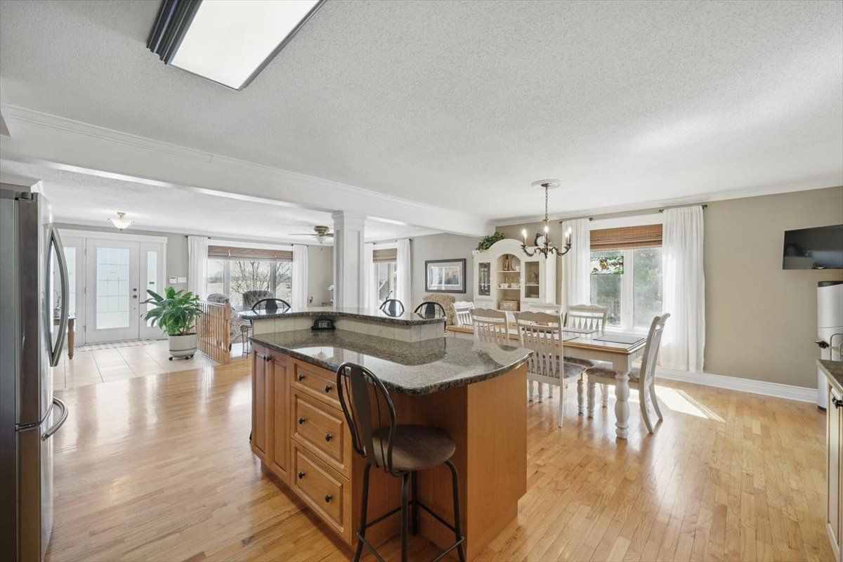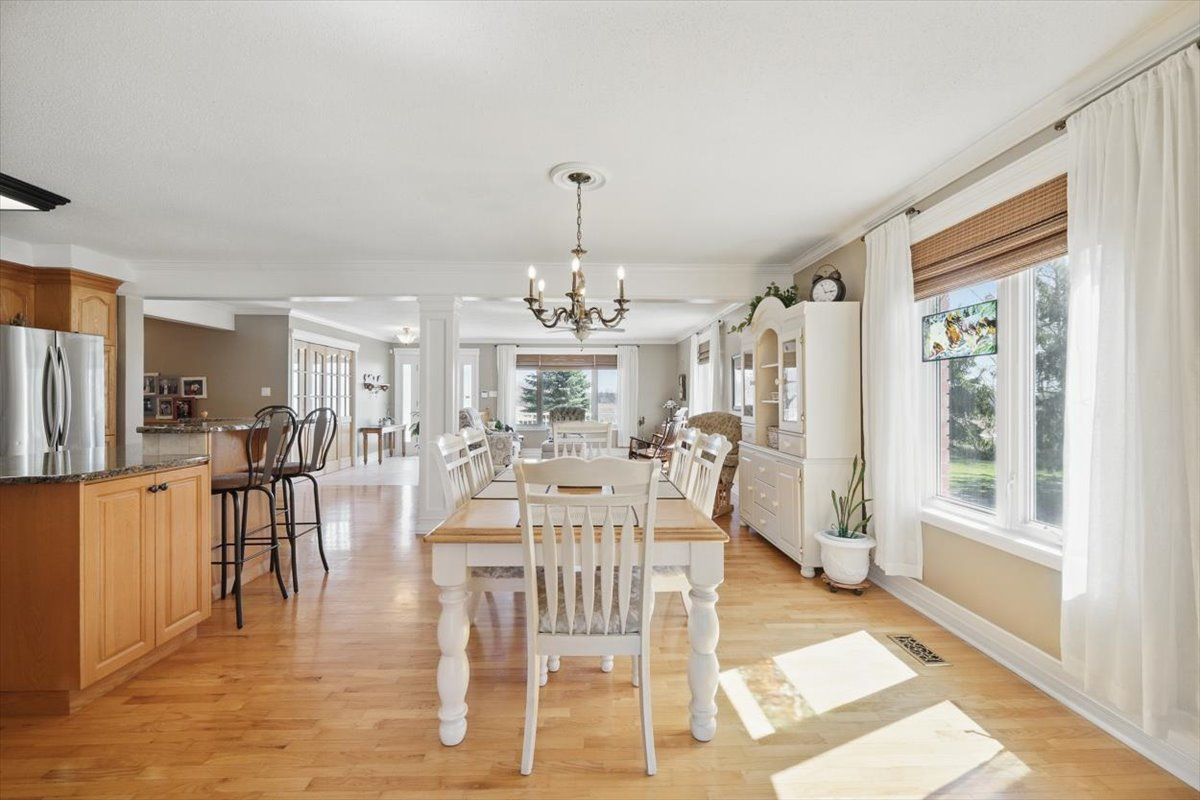 This immaculate brick bungalow offers 3+2 bedrooms and 3+1 bathrooms, along with an oversized double attached garage featuring 60-amp service, full insulation, and convenient inside entry. The open-concept main level is bright and filled with natural light, showcasing new custom bathrooms with travertine and tile, granite countertops, upgraded trim, and hardwood and ceramic flooring throughout. The spacious primary bedroom includes a private ensuite. Additional features include central a/c, central vacuum and a wood-burning stove. The fully finished lower level provides generous living space and abundant storage, including cold storage and a cedar closet. The home is equipped with fibre optic internet, uv water softener system, two wells, generlink hookup, new decks, and a marine battery backup for the sump pump. A brand new septic system is being installed in 2026 with permits, conforming to a five-bedroom home, offering long-term peace of mind. Equestrian facilities include a hemlock and steel constructed stable with insulated walls and poured concrete floors, 60-amp service, four box stalls with cushioned mats, heated tack room with running water, and feed room. Pastures are fully fenced with electro-braid fencing and eight horse-safe behlen ranch gates, plus two yard hydrants for on-demand water. The property also features an oversized sand ring with compacted sand and clay base, run-in shelter with lights and outlets, sacrifice paddock, and three separate pastures. Additional outbuildings include a detached steel utility garage and a sugar shack/machine shed with 30-amp service, automatic garage door opener, steel roof, wood stove, and maple syrup evaporator. A rare opportunity offering privacy, functionality, and exceptional equestrian infrastructure. Book your private showing today.