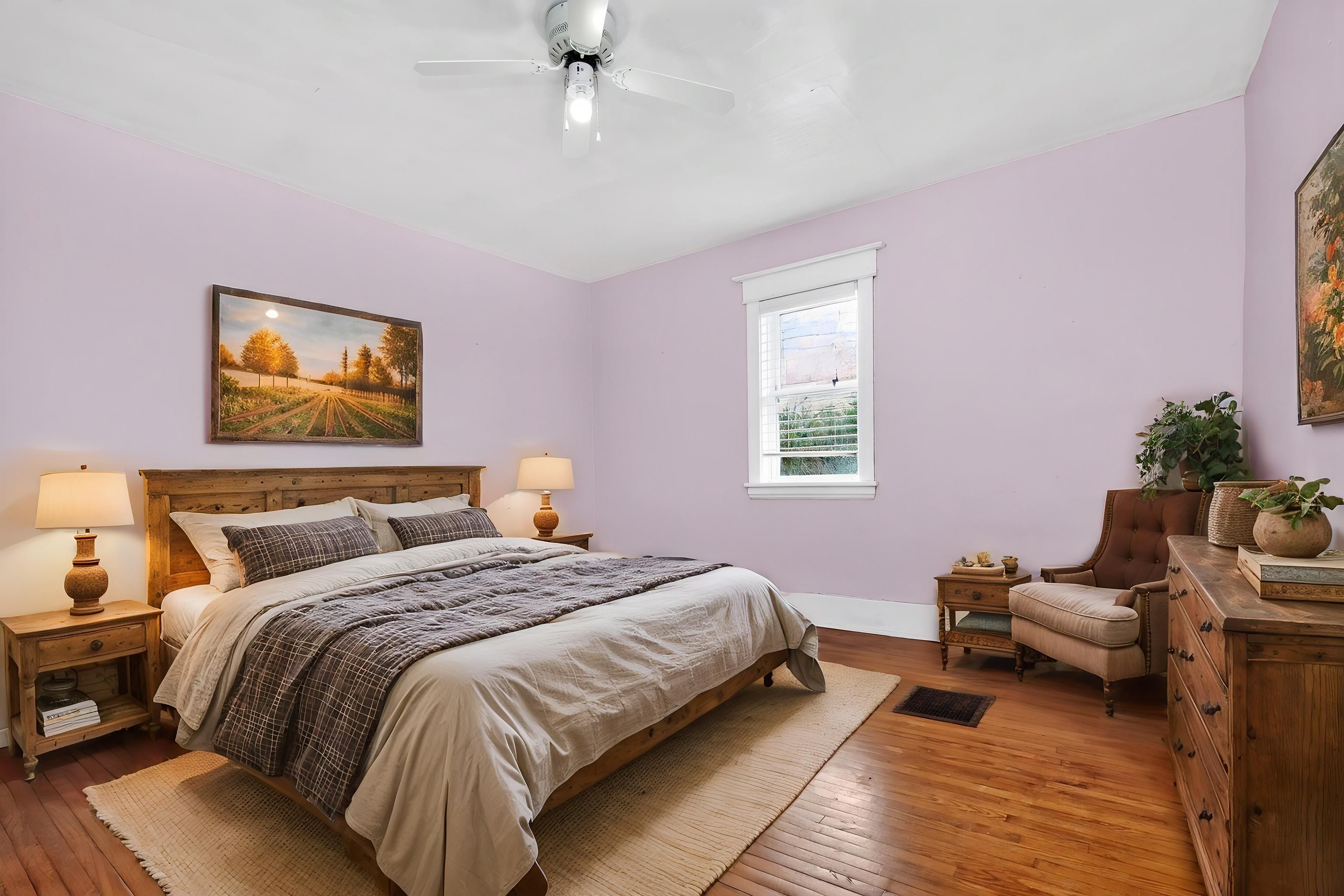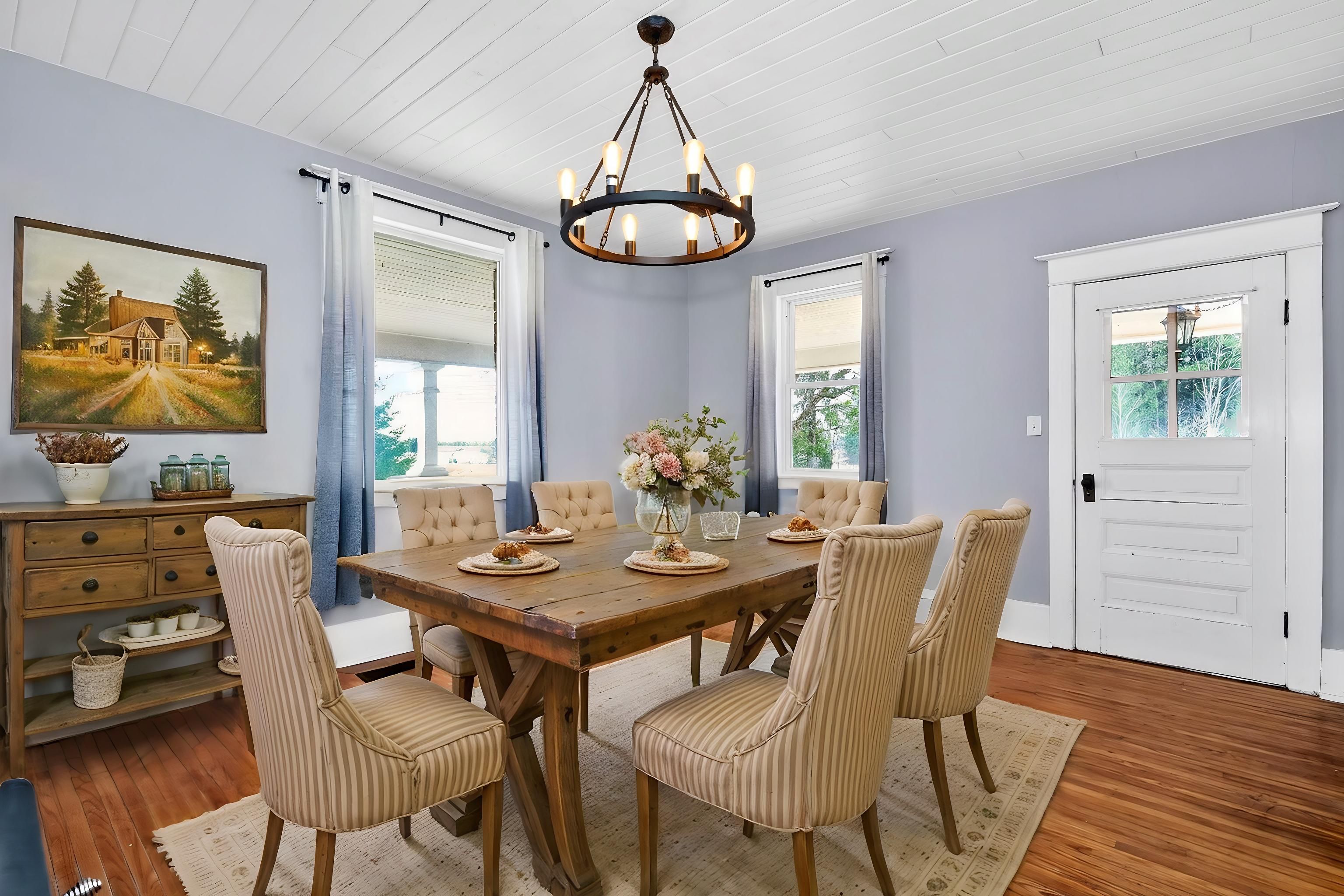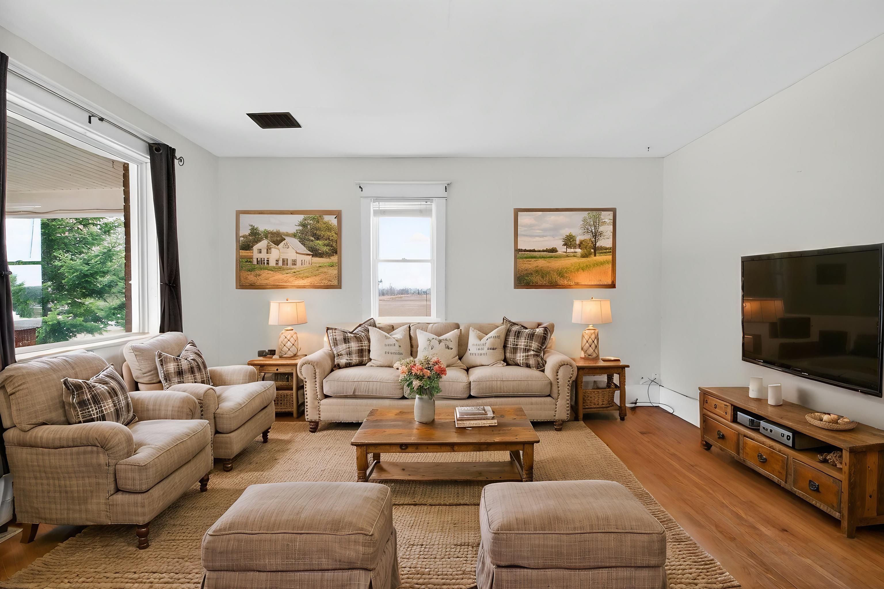 • Charming farmhouse offers peace and privacy in rural countryside.