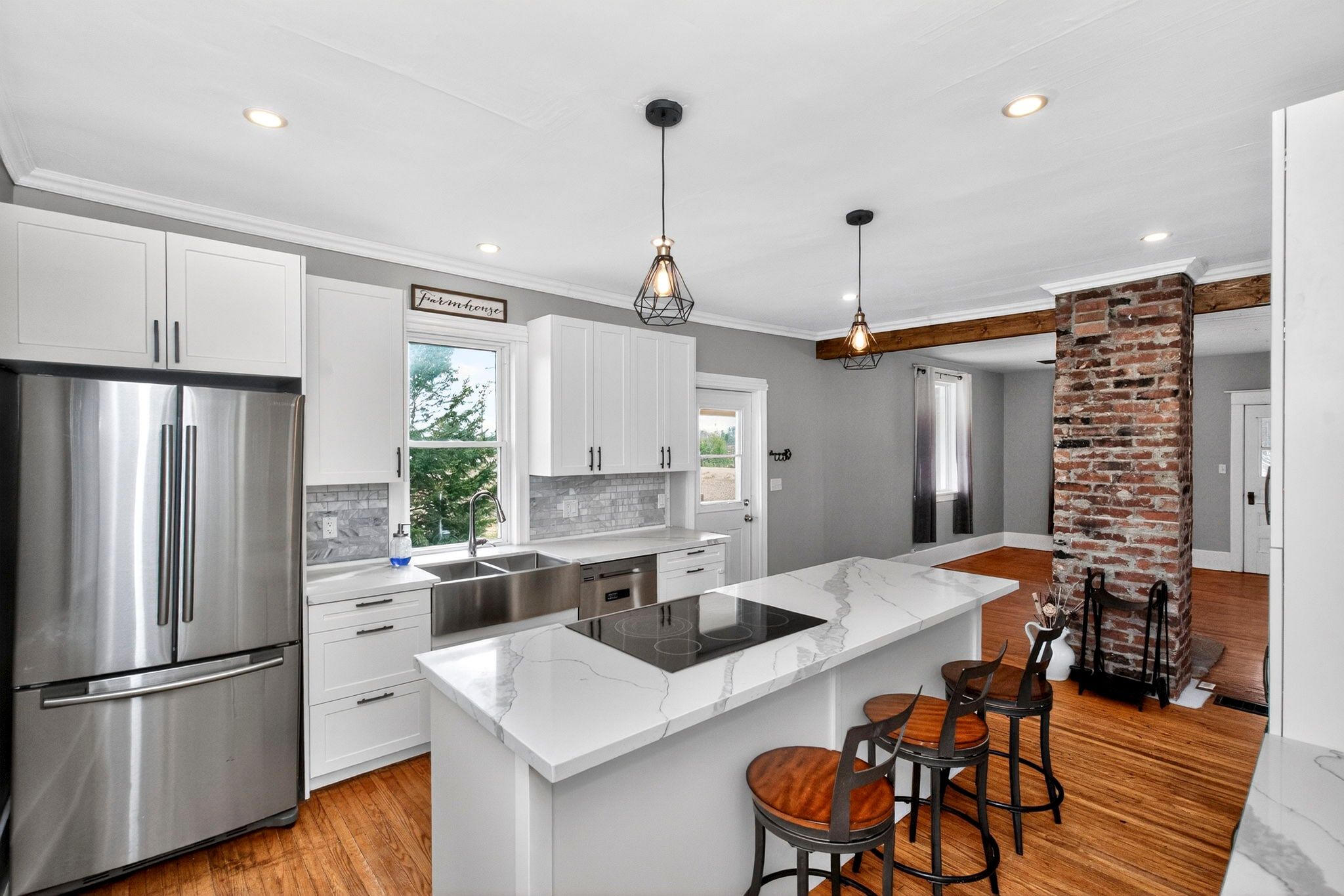 • Thoughtfully updated kitchen combines modern convenience with farmhouse charm.