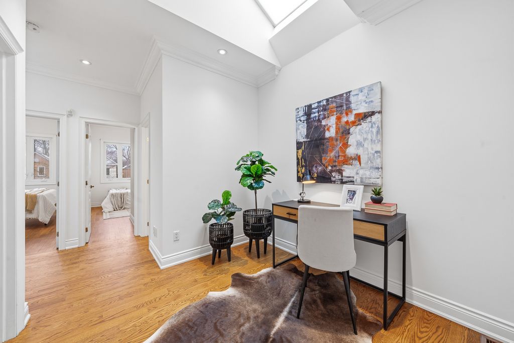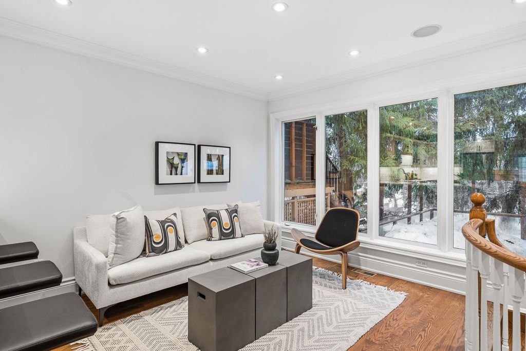 Location, location, location. Ideally situated on a quiet, low-traffic cul-de-sac in the heart of midtown, this home offers exceptional proximity to the newly opened eglinton line 5 lrt, ttc bus routes, and easy access to line 1 subway. Steps to shops, restaurants, cafes and everyday conveniences. Located within the highly regarded school district for john fisher, hodgson middle school, and north toronto or northern ci - making this an outstanding long-term family investment. This gorgeous home is set on a rare approx. 25 x 188 ft ravine lot, offering remarkable privacy and a peaceful, tree-lined backdrop rarely found in midtown. Offering 4 + 1 bedrooms and 4 bathrooms, this home provides ideal space for growing families, guests, and a home office setup. High soaring ceilings, and 3 skylights abundant natural light, and thoughtful custom millwork create a bright, airy interior. The spacious master bedroom features a spa-inspired ensuite. The property also includes a legal front pad parking. A highly valuable and convenient feature in this sought-after neighbourhood. The backyard provides a true cottage-like ambience with mature trees, expansive upper and lower decks, covered bbq area with natural gas hookup, and exceptional space for entertaining year-round. The home has been extensively updated and renovated, including a beautifully redesigned kitchen with new appliances, updated countertops, sink and fixtures. Numerous structural and mechanical improvements have been completed over the years, including roof replacement (2019), heat pump and cooling installation (2024), extensive replaced drainage system incl. Backwater valve (2024), basement bathroom renovation, flooring refinishing/replacement, and full interior repainting. Two natural gas fireplaces add warmth and character. Beyond the front door awaits a remarkable interior that seamlessly opens to the stunning ravine backyard - delivering privacy, tranquility, and city convenience in one exceptional offering.