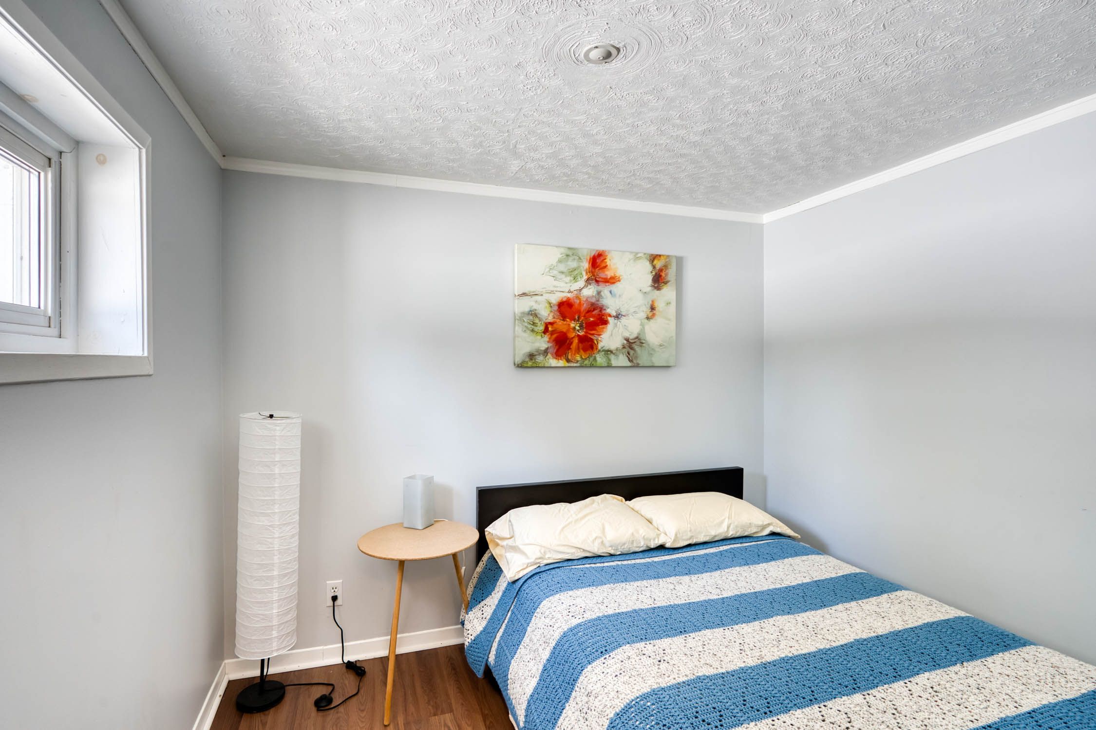 As they say in real estate location location location!! Impressive 3 bedroom 2 bathroom family home. The front deck is the perfect place to visit with your neighbours. The kitchen is loaded with oak cupboards. Quartz counters, tile floor. Tile backsplash and stainless steel appliances!! The spacious eating area next to the kitchen comes with hardwood floors. The sun filled living room has hardwood floors and loads of space for all of your furniture. The main bathroom also has quartz counters and tile floors. Three bedrooms in total and one is conveniently located on the main floor. The primary bedroom has a large window, hardwood floors and a walk in closet. The lower level features a den which could be used as an office or a guest bedroom. You will also find a family room with a wood burning fireplace and full wall of closets for extra storage. A three piece bathroom conveniently located in the lower level. The over sized single garage has room for extra storage or the space to allow a work shop for your special hobbies and projects. For the green thumb in the family there are flower beds in the front, side and back of the house. There is also room for your garden + a patio area for your bbq and a garden shed for your extras!! A beautiful corner lot complete with a picket fence!!! A quality home on a quality street!!