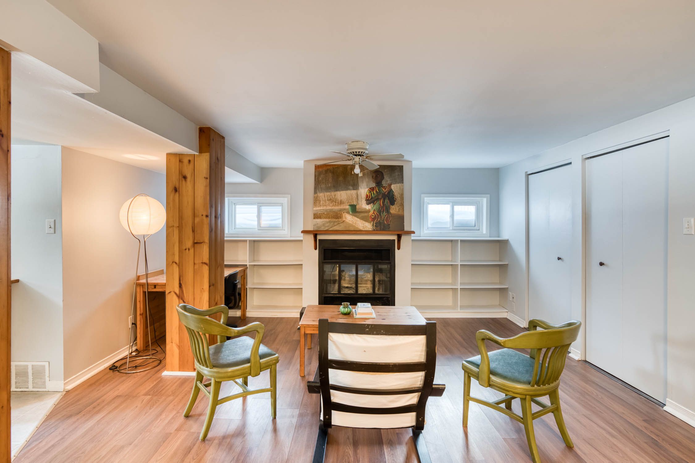 • Versatile lower level den, family room with wood-burning fireplace, and extra storage.