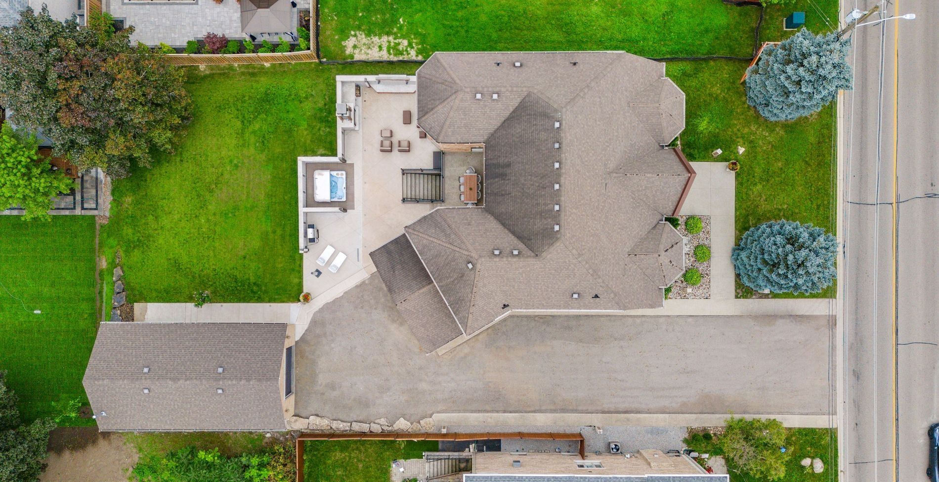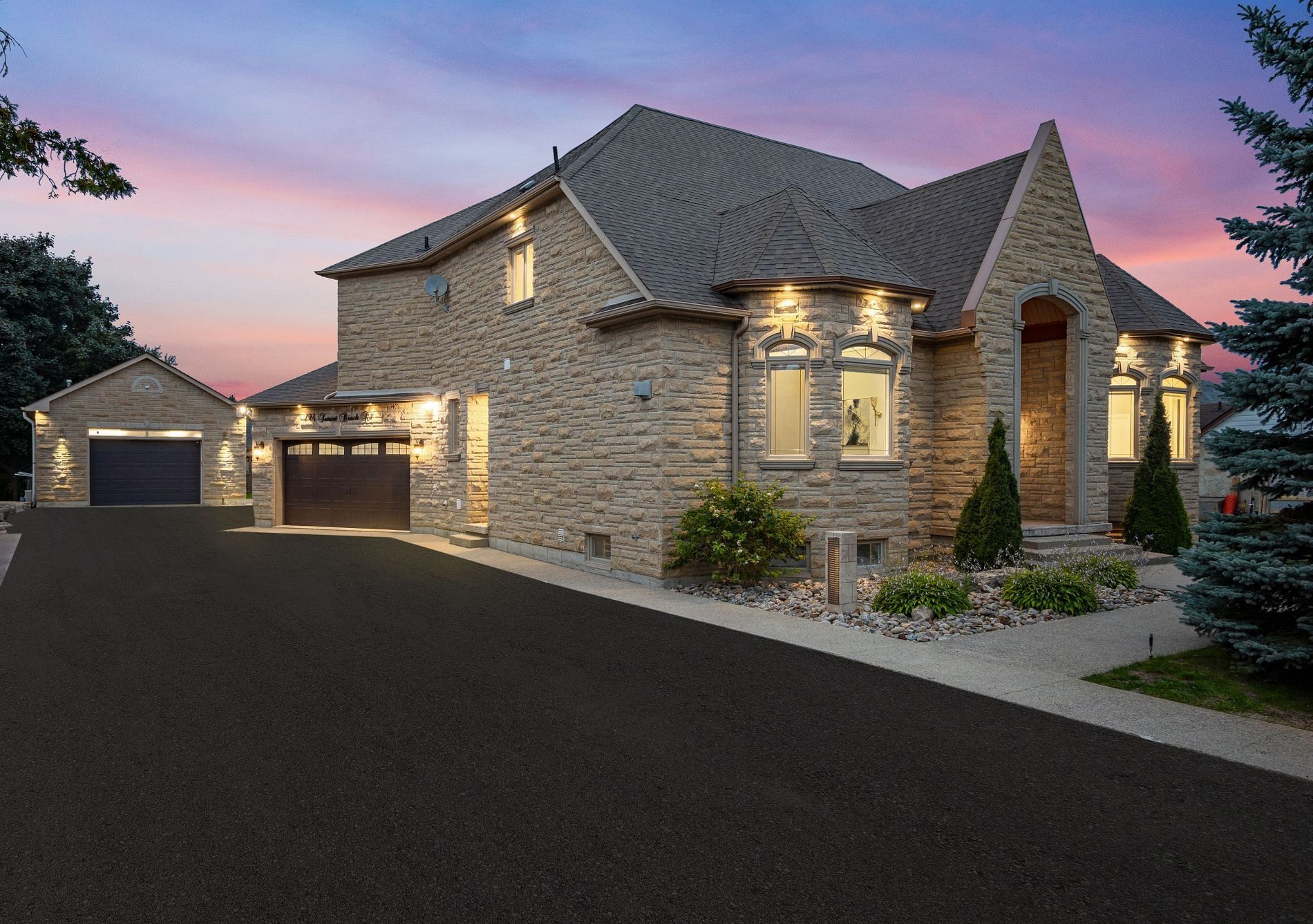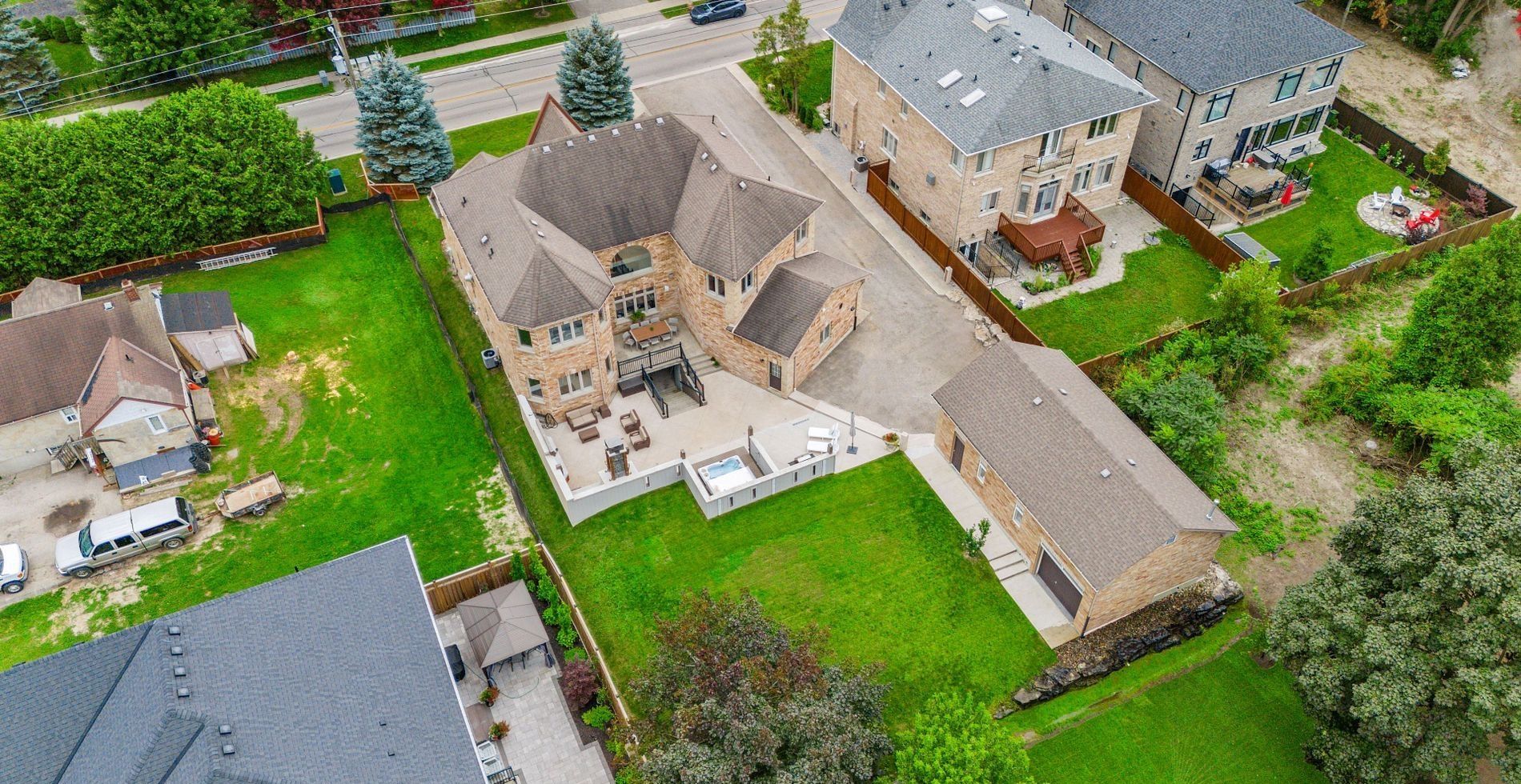A true one-of-a-kind custom-built masterpiece residence that seamlessly blends luxury, comfort, and versatility. This home features 4 spacious bedrooms, including two primary suites-one on the main floor for convenience and another on the upper level for added privacy-ideal for multigenerational living or hosting guests. At its heart, a beautifully appointed kitchen showcases stainless steel appliances, refined finishes, and an open-concept design perfect for entertaining. Enjoy a private in-home theatre for a true cinematic experience, while the lower level offers a separate-entrance office-ideal for remote work or a home-based business. Step outside toa stunning backyard oasis complete with a custom stone fireplace, an outdoor tv, and a private hot tub retreat-perfect for relaxing and entertaining under the stars. Ideal for car enthusiasts, the main garage offers a built in car hoist along with an extremely rare fully detached separate structure equipped as a workshop-an ideal space for trades, hobbies, or creative projects. An extremely rare offering with numerous extensive upgrades-truly a must-see. Luxury living at its finest.