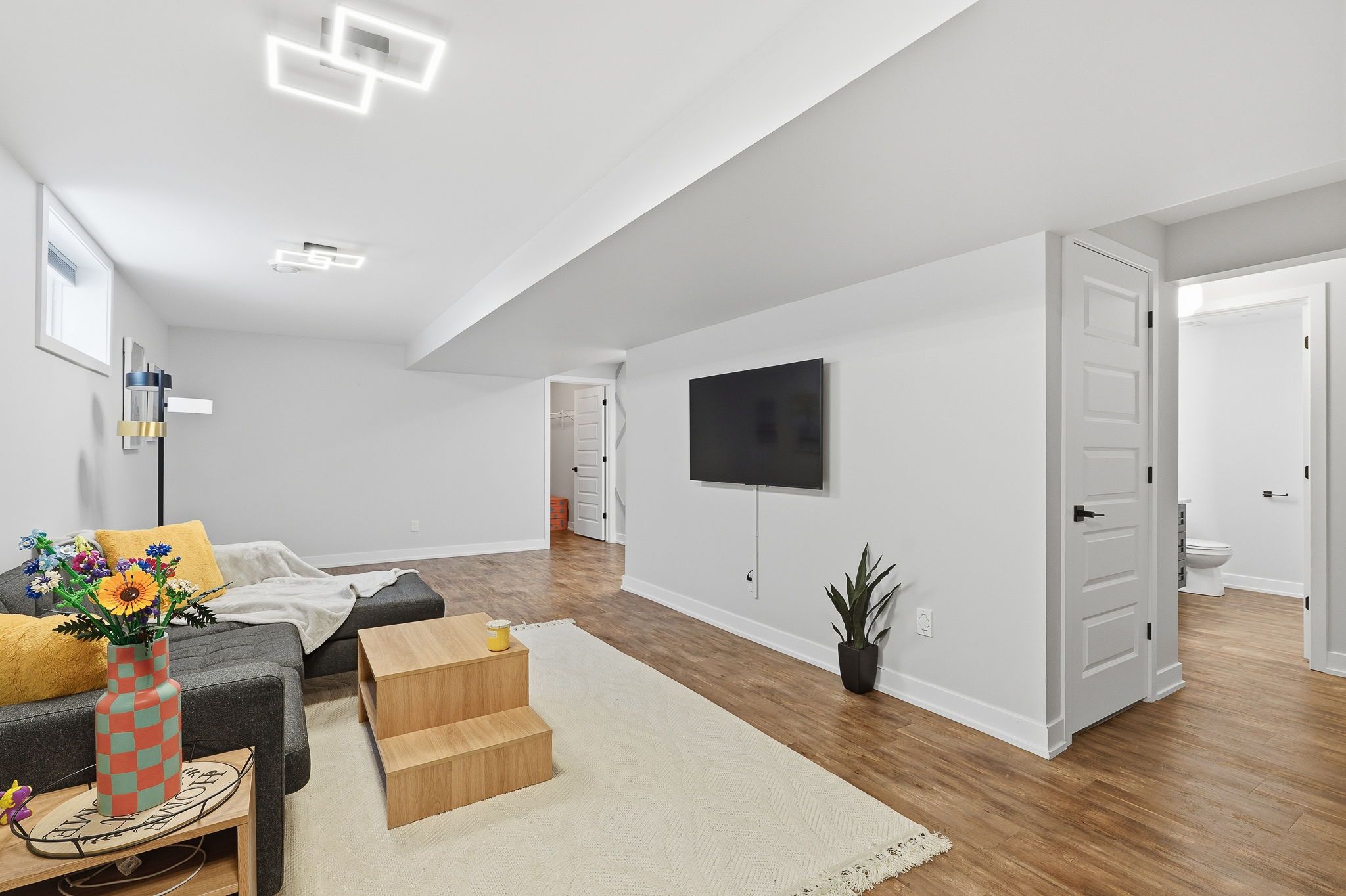 • Fully finished basement with extra bedroom, recreational space, and storage.
