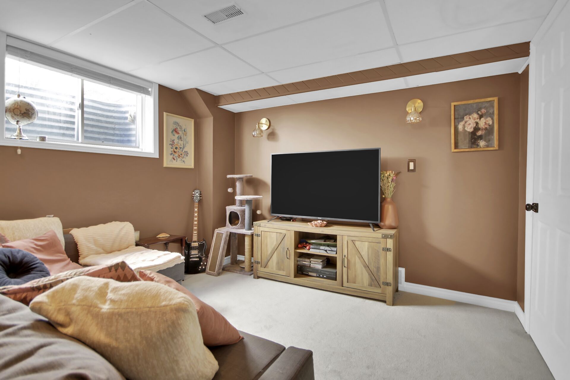 Welcome to 294 turnstone court in the heart of orléans, offering a spacious and bright main floor layout perfect for everyday living and entertaining, a welcoming foyer with ceramic tile flooring and convenient main floor powder room with vanity, toilet and window, hardwood flooring throughout the main level, a sun-filled dining room open to the main living space with accent wall and patio door leading to a fully fenced backyard complete with deck, garden and mature trees for added privacy, a sunken living room featuring a cozy wood-burning fireplace and the perfect place to unwind after a long day, a functional kitchen with ample cabinetry and counter space and stainless steel appliances, the second level features laminate flooring throughout with a generously sized primary bedroom offering ample closet space and large window along with two additional well-sized bedrooms with plenty of closet space, the main bathroom offers a tub shower with ceramic surround, vanity and toilet, the finished basement offers an additional bedroom with ensuite bathroom, a spacious laundry room large enough to accommodate a hobby area, and a utility room housing the natural gas furnace and hot water tank with ample storage, plus new side and back roof (2024), all ideally located close to parks, schools, shopping and transit.