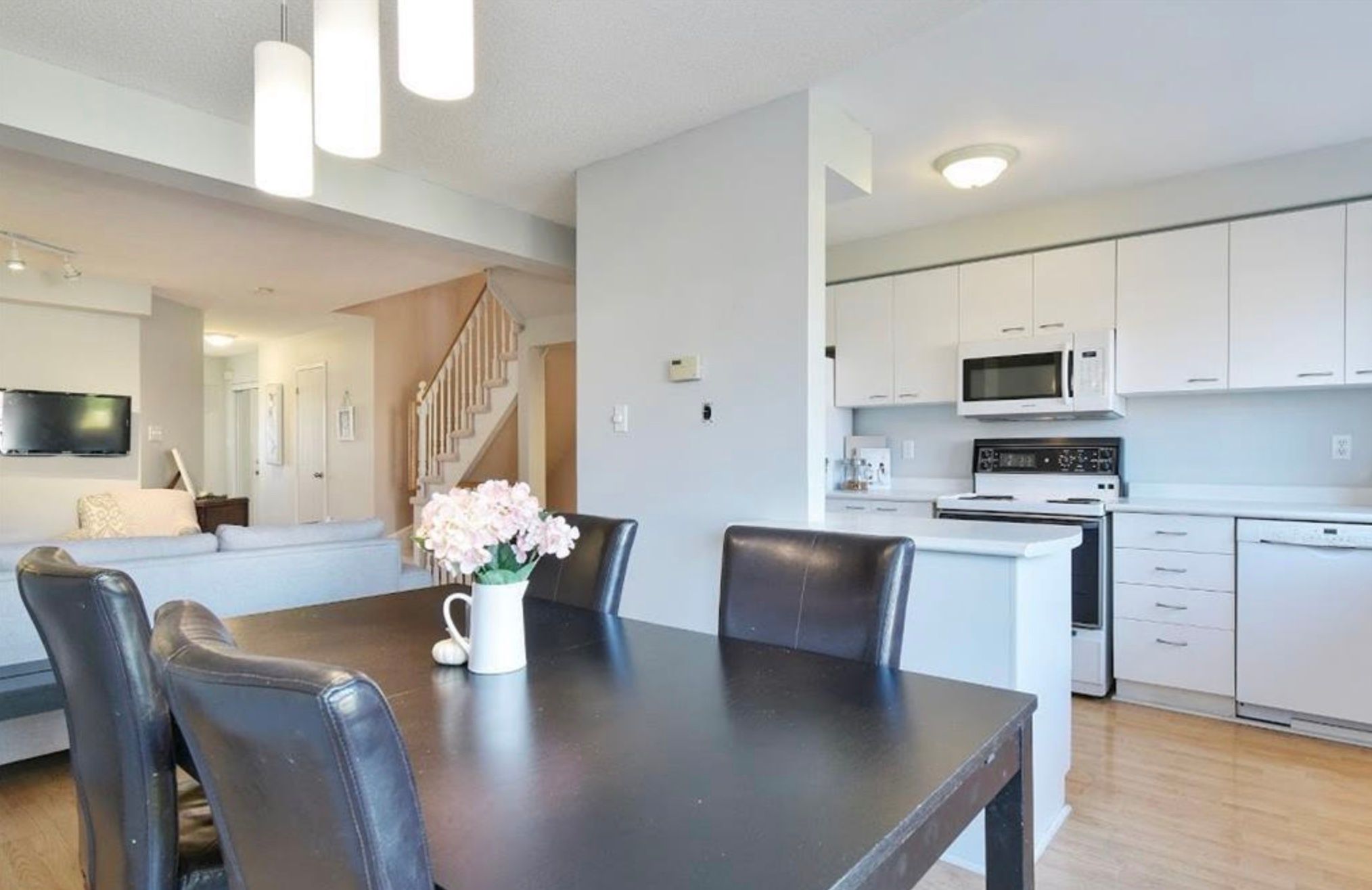 *pet friendly lease for $3047* 3 bed, 2 full baths on bedroom level plus a powder room on ground, this won't last! Over 2000 sqft of total space, 2 parking spots plus visitor parking. Large master bedroom with ensuite, open concept layout, gas fireplace, garage with inside access,and backyard that opens onto green space. Private laneway means almost no traffic, perfect for families with kids. Tenant pays forhydro/gas/water. Applications must include rental application form, letter of employment, ids, credit score & report. Book your showing today!
