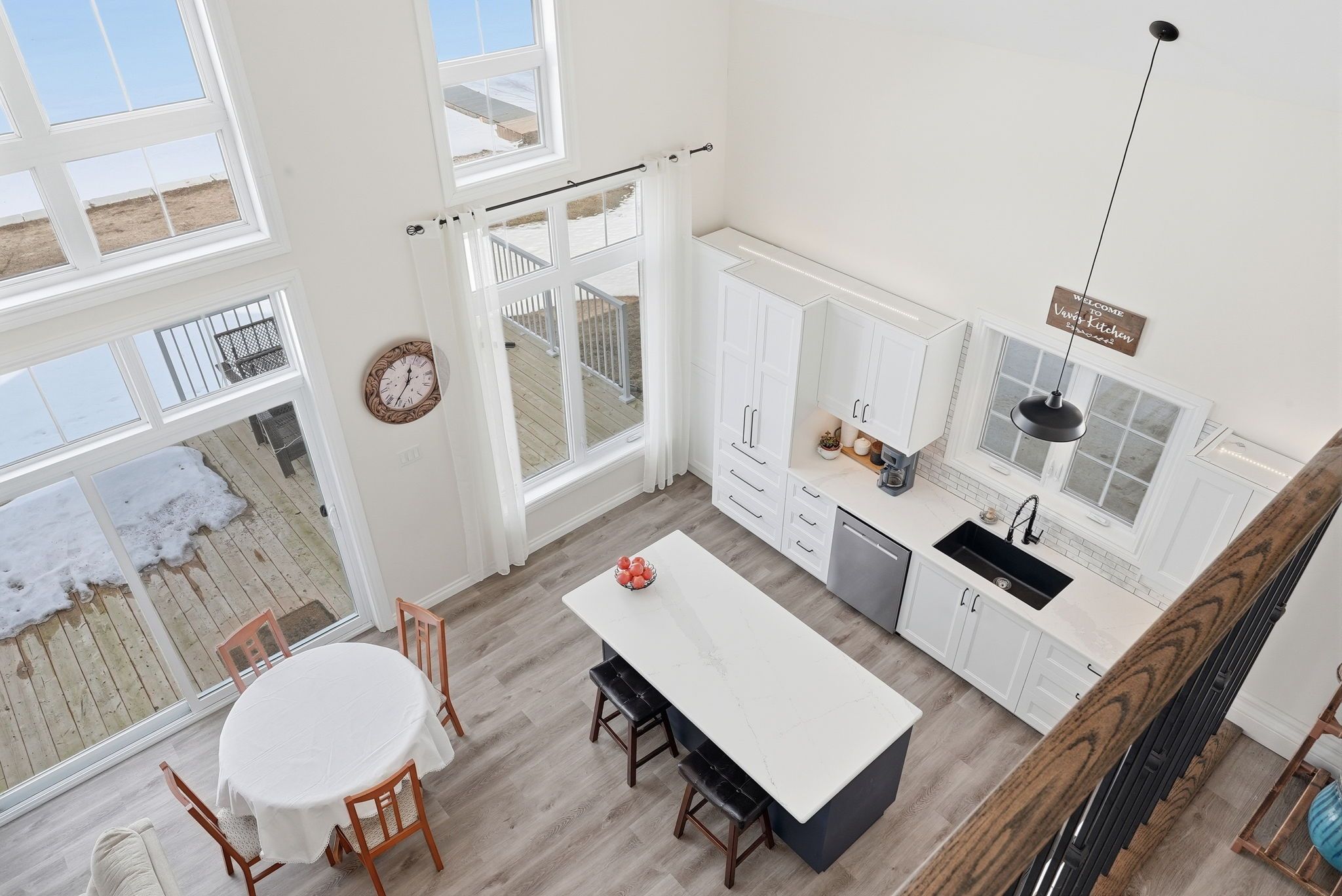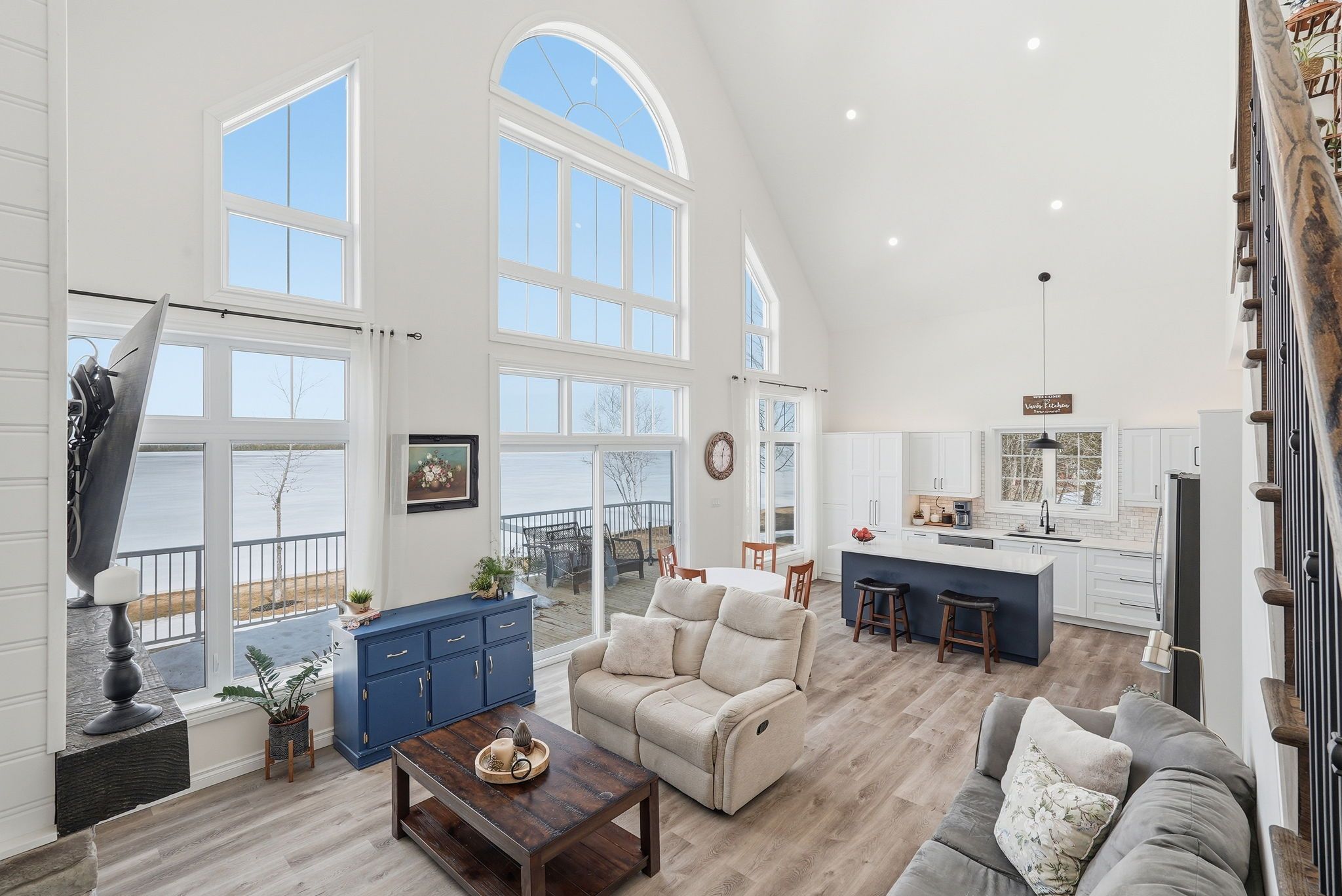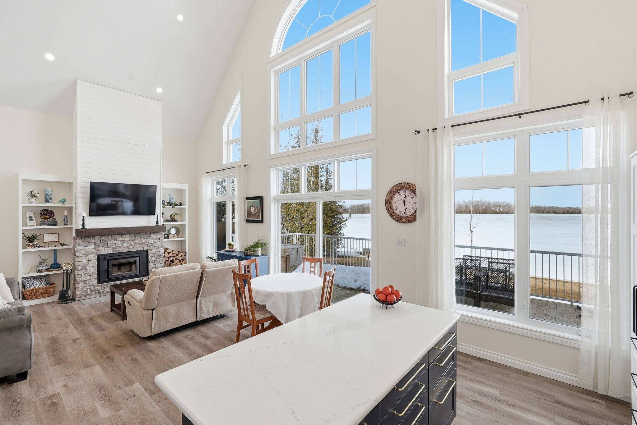 • Stunning wall of windows offers breathtaking lake views and natural light.
