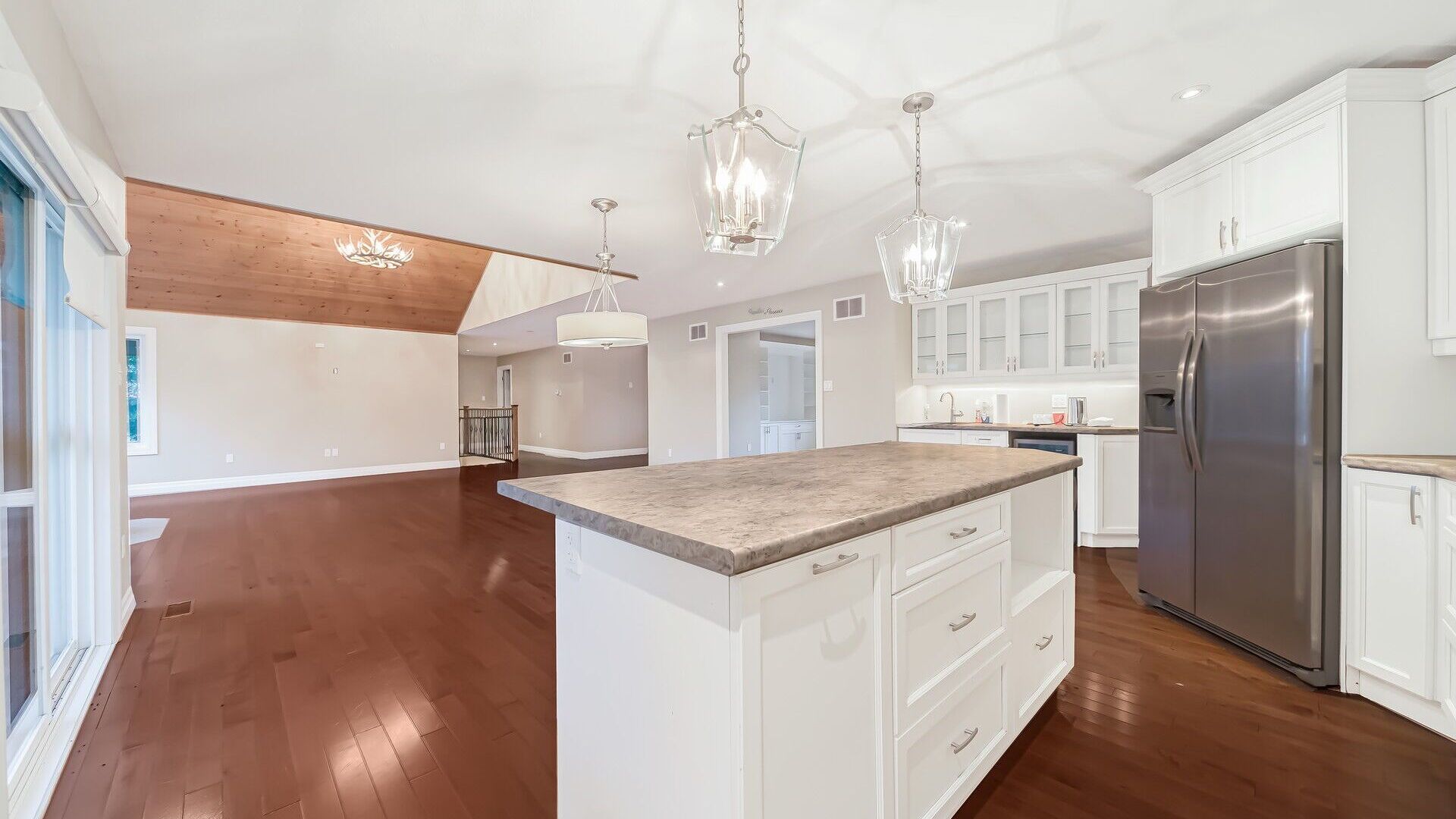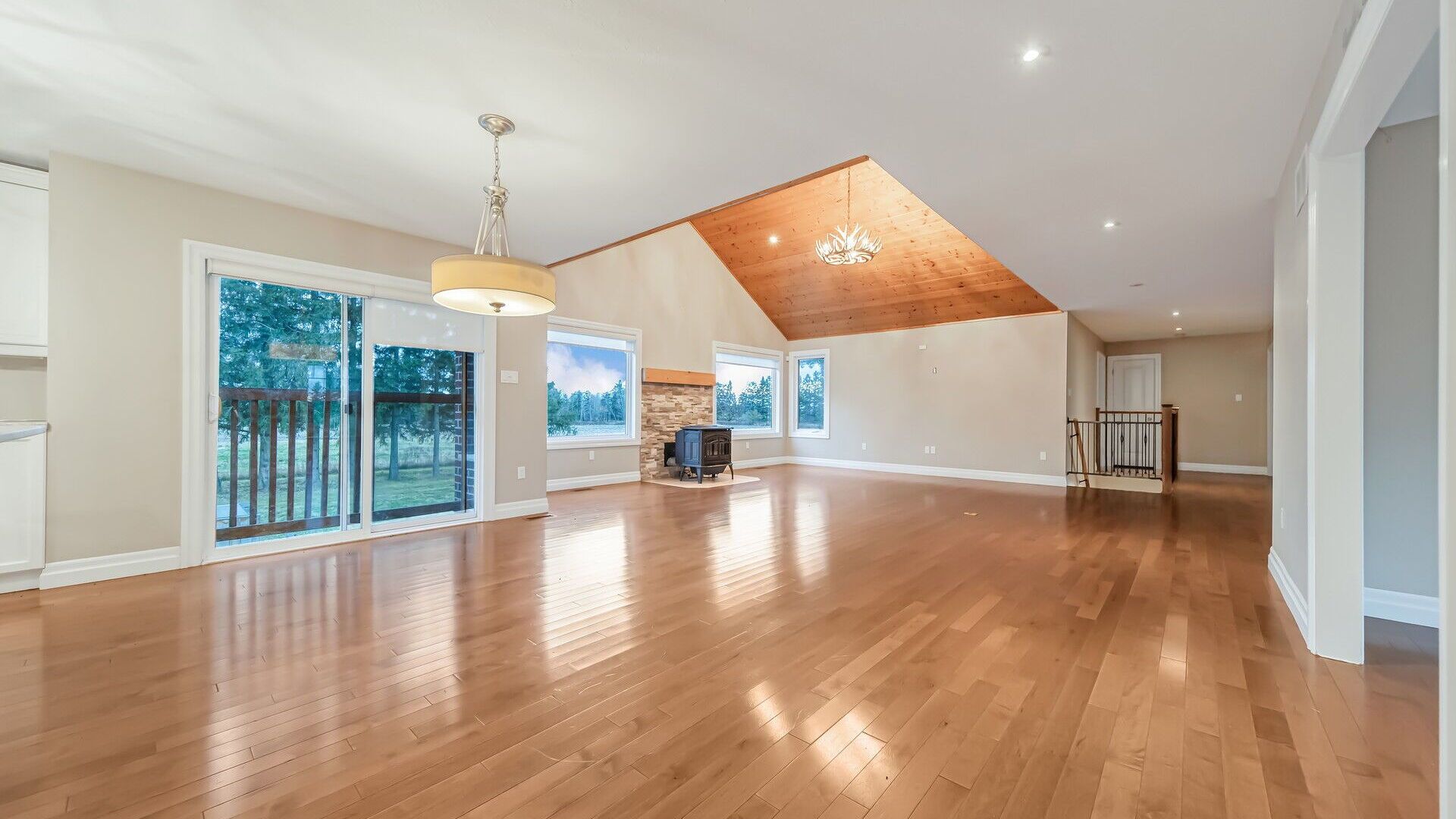 • Bright open living areas with vaulted ceilings and large windows.