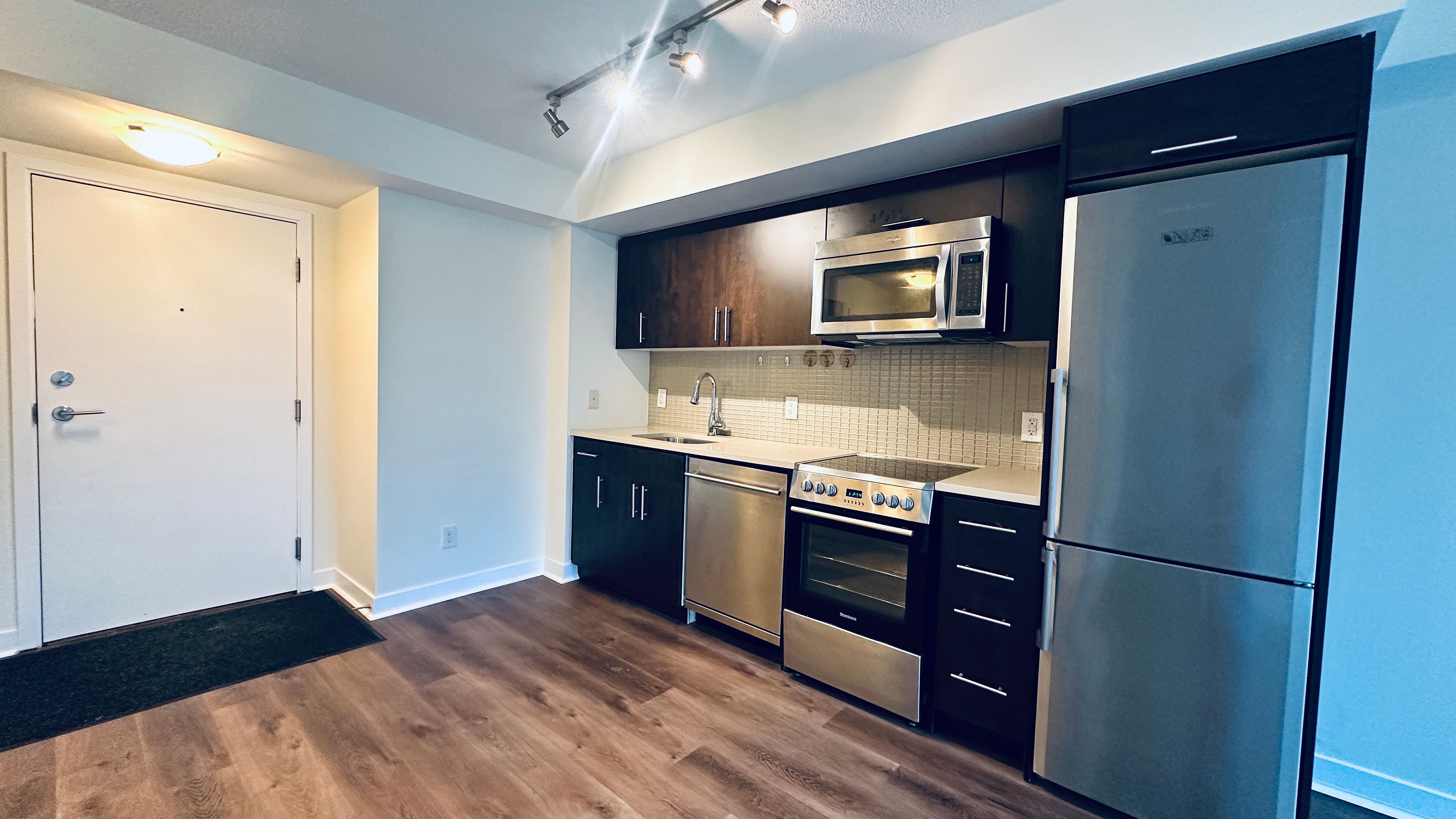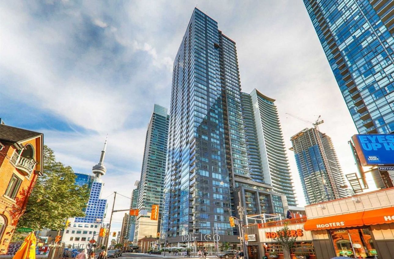 Welcome to the pinnacle on adelaide, perfectly situated in the heart of downtown toronto! This beautifully updated suite features a modern open-concept kitchen with quartz countertops and refaced cabinetry, seamlessly flowing into a bright living space with stunning unobstructed city views. The spacious bedroom and efficient layout offer both comfort and functionality. Freshly painted throughout and upgraded with new laminate flooring, this unit is truly move-in ready. Residents enjoy premium amenities including a 24-hour concierge, indoor pool, fully equipped gym. Just steps to the financial district, world-class dining, shopping, entertainment, major sports venues, the university of toronto, and ttc transit. Sauna, party room, rooftop terrace with garden, visitor parking, and more. One locker, one parking and one bike locker included. A must-see opportunity in a prime downtown location!