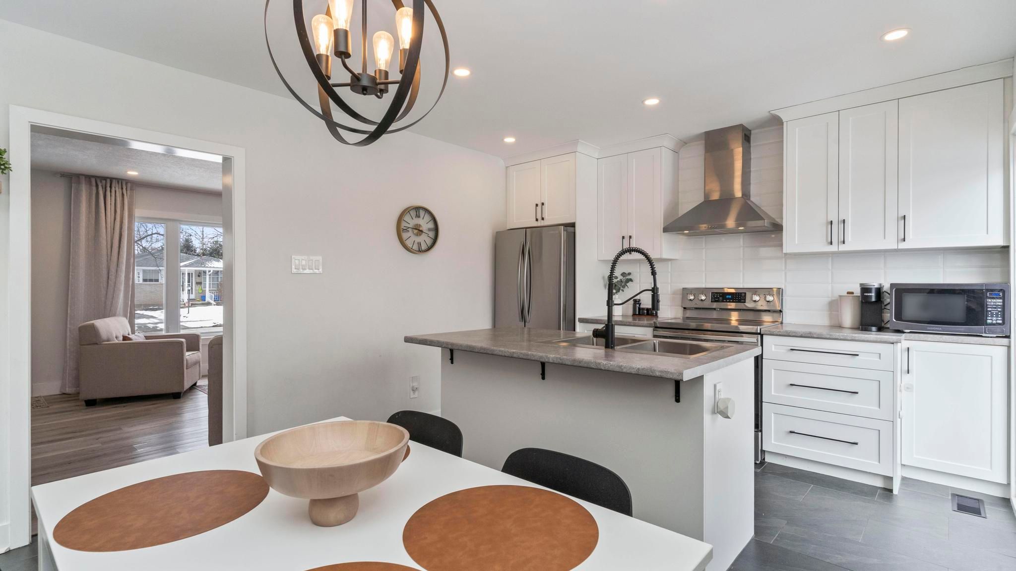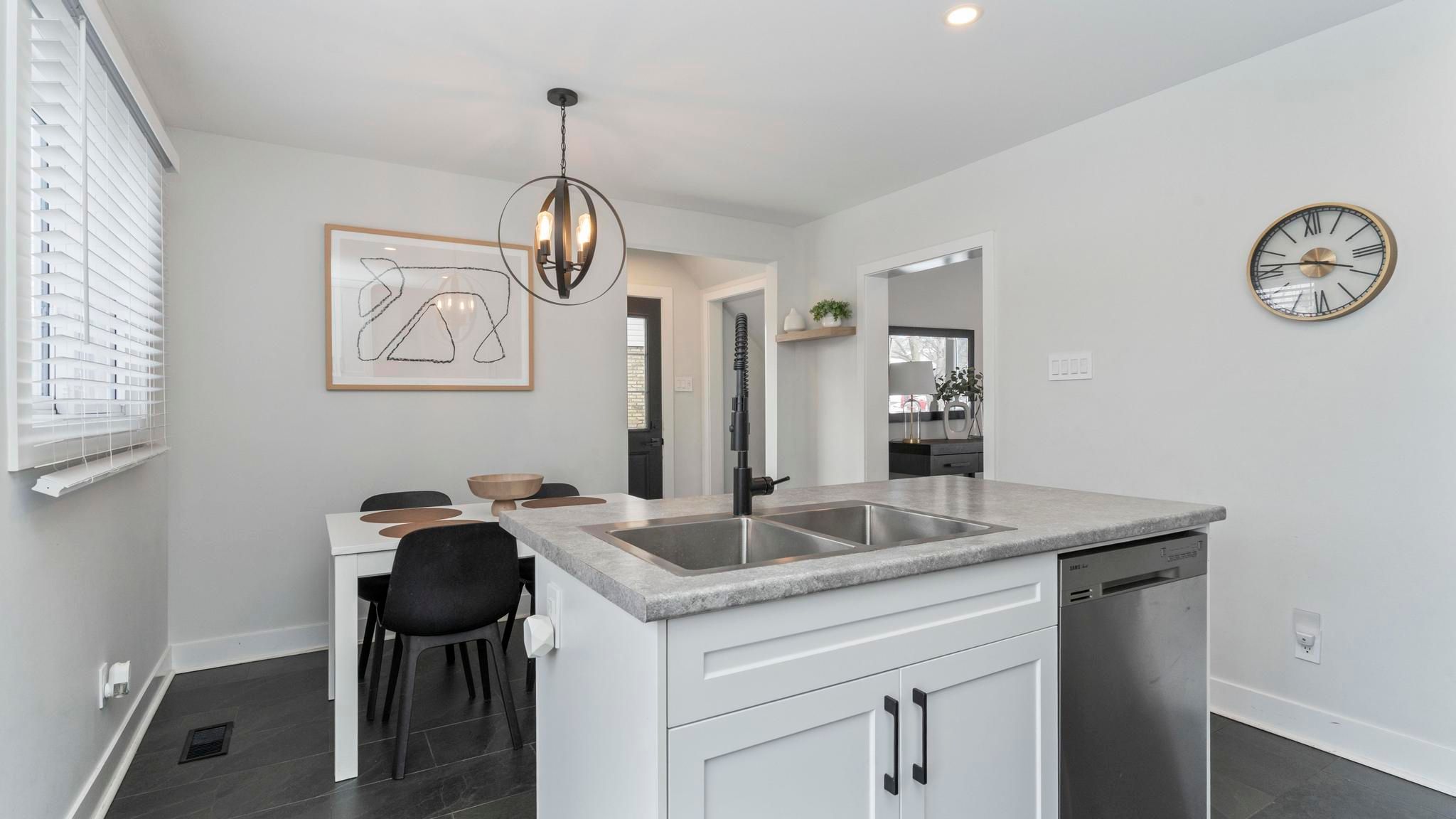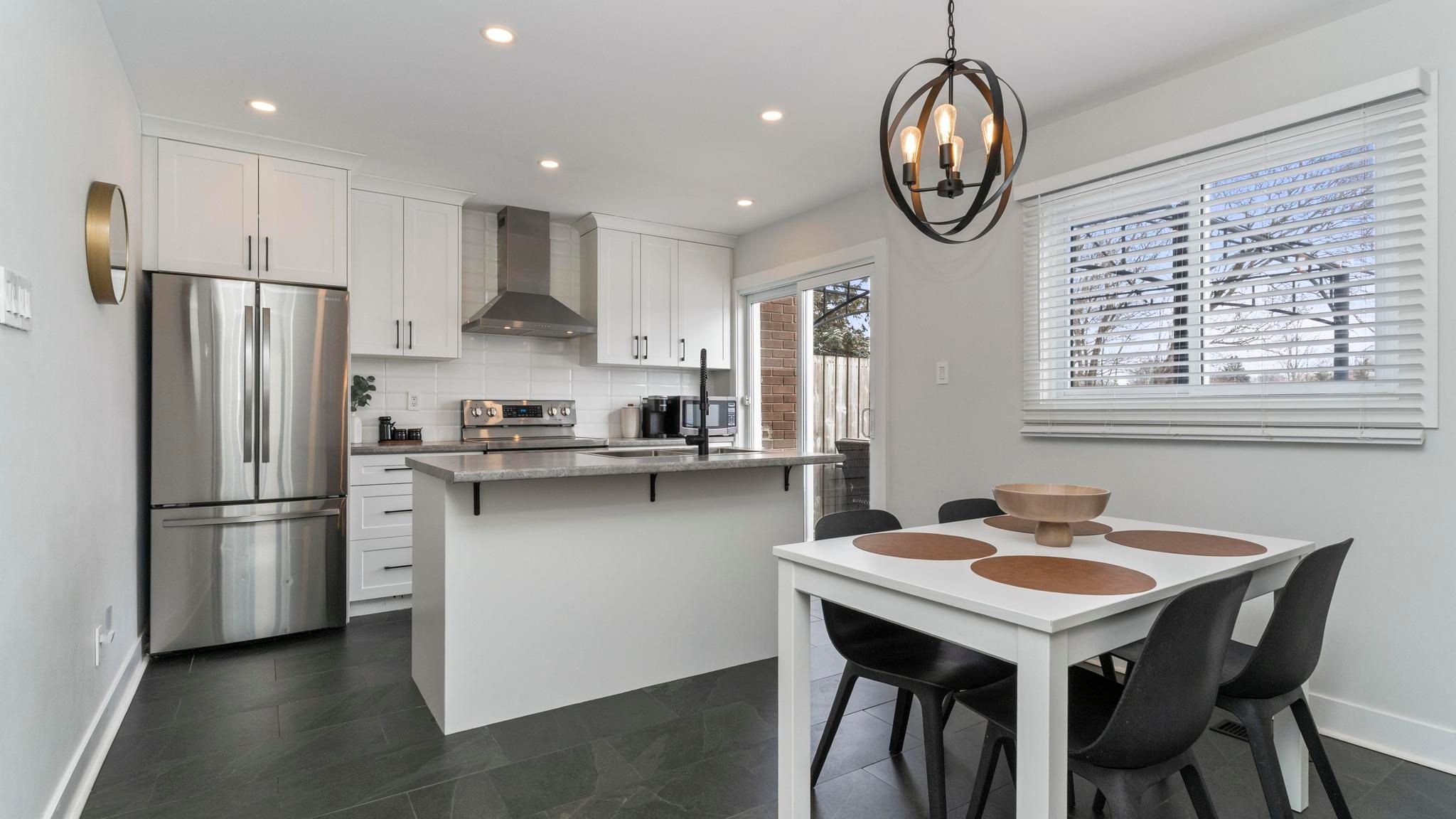 Tucked along the edge of nelson park, this recently renovated semi-detached home offers something special for those ready to take the next step into home ownership in east london. Imagine having green space in your backyard-not just something you see, but something you live beside. Morning walks, evening sunsets, and room to breathe, all just steps from your door. Inside, the main floor is thoughtfully designed for everyday living and effortless entertaining. The bright eat-in kitchen features a centre island, stainless steel appliances, and a natural gathering place for friends and family. Just beyond, step outside to your private, tree-lined backyard with ideal southern exposure-perfect for summer evenings, gardening, or simply enjoying the quiet. Upstairs, you'll find three comfortable bedrooms and a well-appointed 4-piece bath, offering flexibility for families, guests, or a dedicated home office. The lower level adds even more living space with a cozy rec-room anchored by an electric fireplace-ideal for movie nights, a play area, or a relaxing retreat. The laundry area also provides valuable storage space to keep everything organized. Whether you're buying your first home or looking for a move-in ready property in a connected, community-focused neighbourhood, this is an opportunity to put down roots beside one of east london's most loved parks.