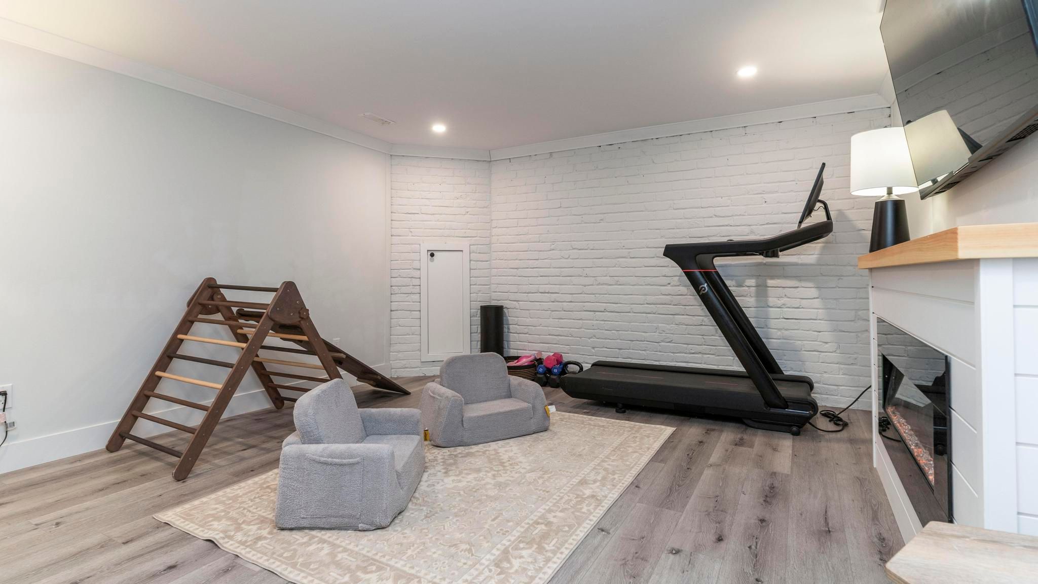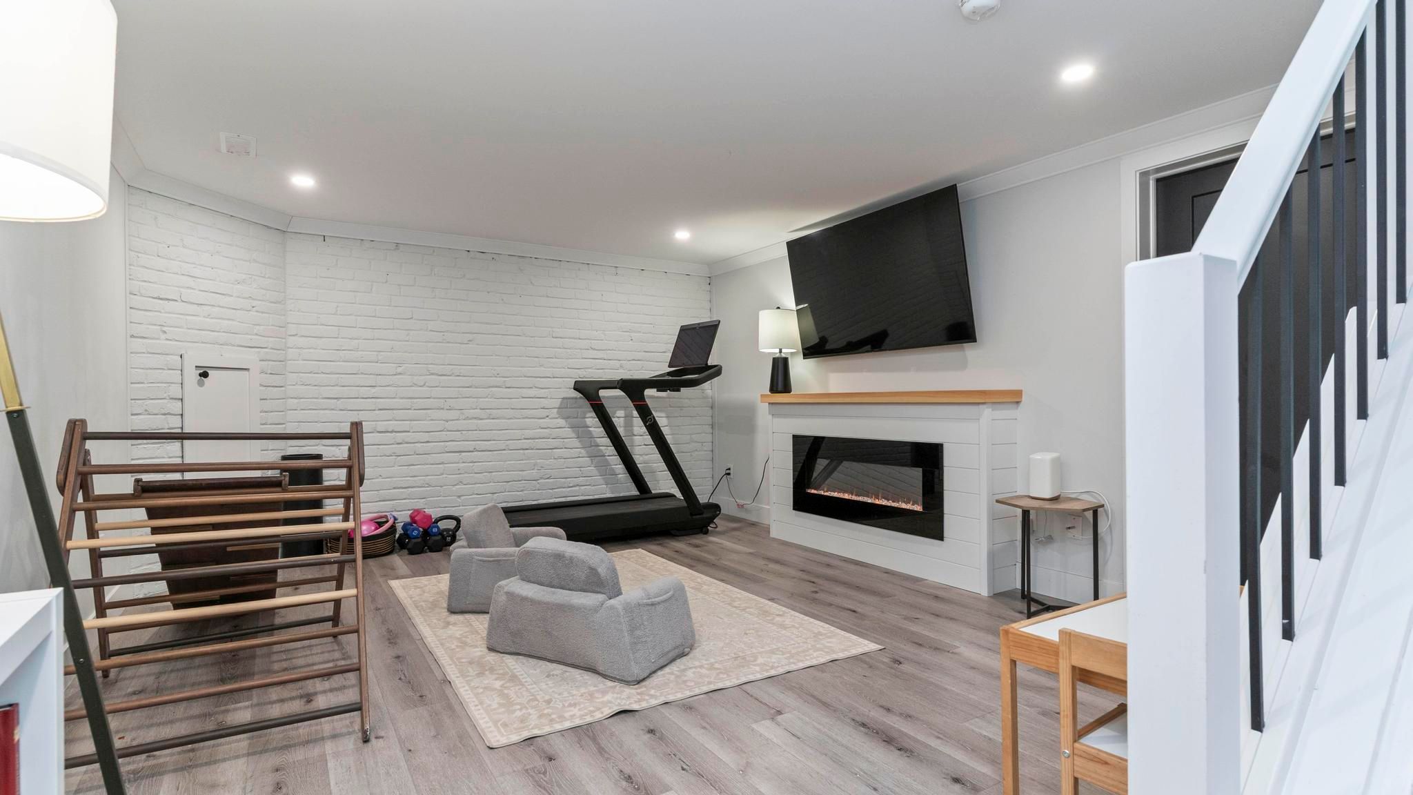 • Cozy rec-room with electric fireplace for movie nights and relaxation.