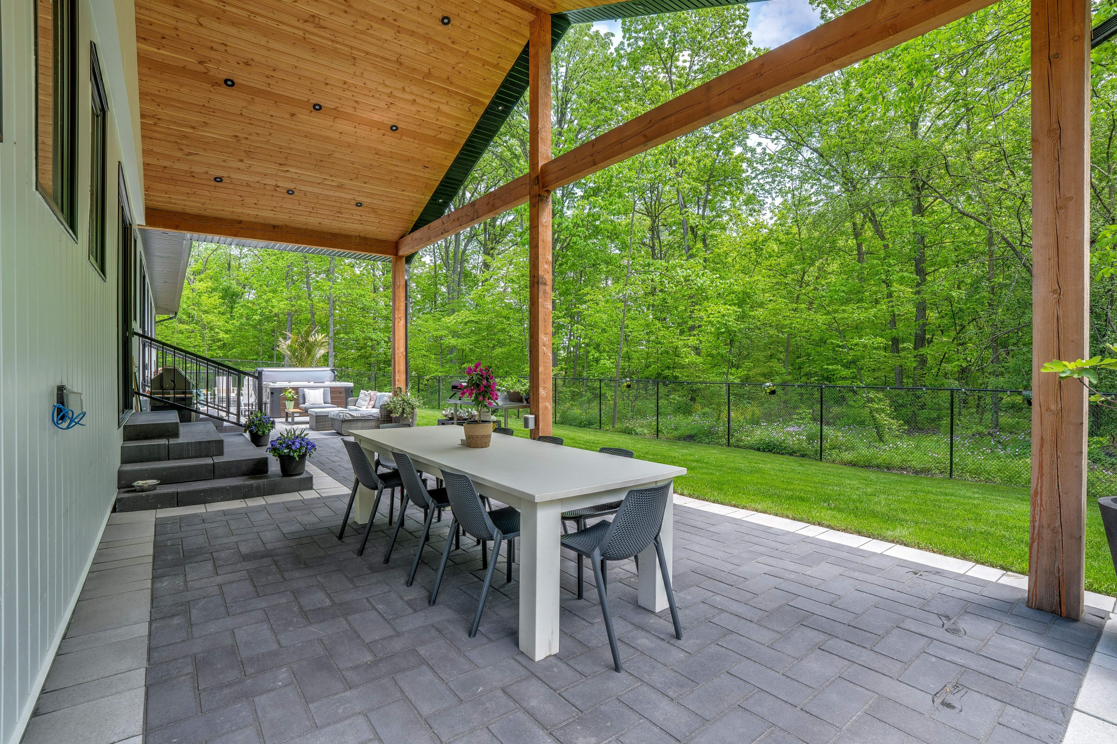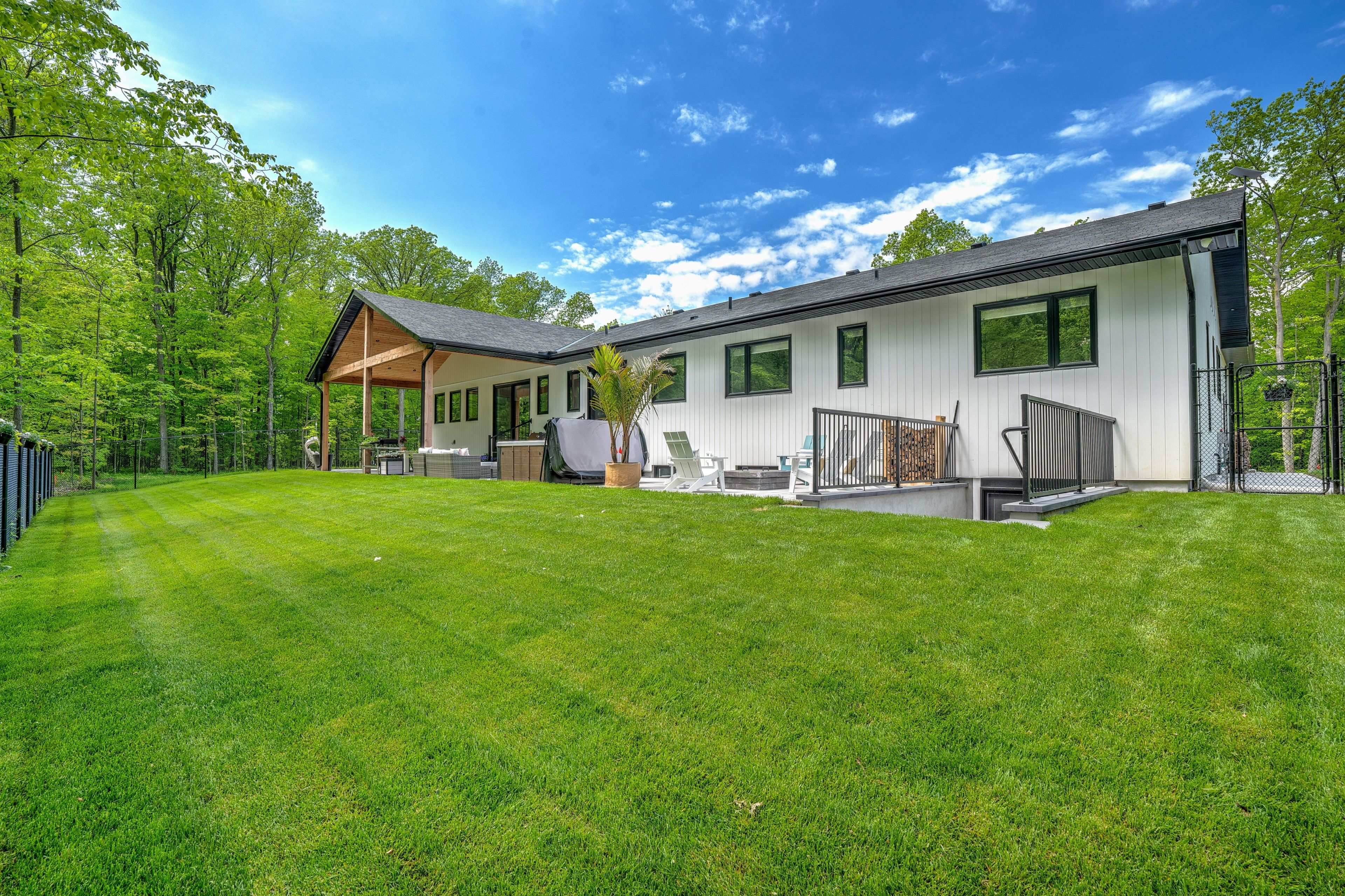 Welcome to the forest home! Live inside a painting with the changing seasons. A breathtaking custom estate nestled on 6. 39 acres of pristine, wooded landscape, offering the ultimate in privacy, serenity, and refined living. Designed as a forever home and built to exacting standards, this exceptional bungalow is a masterclass in modern elegance and timeless design. From the moment you arrive, the home's architectural symmetry impresses with two double garages flanking the stately entrance for a dramatic and balanced curb appeal. Inside, approximately 3,250 sq. Ft. Of thoughtfully curated main floor living unfolds in an airy, open-concept layout. Inspired by scandinavian simplicity and elevated farmhouse style, every space feels grounded in nature yet luxuriously appointed. Impeccable finishes and high-end upgrades are found throughout; too numerous to list here, but detailed in the attached brochure. Every detail has been carefully considered: from the gourmet kitchen, walk in pantry, coffee bar, every bathroom having a different theme with imported tiles and the rustic wood stove that boasts the most amazing roaring fires! Outdoor living is equally spectacular. Enjoy alfresco dining on the covered patio, unwind in the outdoor lounge, or soak in the hot tub under the stars and an entertainers dream and a private retreat in one. The expansive walk-out basement with separate entrance offers limitless potential for an in-law suite, studio, or bespoke entertaining space. The long driveway accommodates guests with ease, while the brand-new 40 ft well and septic system provide long-term peace of mind. Siding onto the 40 mile creek, this estate feels worlds away yet is just 6 minutes from charming downtown grimsby and 30 minutes from the renowned wineries, boutiques, and fine dining of niagara-on-the-lake and niagara falls. With easy access to hamilton and burlington, this location perfectly balances seclusion and convenience.