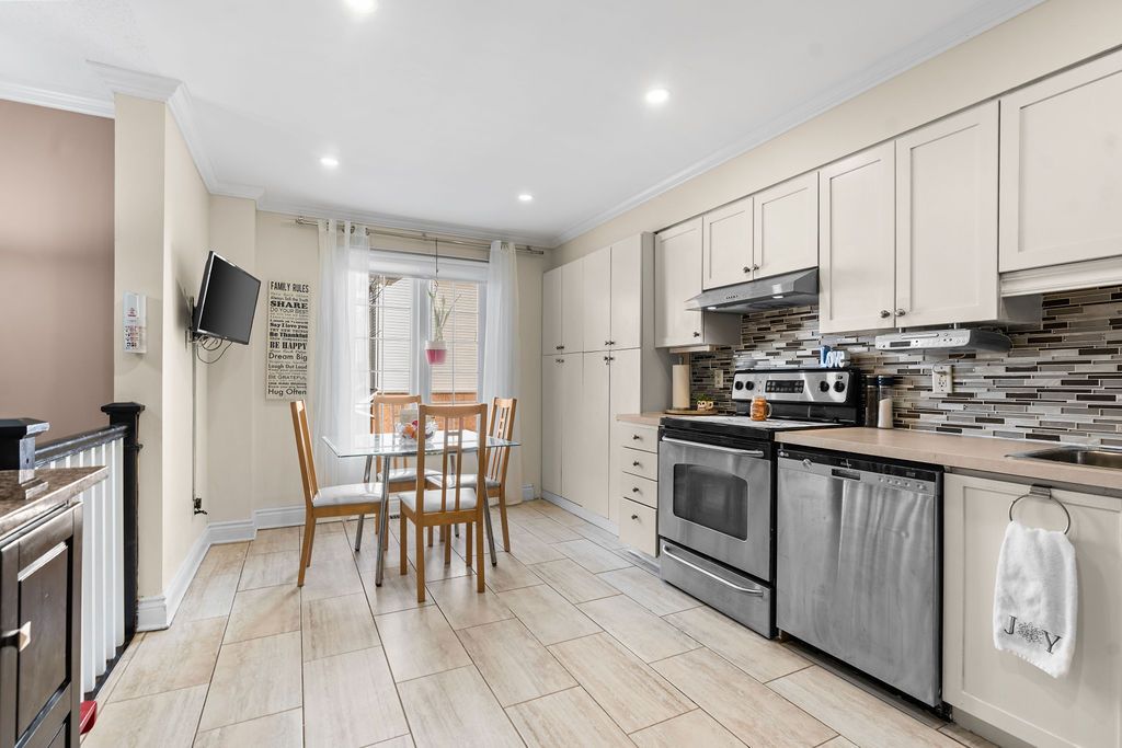 • Bright eat-in kitchen with ample cabinetry and seamless flow to living area.