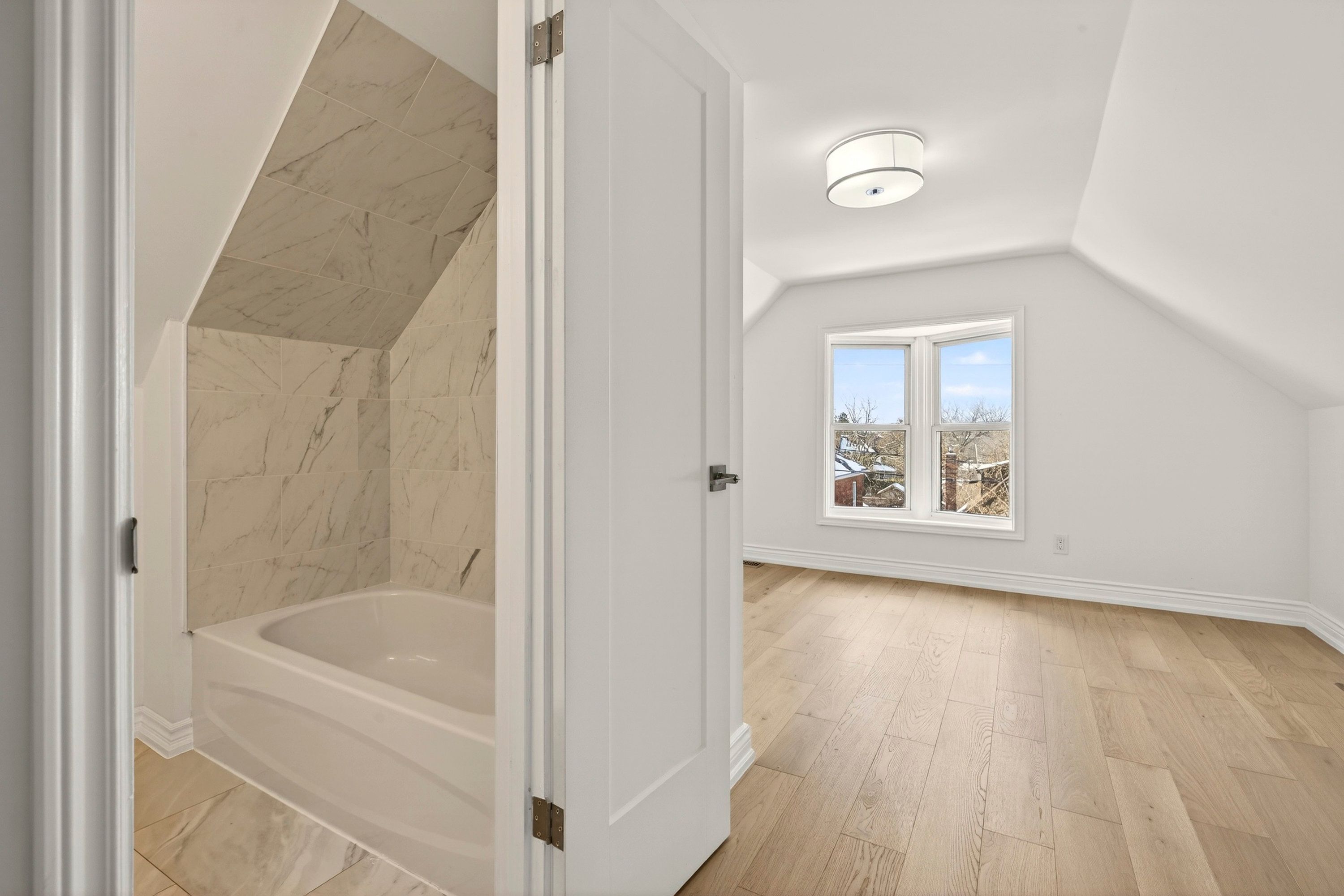 Premium locke street south location. This absolutely stunning, newly renovated multi-family home offers exceptional flexibility, including the possibility of future commercial use (buyer to verify with the city). Located in one of hamilton's most sought-after neighbourhoods, this property provides an unmatched blend of lifestyle, convenience, and long-term potential. The newly constructed front deck has been designed to maximize space for front pad parking (subject to city application and approval). Inside, the main floor features a gorgeous open-concept layout with soaring 9'3" ceilings and an abundance of natural light pouring in through oversized new windows. With two entrances to each of the three above-ground floors, plus a separate basemen entrance, this home offers tremendous versatility for multi-family living, rental income, or future mixed-use possibilities. Each above ground level also boasts its own private walk-out deck, providing outdoor space and no homes directly behind for added privacy. Beautiful new hardwood flooring runs throughout the home. This property is truly a rare offering-an exceptional opportunity for the right buyer.