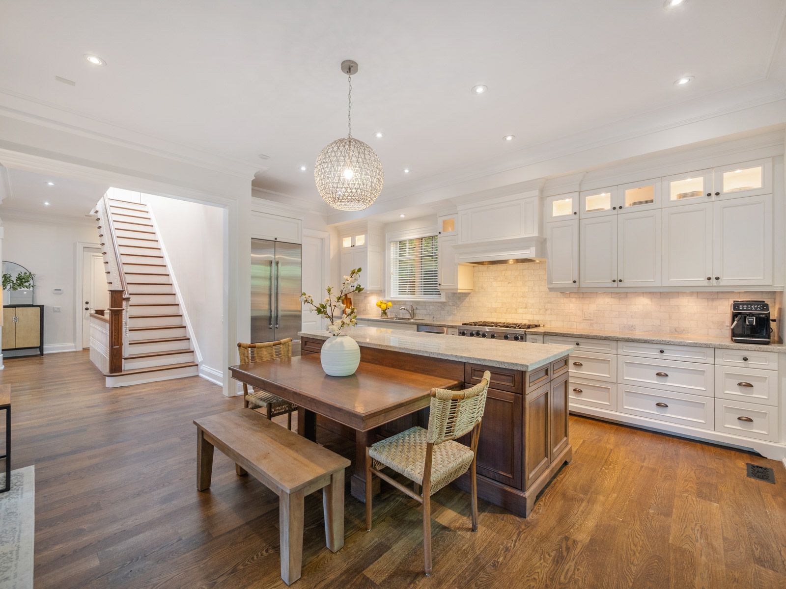 Fabulous custom build in prime old oakville steps to whole foods market, oakville go and coveted southeast oakville schools. Luxury living with high ceilings throughout over 3000 sf plus fully finished lower level. Lovely front entrance hall welcomes you to this warm family home. Front office/den is handy for work from home or school homework. Large custom kitchen with centre island, granite counters, walk-in pantry, high-end appliances and features a walk-in pantry & patio doors to the deck and garden. The kitchen is open to the family room with gas fireplace and large south-facing window which floods this large room with light. Spacious open plan dining room is the perfect gathering spot for family and friends. Main floor entry from 2 car garage & side entry to mud room. Beautiful open staircase to spacious second floor featuring 4 bedrooms, laundry room and 2 full bathrooms. The luxurious primary suite features hardwood floors, elegant crown moulding, a beautiful gas fireplace and sitting area. Large ensuite bathroom with marble tiling, dual sink vanity, glass shower, soaker tub and large walk-in dressing room. Three further bedrooms with excellent closet space and a family bathroom complete this floor. The lower level boasts a large recreation room with space for pingpong or billiards and a media zone. There is a 5th bedroom and a 3-piece bathroom as well as exceptional storage. The garden features a deck for barbecues and a lovely private, fenced pool-sized garden with loads of space for children to play. Just steps to shopping and oakville go station, ot community centre & pool, wallace park tennis, downtown oakville; new central, e. J. James, maple grove, oths school district. A must-see.