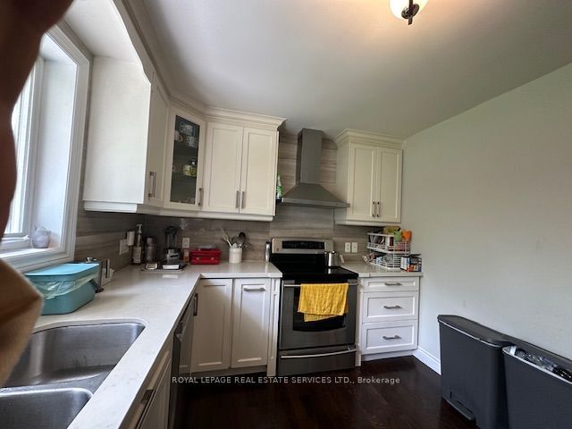 Beautifully landscaped bright & cozy 3 bedroom. Main floor for lease in a high demand area with hard wood flooringthroughout. It features a modern kitchen with stainless steel appliances, walk out to the brand new patio and the pool sizedbackyard. It has huge driveway that fits 6 cars. It is close to good schools. All amenities includes: ttc, parks, restaurant,shopping mall and more! Fridge, fan hoods, dishwasher, brand new washer & dryer, microwave, window coverings, electricallight fixtures, brand new interlock driveway and sidewalk. This main floor apt tenant pays the utility bills and 50% to bereimbursed by the landlord.