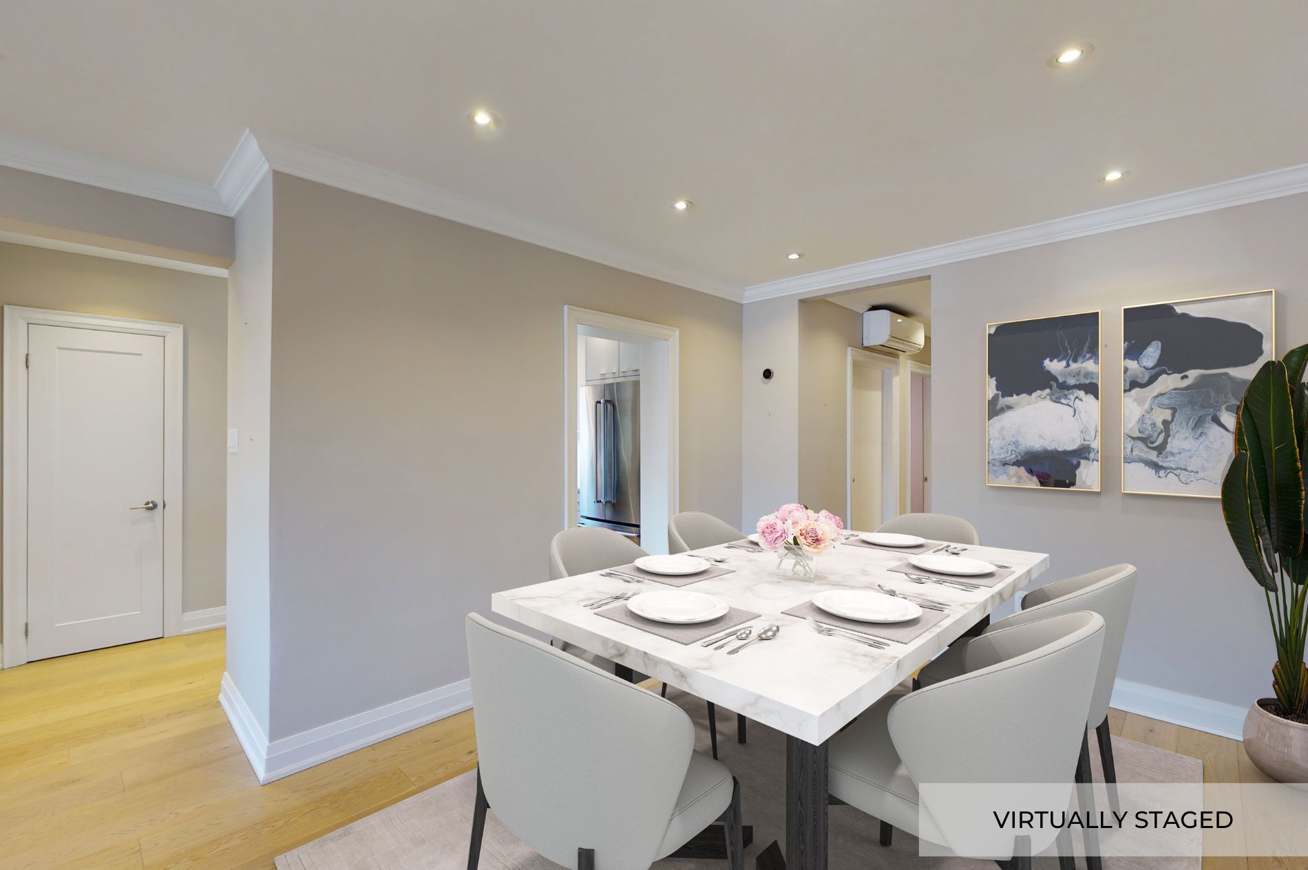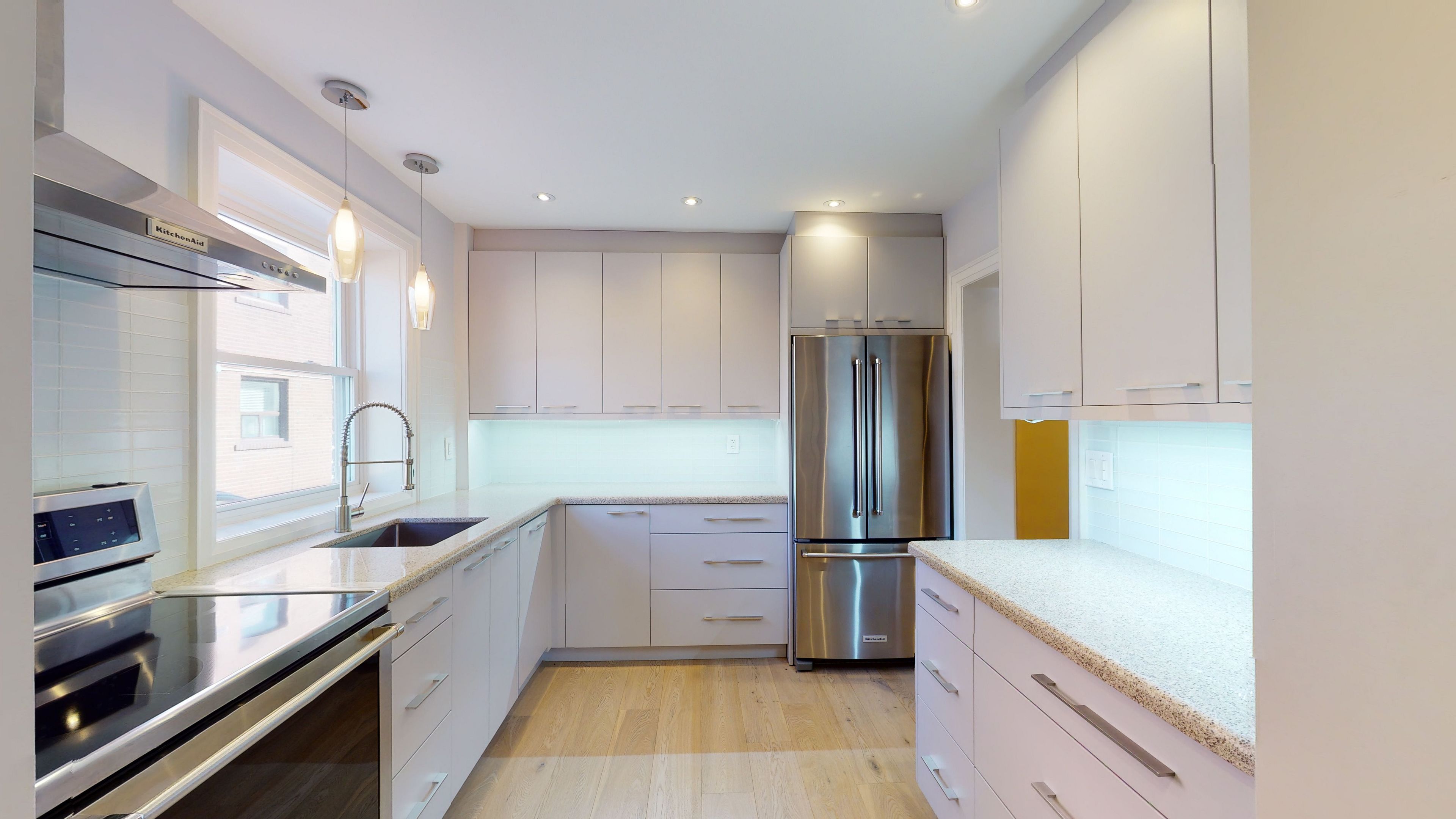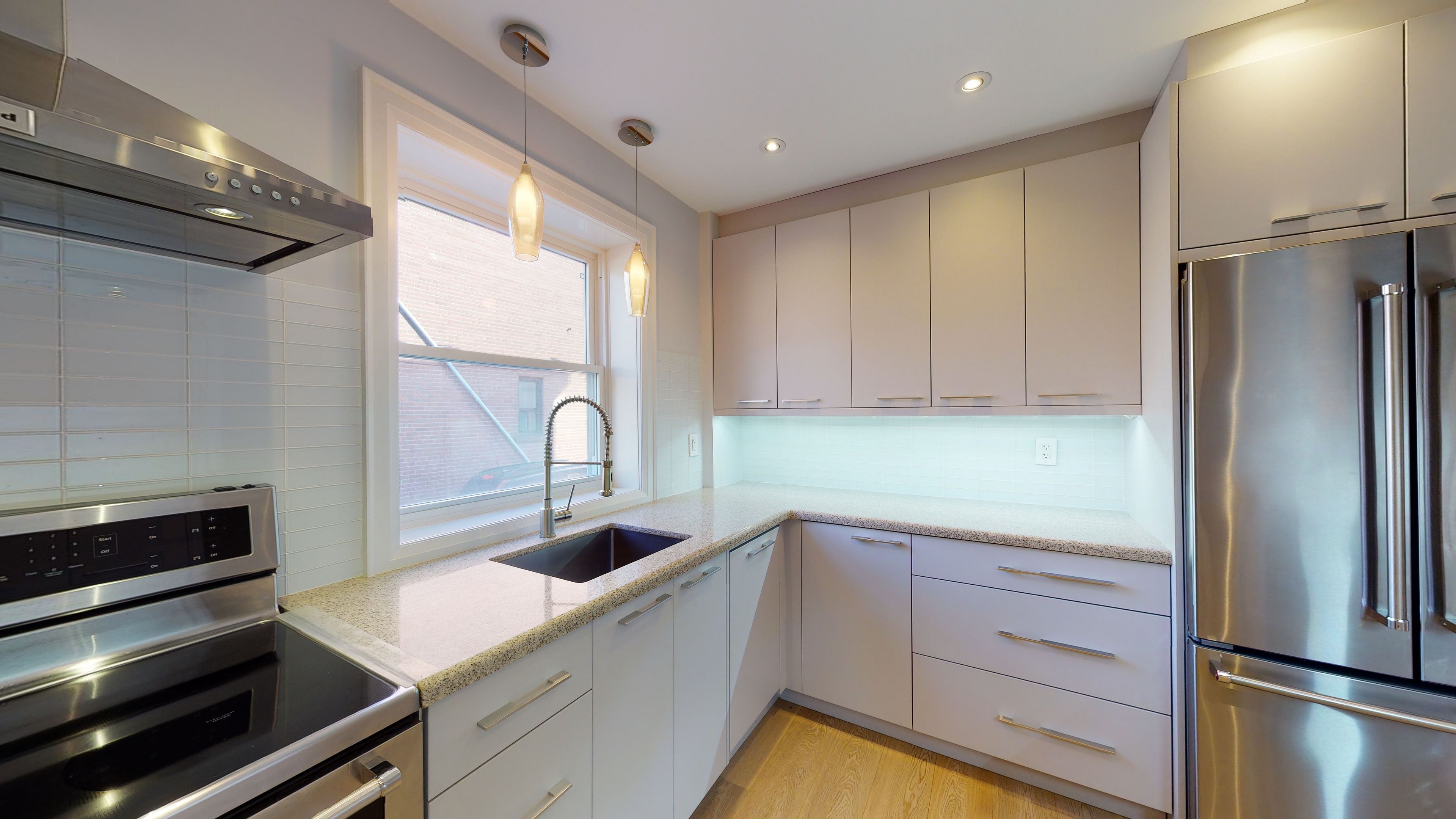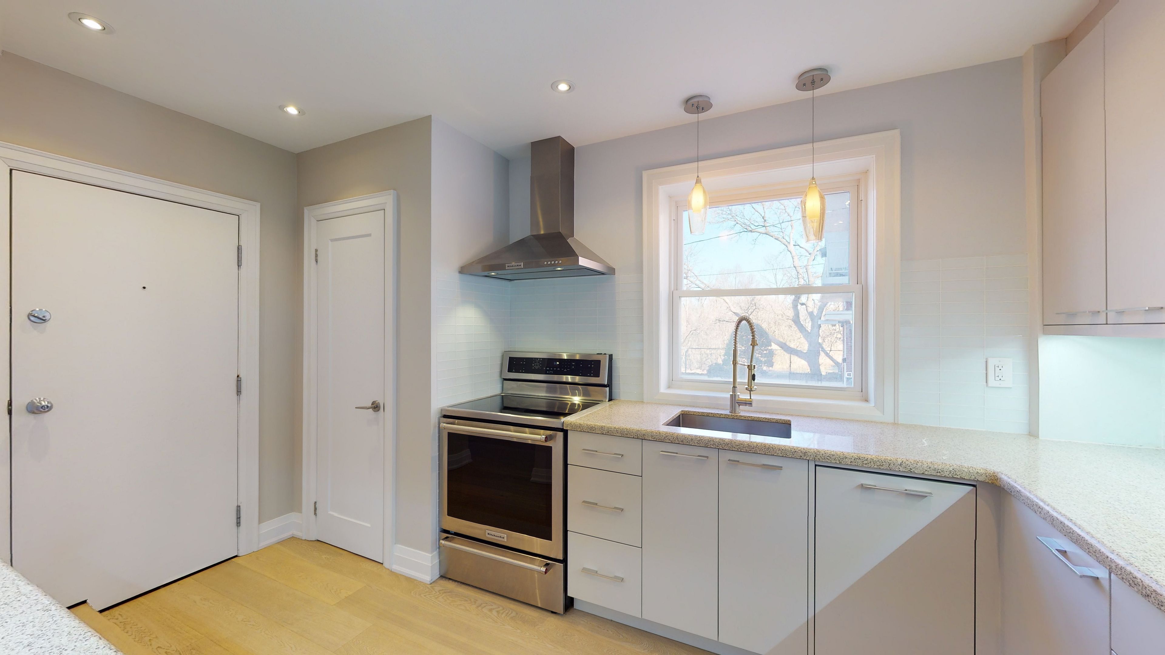 • Renovated 3-bedroom suite with high ceilings and great lighting.