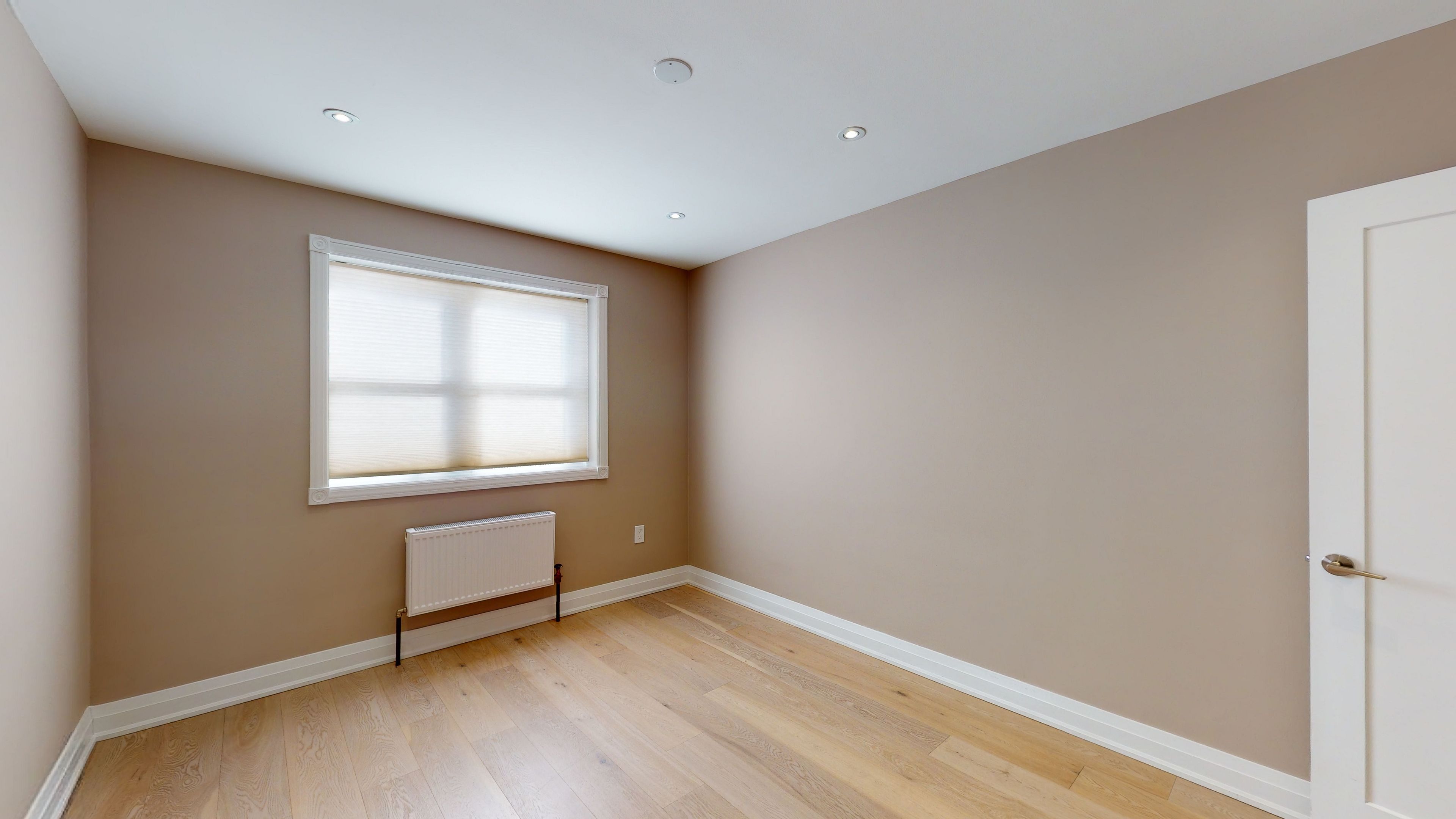 Fully renovated and well-maintained 1,066 sq. Ft. 3-bedroom suite with high ceilings and pot lights throughout. Functional kitchen with full-sized fridge and a dishwasher. Three generously sized bedrooms, all with closets, including one large walk-in. Updated bathroom plus ample storage with coat and linen closets. Amazing value includes one parking space (permit street parking also available), heat and water. Hydro extra. Shared laundry on the lower level. Located on a quiet cul-de-sac overlooking the humber river and scarlett mill park, steps to the humber river trail and minutes to ttc. Available march 1.