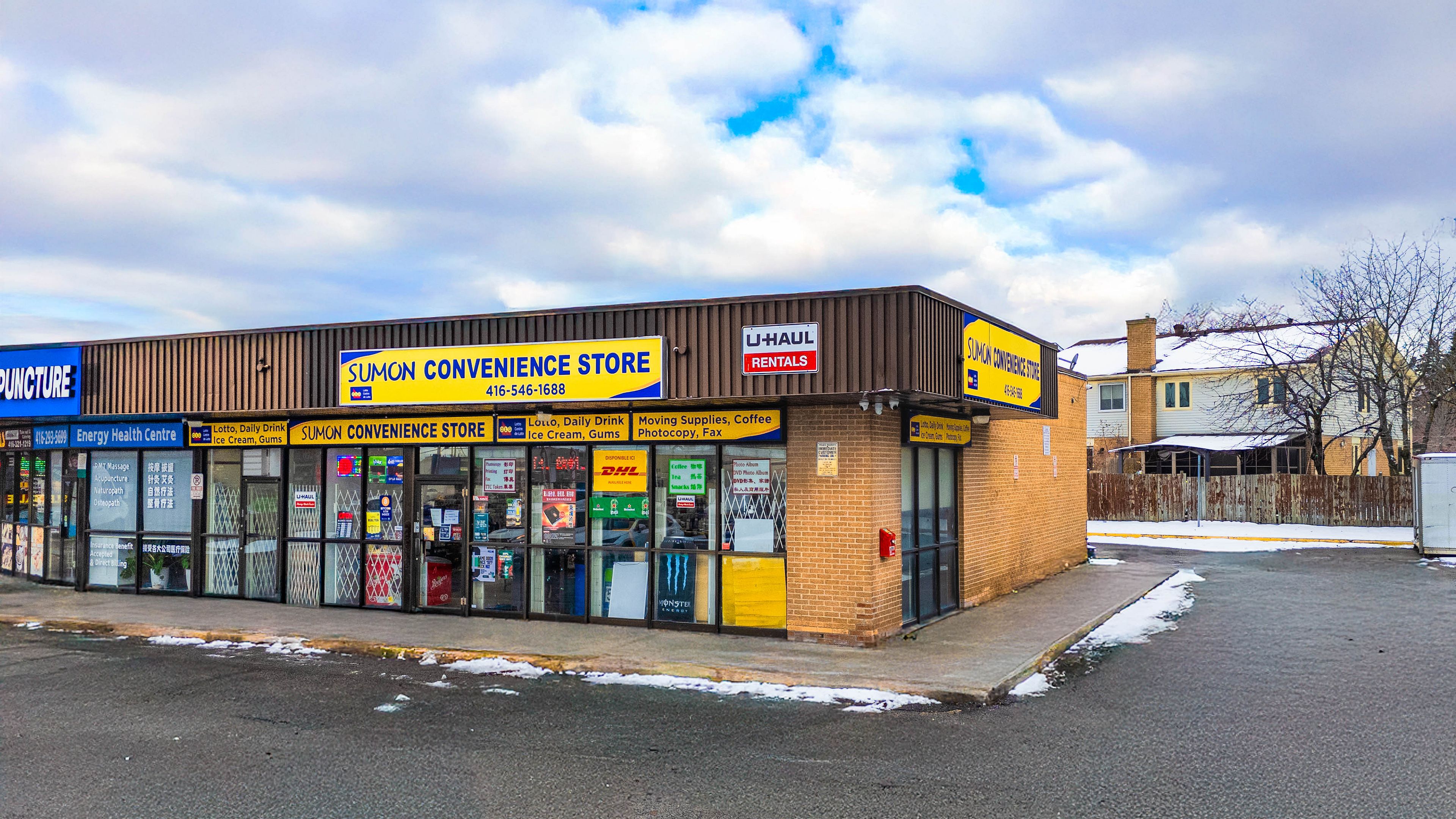 Turn-key and profitable convenience store located at the high-traffic corner of kennedy road and finch avenue in scarborough. This well-established, double-unit operation offers approximately 2,000 sq. Ft. Of functional retail space with excellent visibility, strong frontage on kennedy, and consistent exposure from surrounding residential and commercial density. The business benefits from multiple revenue streams, including u-haul rentals and accessories, beer and wine sales, lottery, printing and copy services, a slush and smoothie bar, western union money transfer, and dhl parcel service. The current owner has successfully grown revenues by expanding online u-haul orders, increasing truck inventory, and enhancing alcohol offerings, presenting further upside for a new operator. The space features both front and rear access with ample customer parking, a large walk-in commercial freezer with six glass doors, a seven-panel refrigerator, a fully operational three-tank slush and smoothie machine, and a new coffee machine. Operating seven days a week from 9 a. M. To 9 p. M., this long-running business offers a solid foundation with strong cash flow and excellent potential for continued growth in a prime scarborough location.