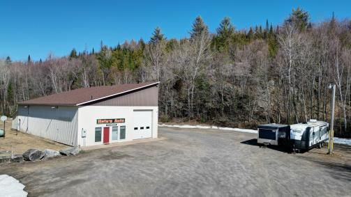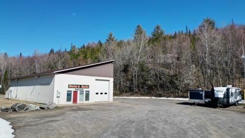 3,200 square foot commercial building situated on 3. 46 acres. Previously successful automotive business. The building consists of 400 amp service, shop area with propane radiant heat, office, waiting area and two separate rooms above for storage plus an additional 12' x 24' storage shed on the back of the building. Drive through doors, wall mounted exhaust fan, energy efficient lighting, alarm system and 8' x 8' double sided sign space at the highway approved by mto. Great spot to start your own business or store your toys.