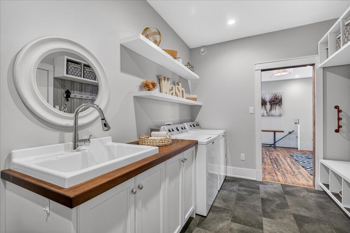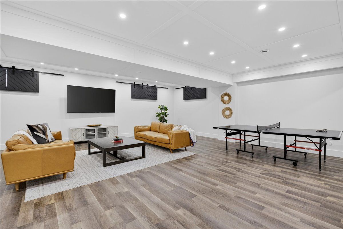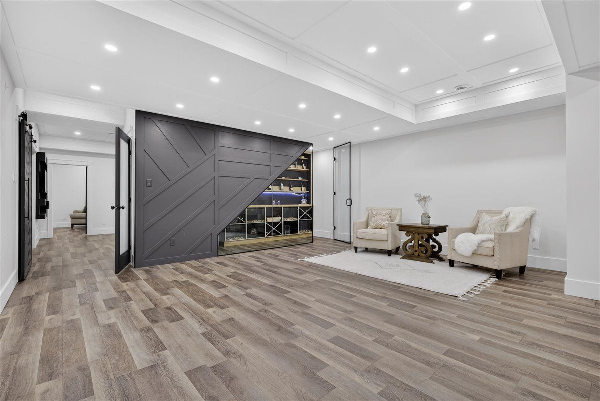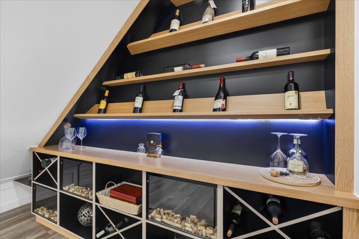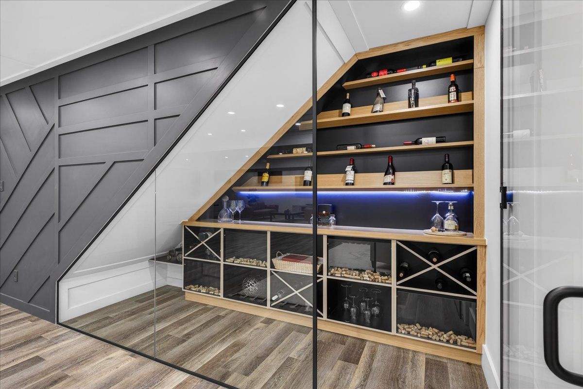 • Finished lower level with a wine cellar, fitness area, and recreation room.