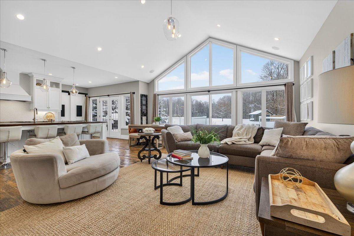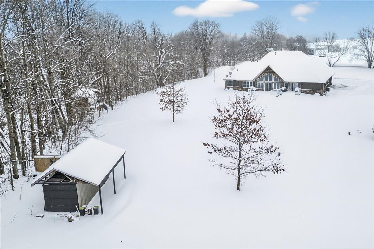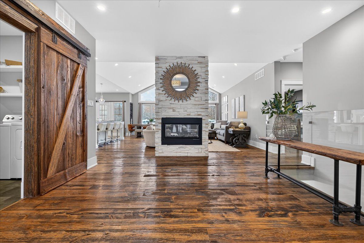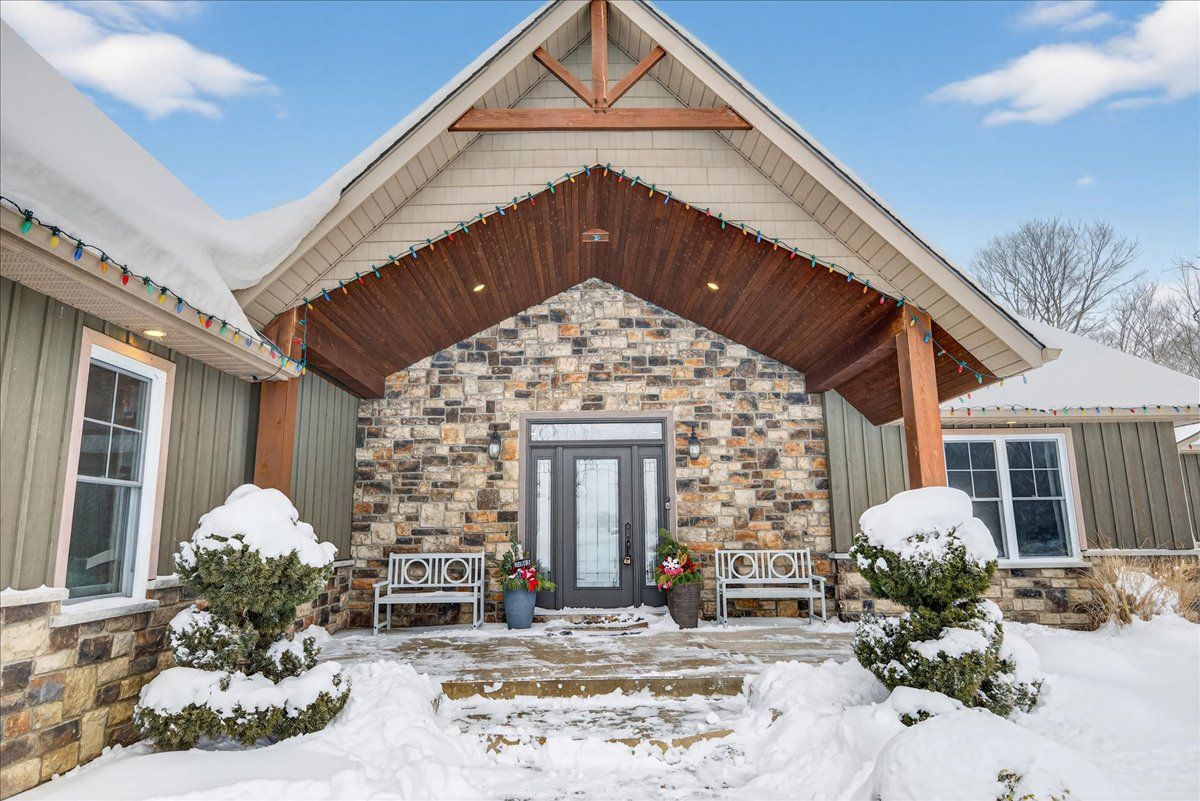 An extraordinary country estate in new lowell set on a pristine 2-acre lot, this exceptional custom-built bungaloft offers 4,890 sq. Ft. Of refined living space. Designed to accommodate both everyday comfort & elevated entertaining, the home welcomes you with dramatic cathedral ceilings, reclaimed hardwood flooring & expansive floor-to-ceiling windows that fill the interior with natural light. A sophisticated double-sided fireplace creates a seamless connection between the main living areas & serves as a striking architectural centerpiece. The chef-inspired kitchen is as functional as it is beautiful, featuring a statement epoxy-finished island with seating, extensive cabinetry, & a thoughtfully designed walk-in pantry. The open-concept design ensures effortless flow into the dining living spaces, making it ideal for hosting and family gatherings alike. The primary retreat is a true sanctuary, offering a generous walk-in closet a spa-calibre six-piece ensuite complete with a freestanding soaker tub & a glass-enclosed walk-in shower with dual shower heads. The main level is further enhanced by three spacious additional bedrooms, a jack-and-jill bathroom, an extra full guest bath, & a well-appointed laundry & mudroom with direct access to the insulated, oversized double garage. Above, a versatile loft overlooks the main living space & offers endless potential as a media lounge, home office, or play area. The fully finished lower level expands the living space by more than 2,147sq. Ft. & includes a walk-up to the garage. This level features a custom walk-in wine cellar, a dedicated fitness area with built-ins, a sleek three-piece bathroom, a large recreation room, & a flexible room currently used as an office, easily adaptable to a sixth bedroom. Outdoors, the property impresses with a paved driveway, ample parking, & a level, professionally maintained lawn supported by a 70-head in-ground sprinkler system-creating a serene backdrop for your forever home!