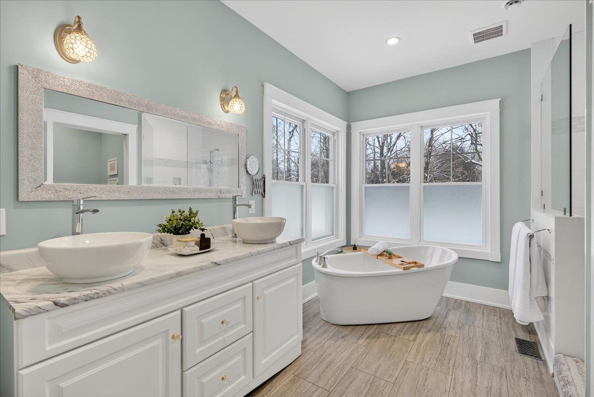 • Dramatic cathedral ceilings and floor-to-ceiling windows fill the home with light.